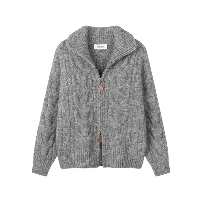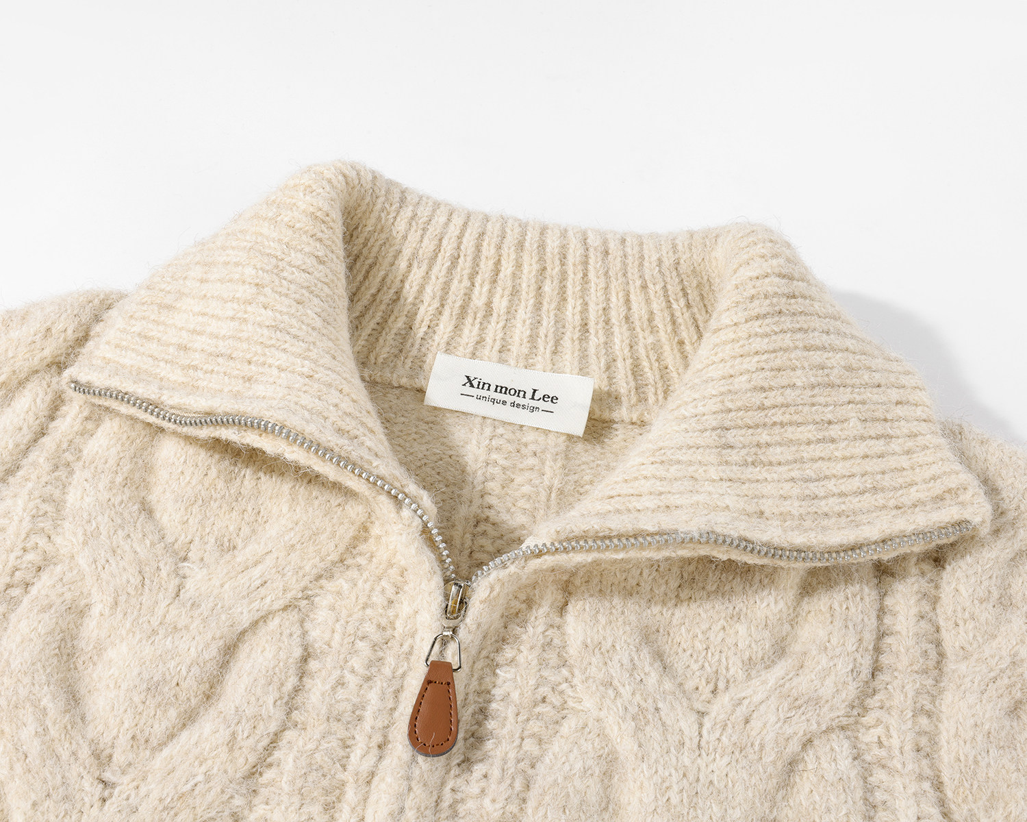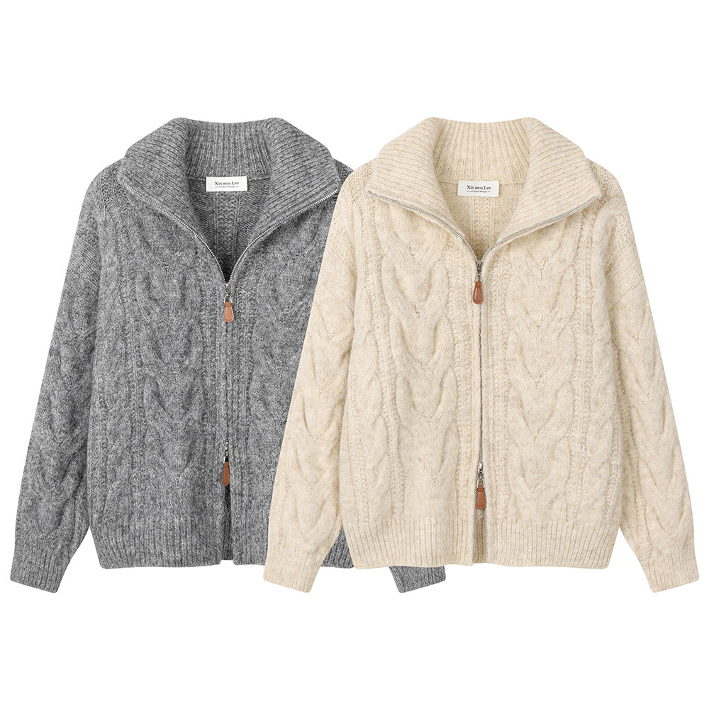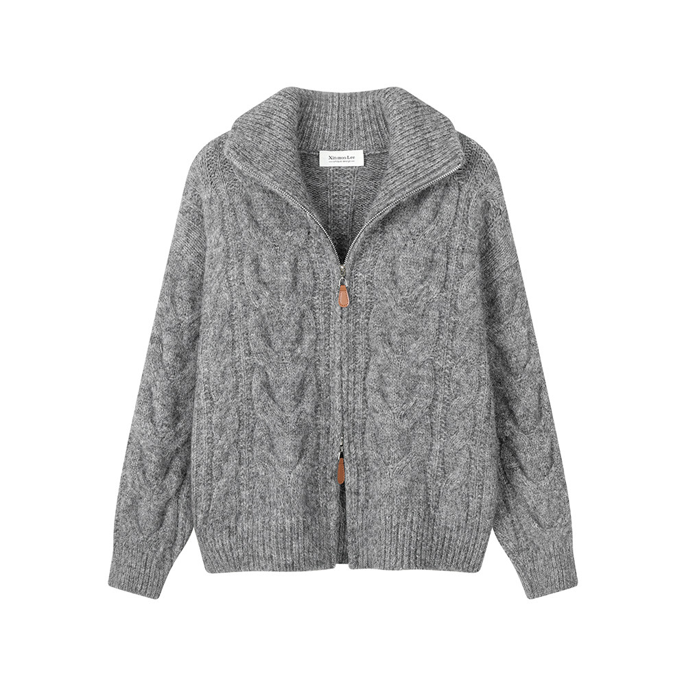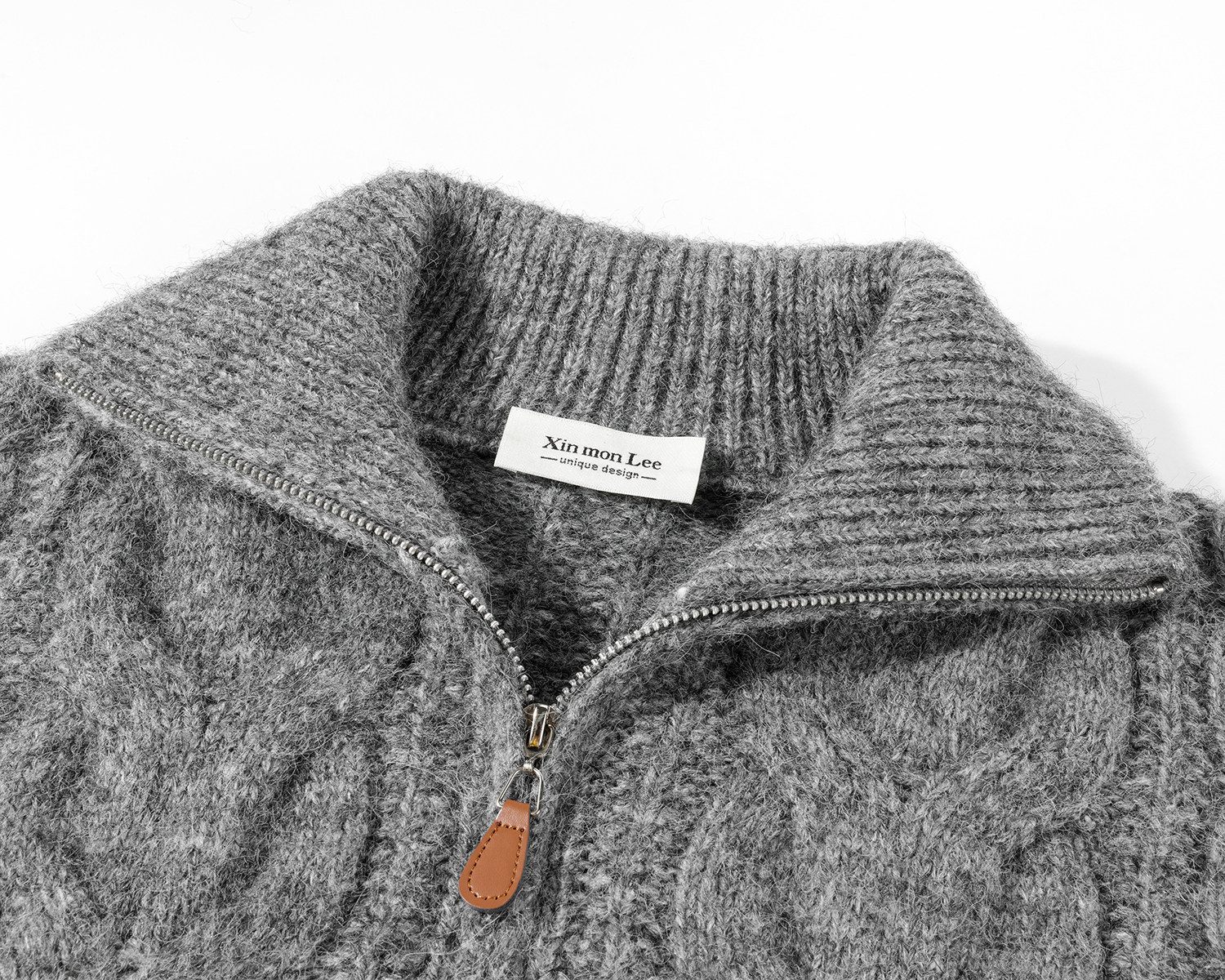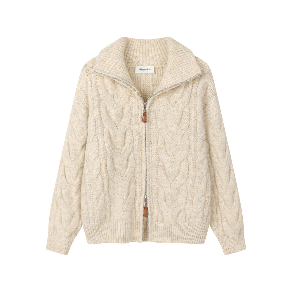 XinmonLee慵懶風氣質軟糯拉鍊毛衣針織外套休閒寬松韓系上衣冬季