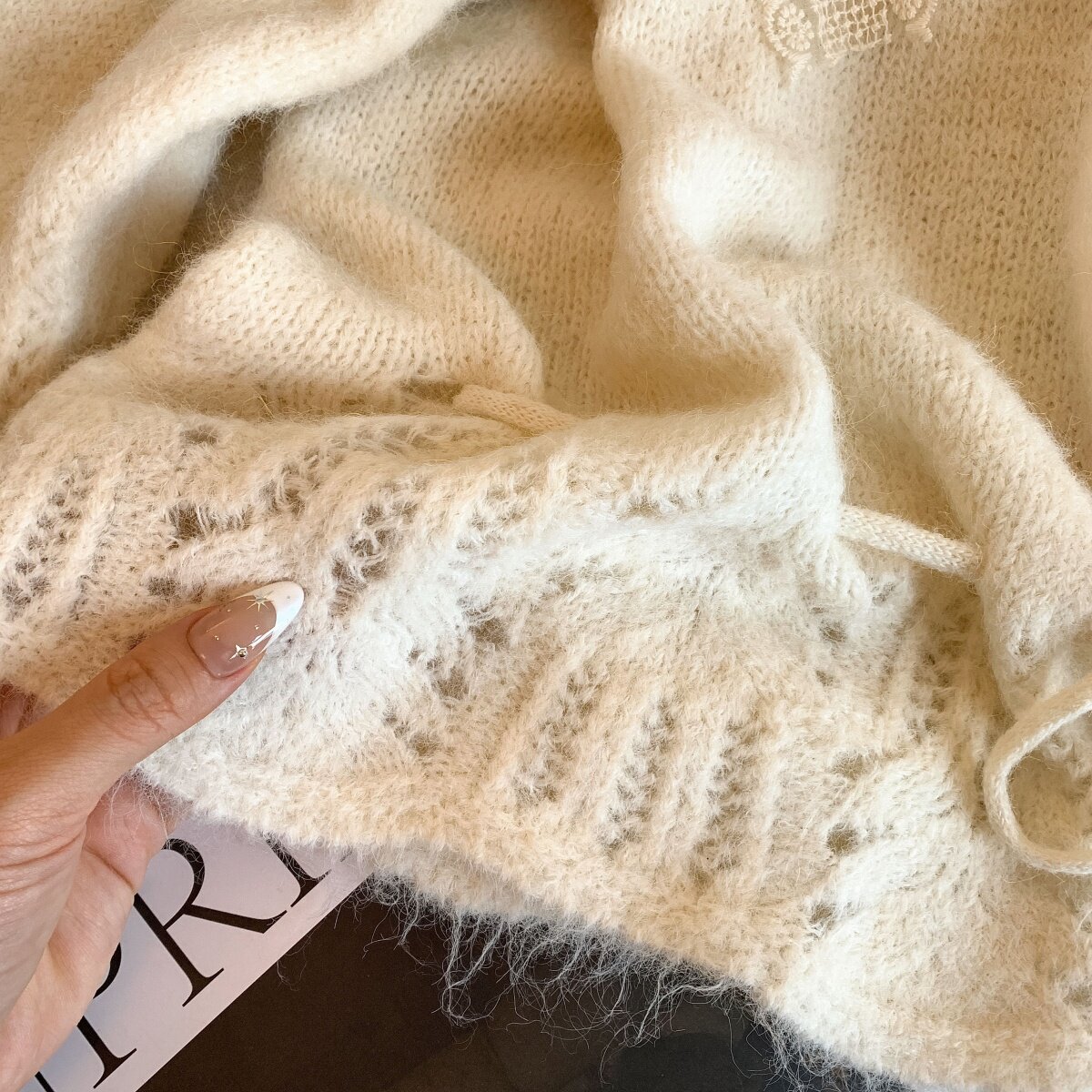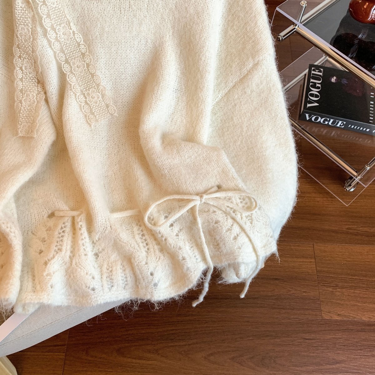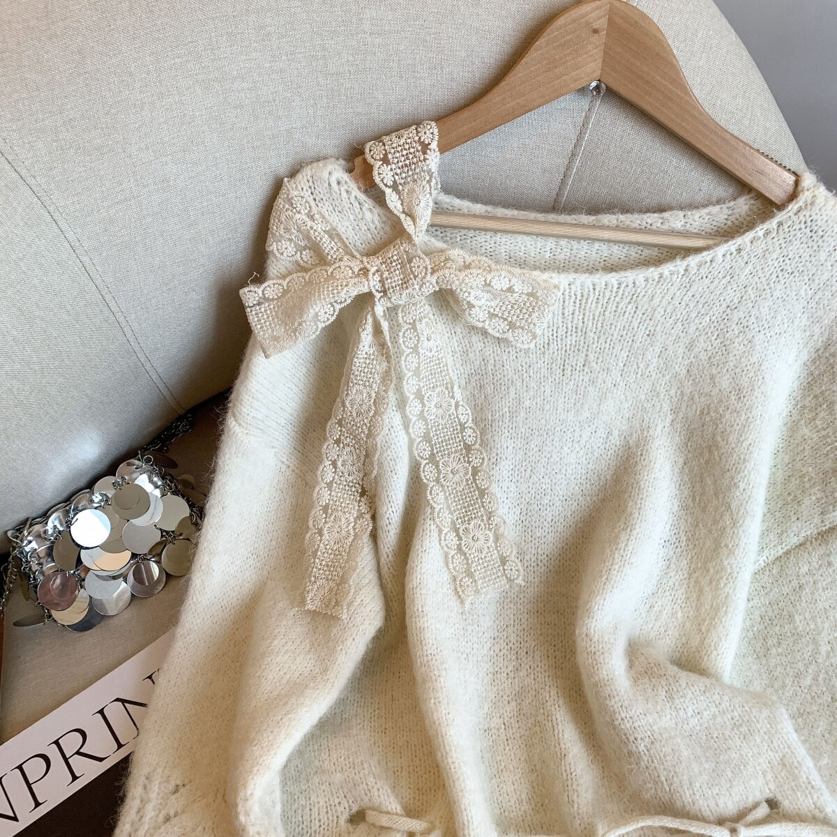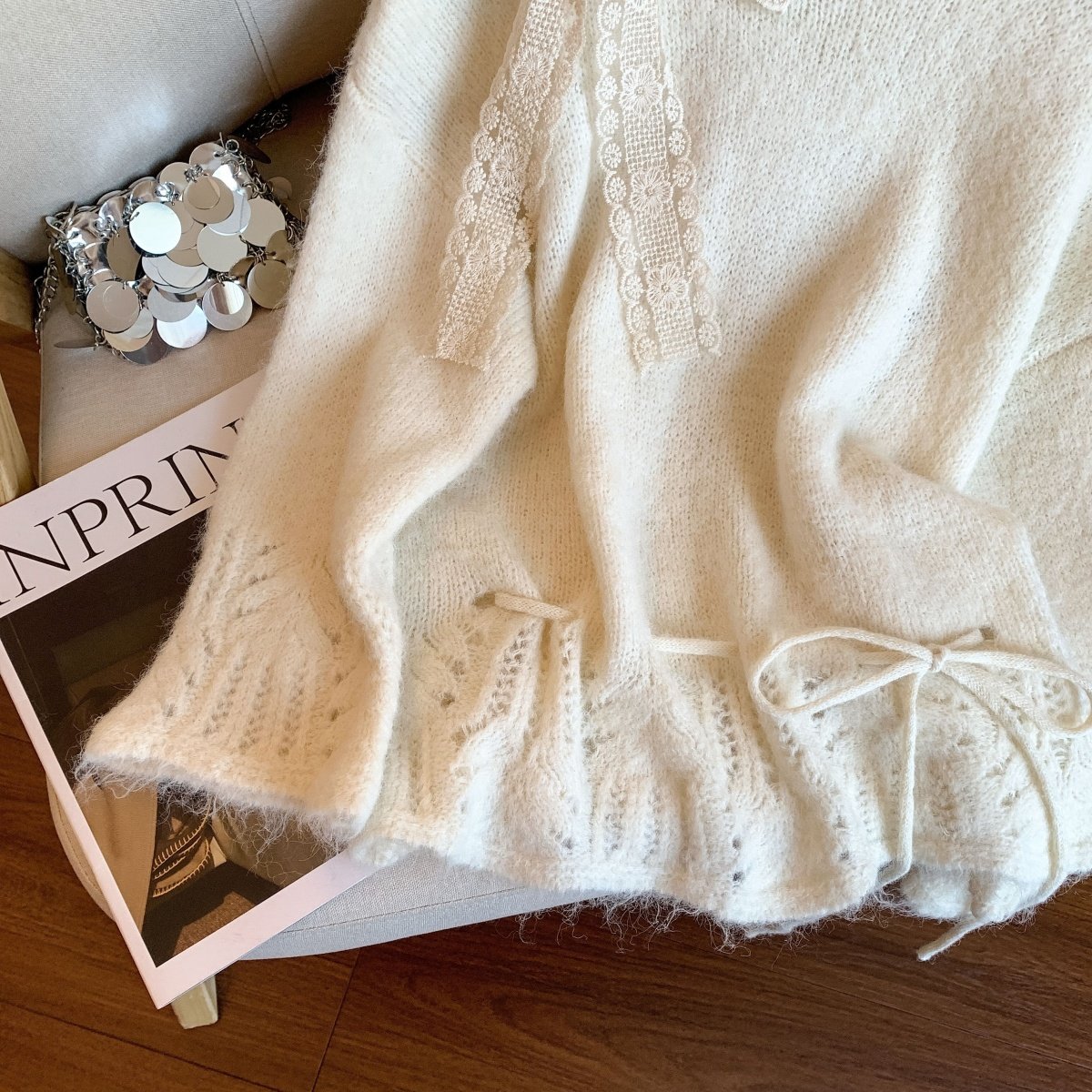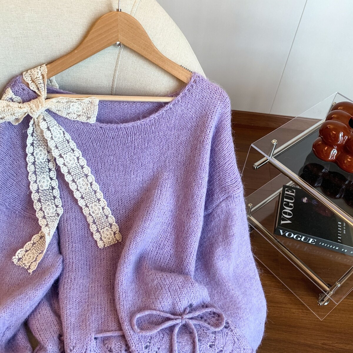 多巴胺黃色針織衫女秋冬季軟糯蝴蝶結系帶長袖寬松慵懶風顯瘦毛衣