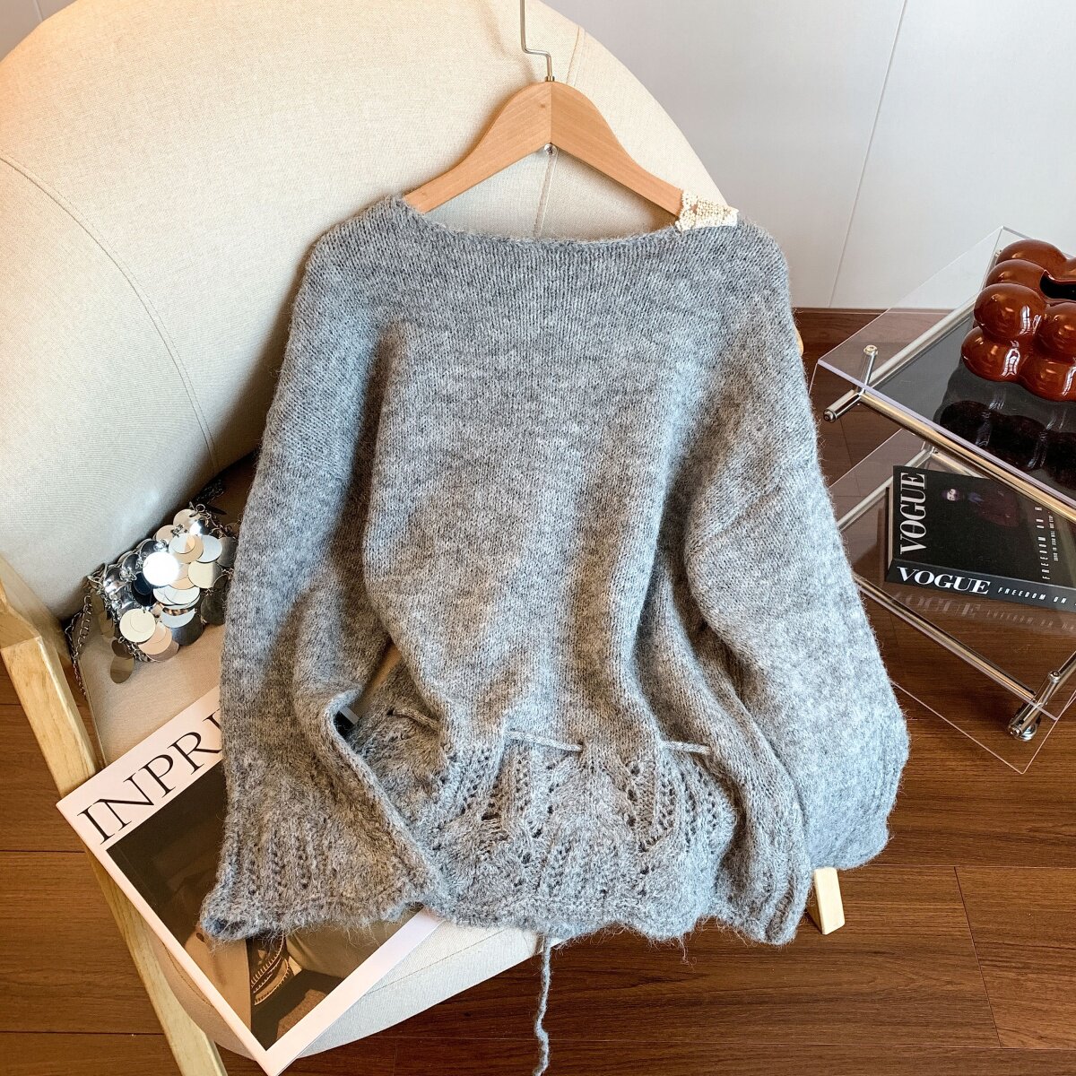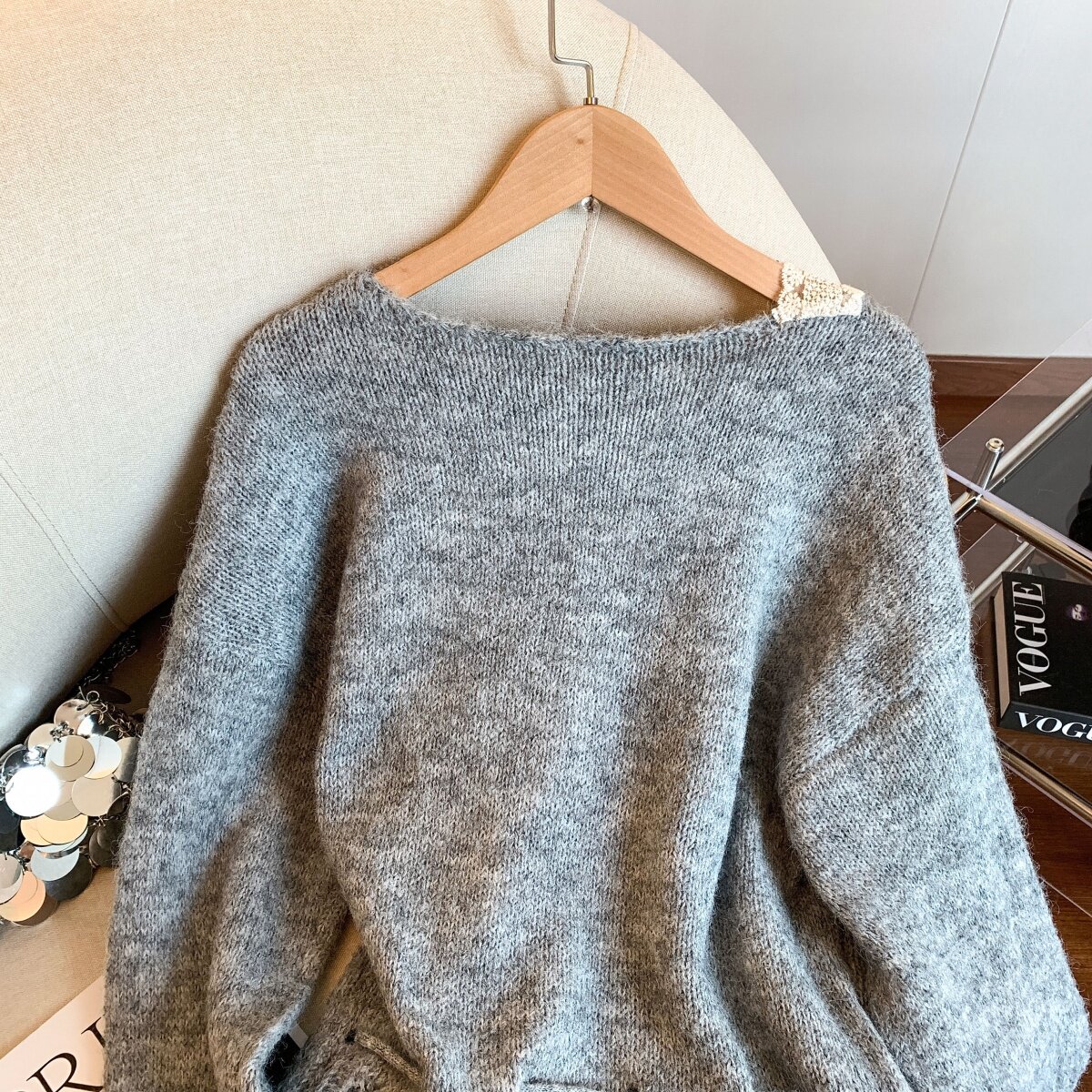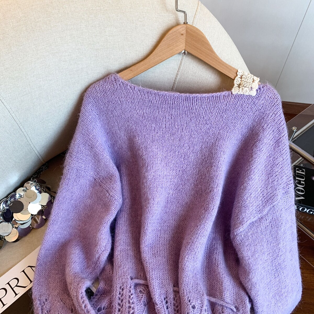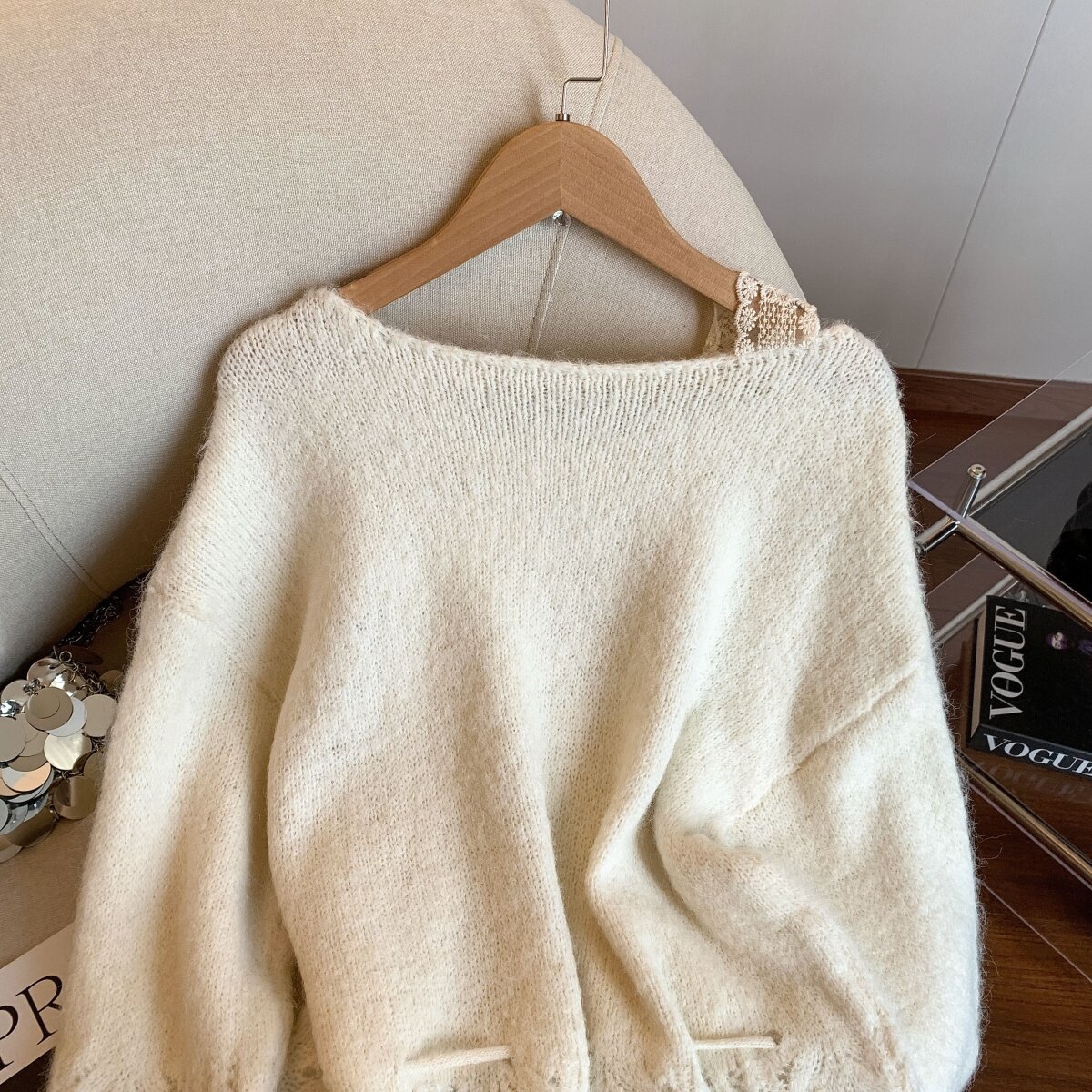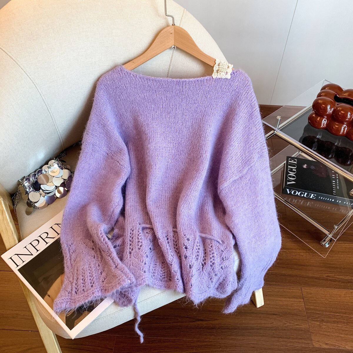 多巴胺黃色針織衫女秋冬季軟糯蝴蝶結系帶長袖寬松慵懶風顯瘦毛衣