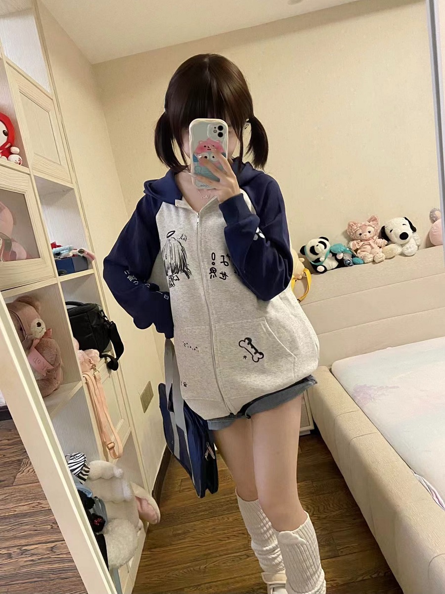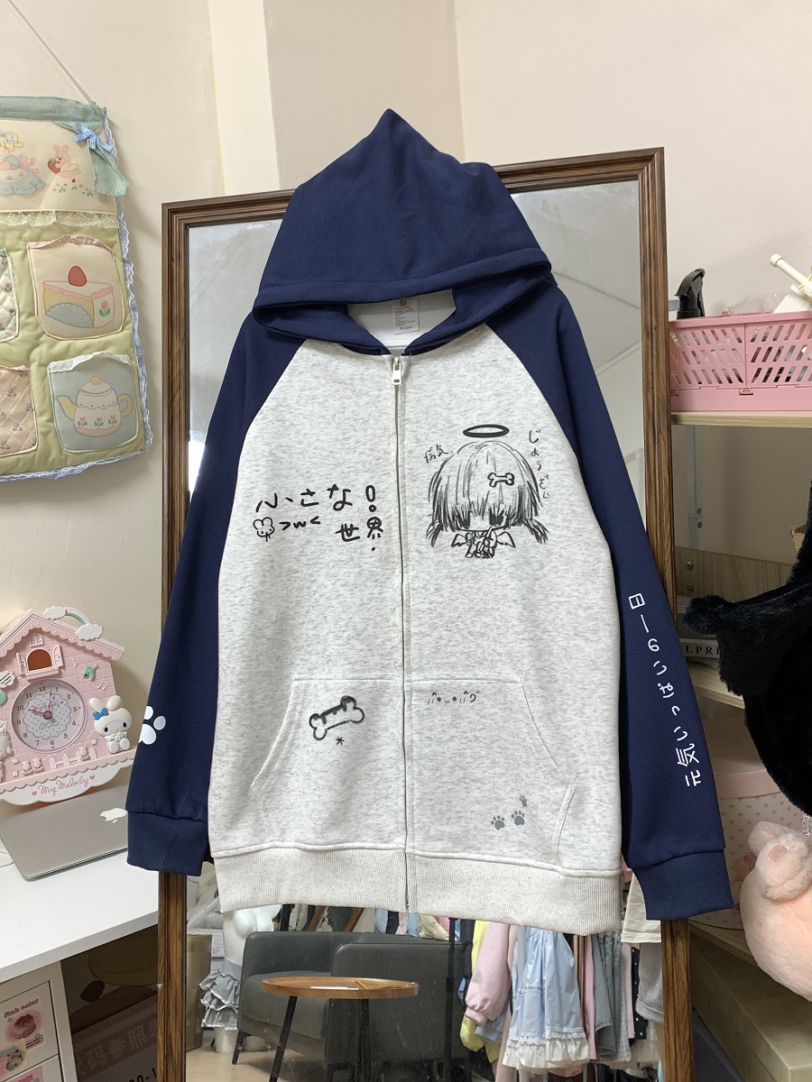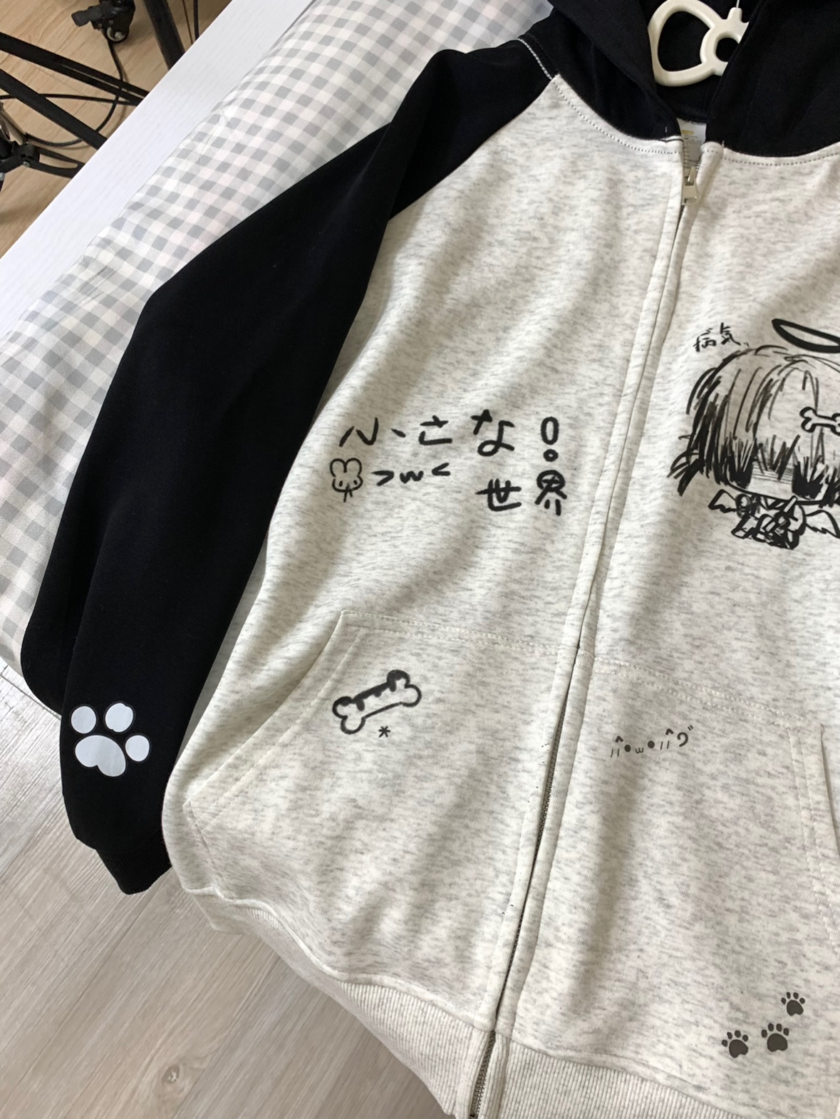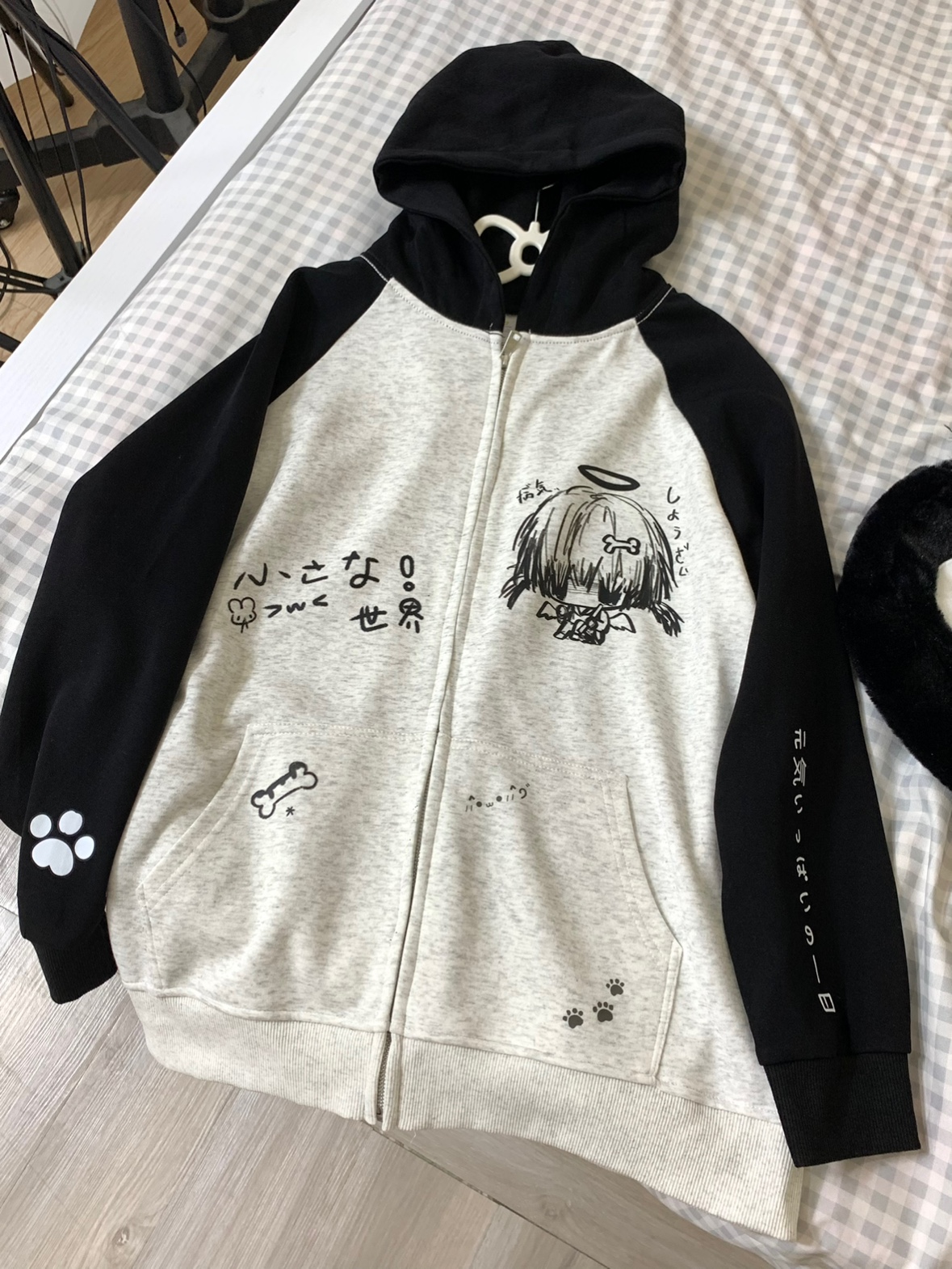 blurredbear原創日系軟妹宅系二次元秋冬撞色寬松百搭連帽外套
