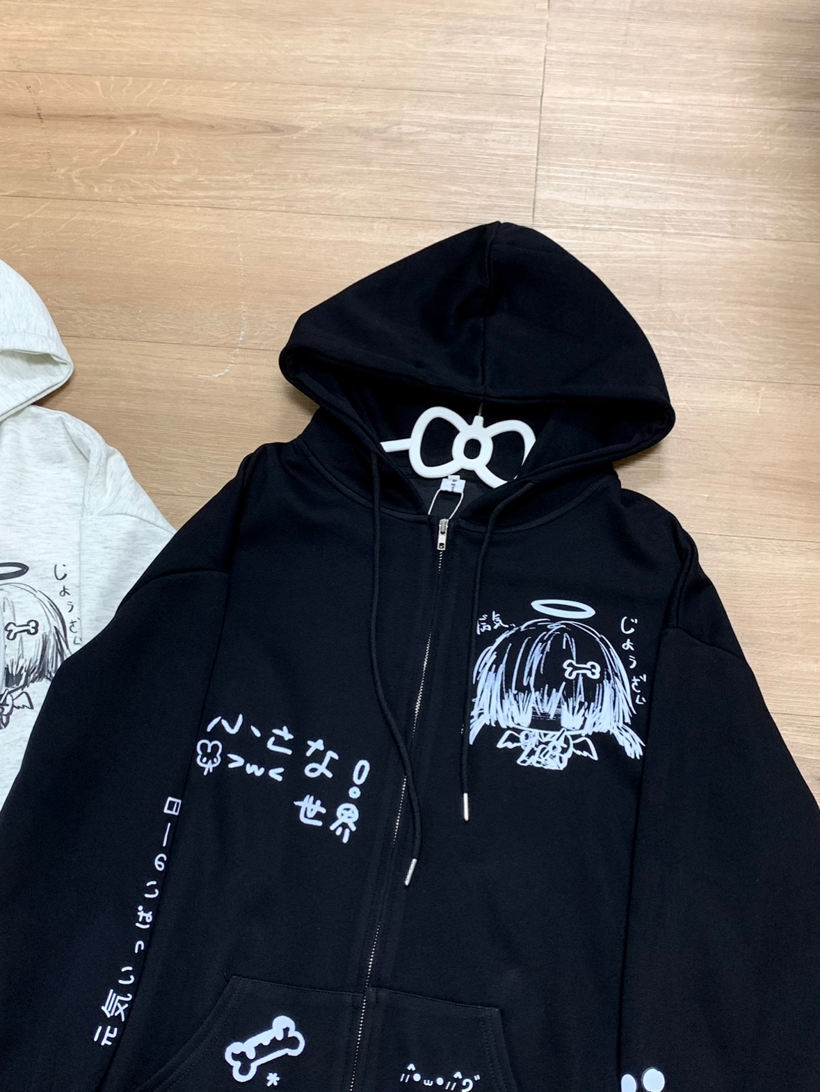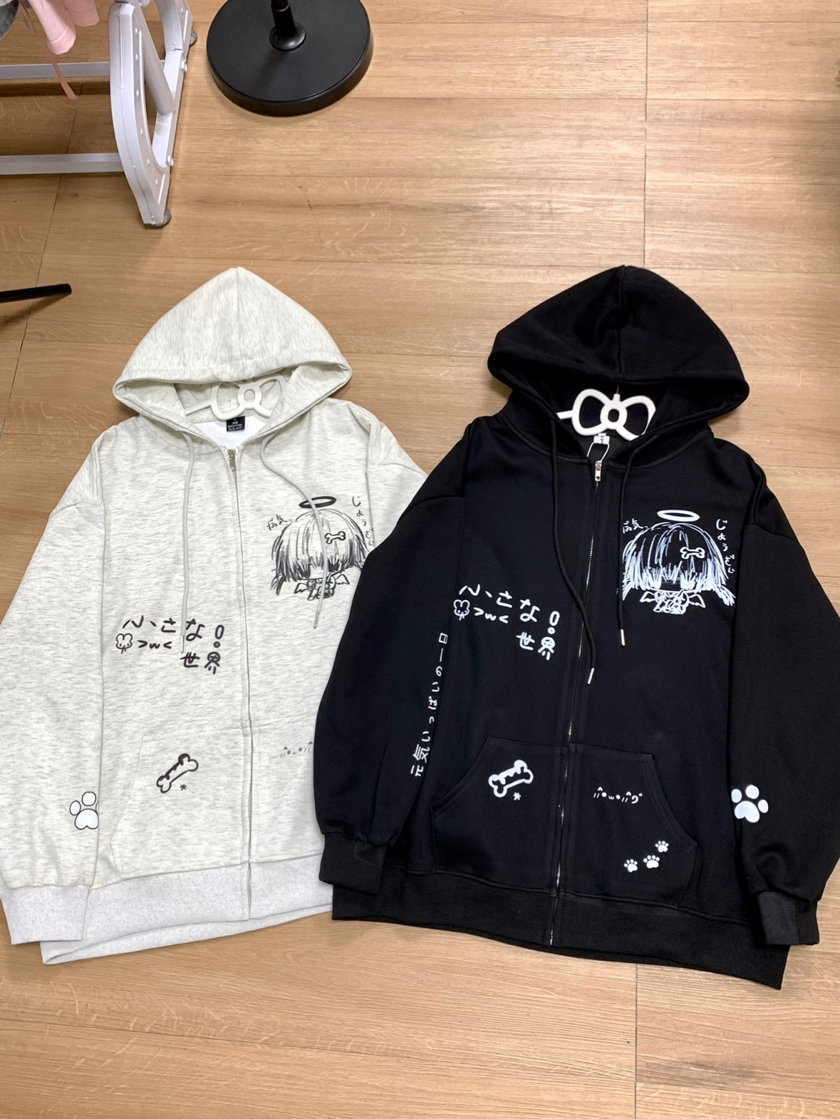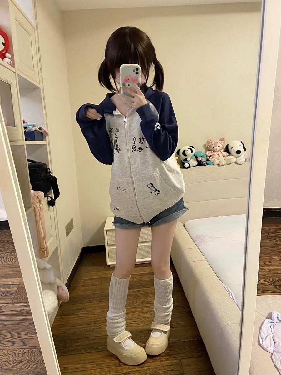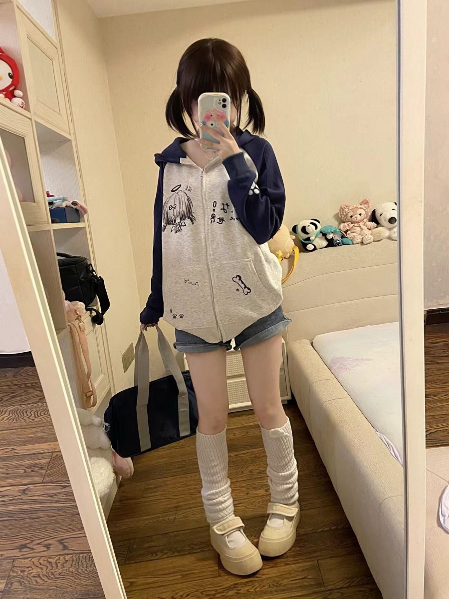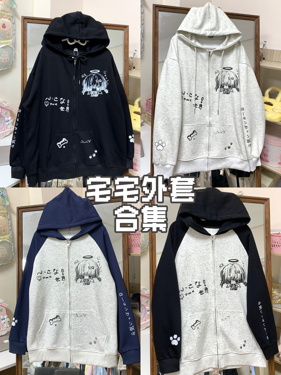 blurredbear原創日系軟妹宅系二次元秋冬撞色寬松百搭連帽外套