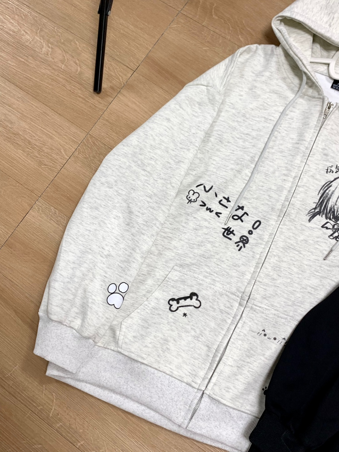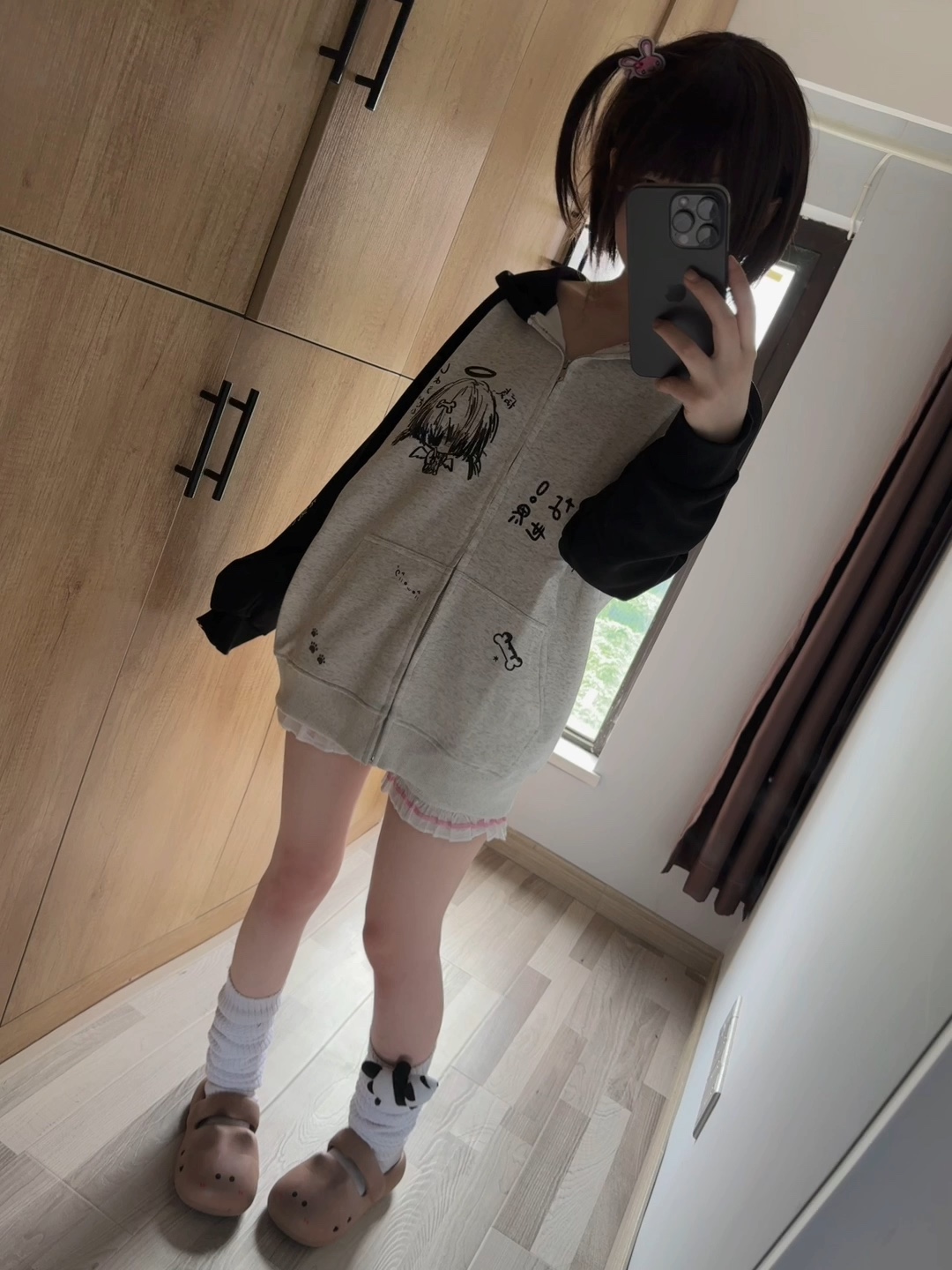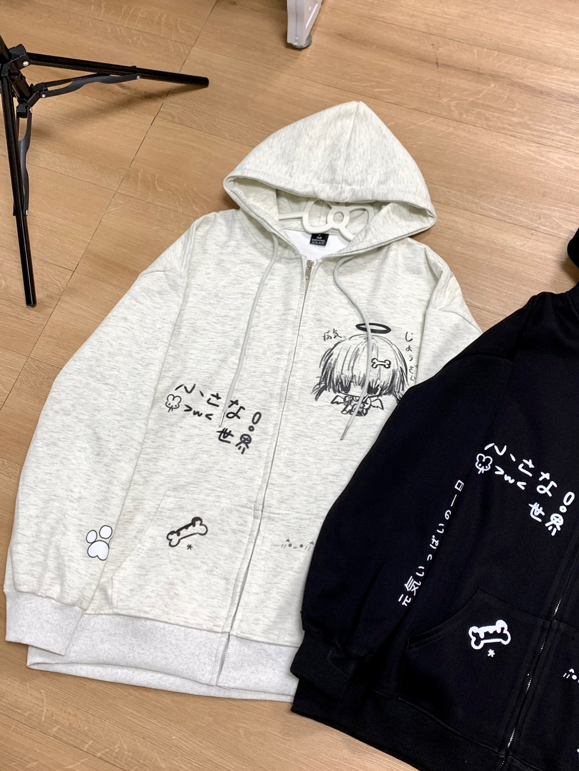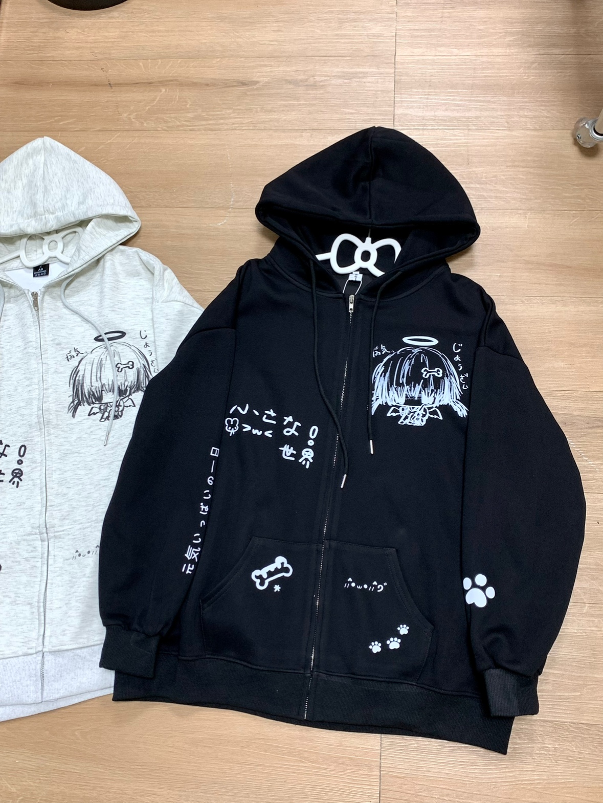 blurredbear原創日系軟妹宅系二次元秋冬撞色寬松百搭連帽外套
