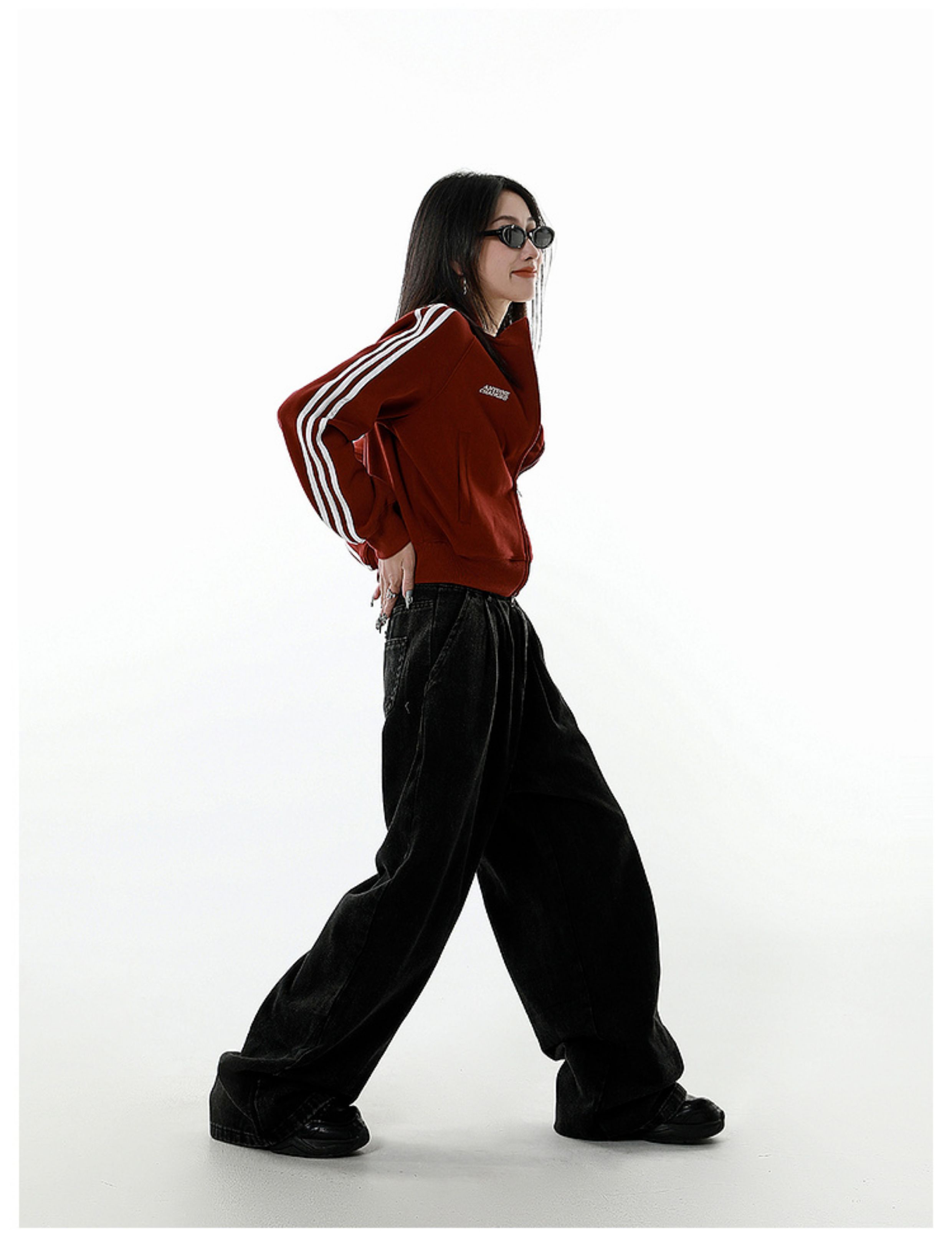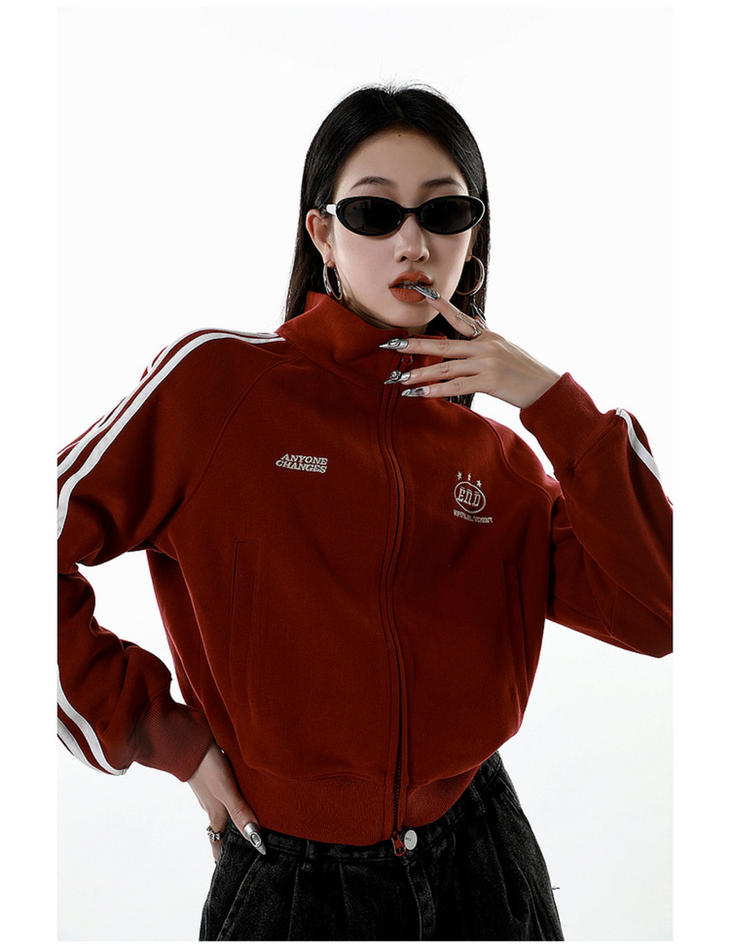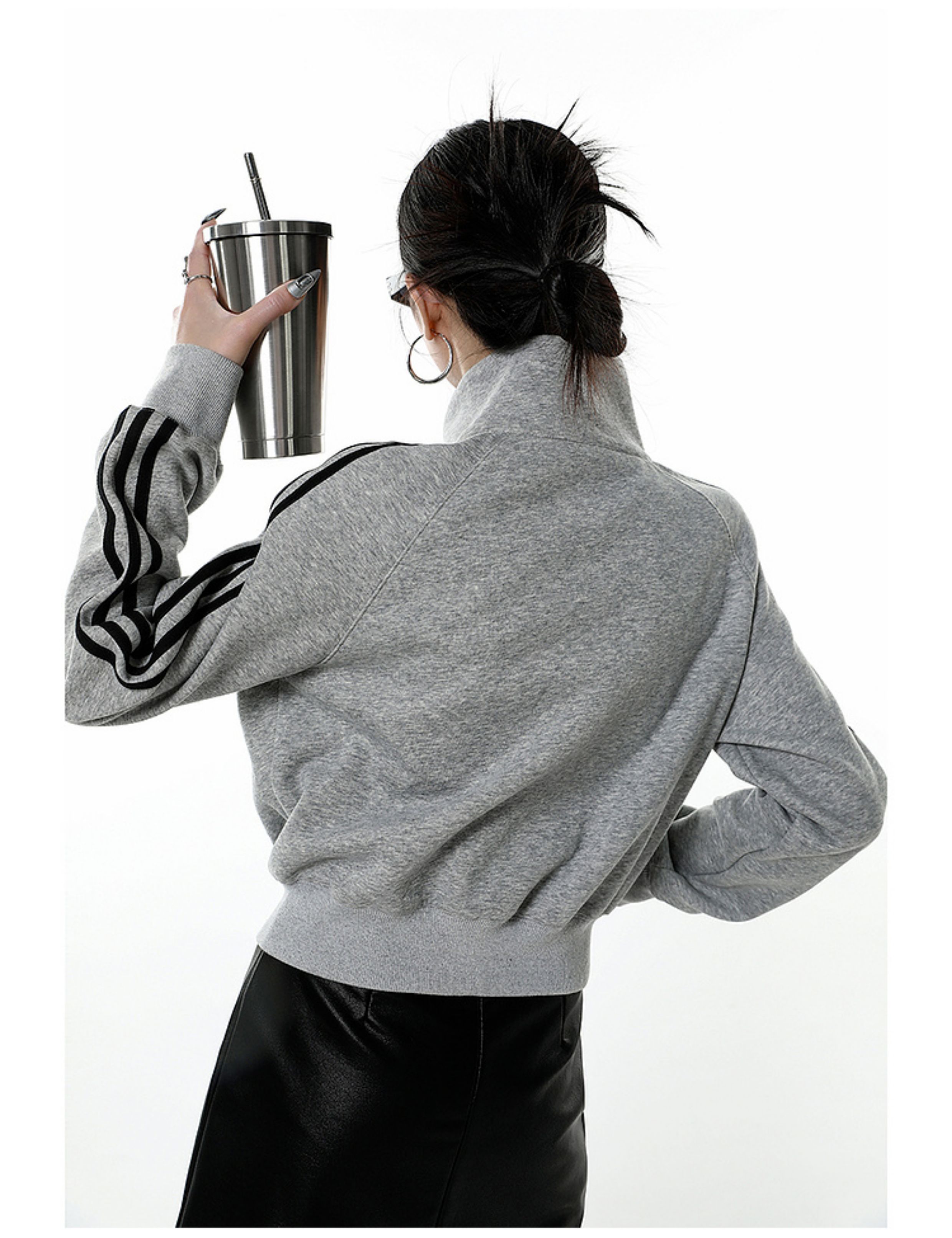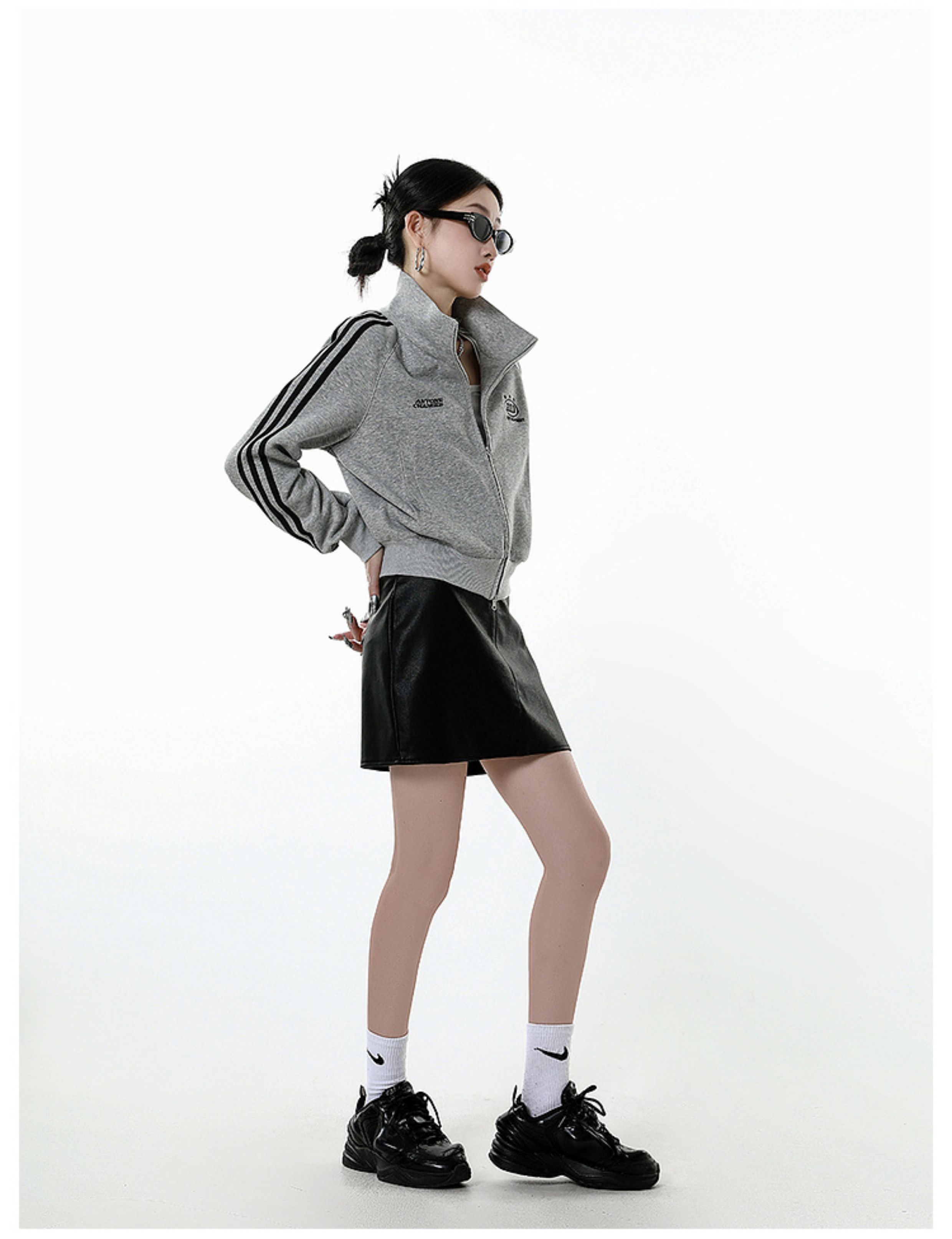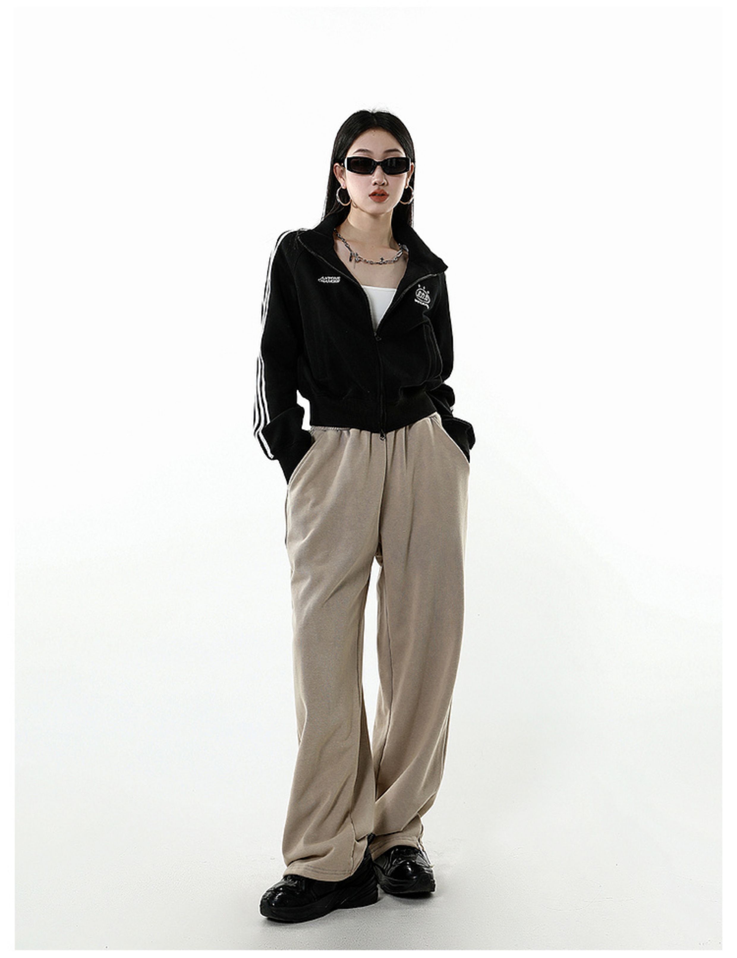 ICH MODE 美式修身短款黑色外套女2026新款春季運動連帽衛衣開衫