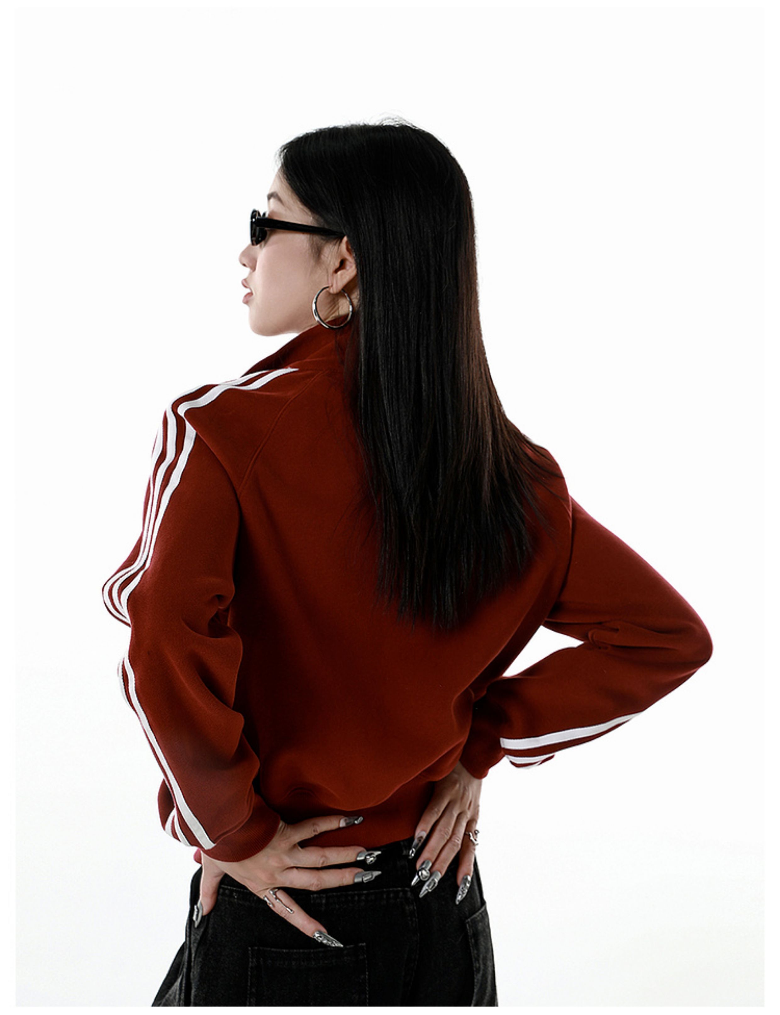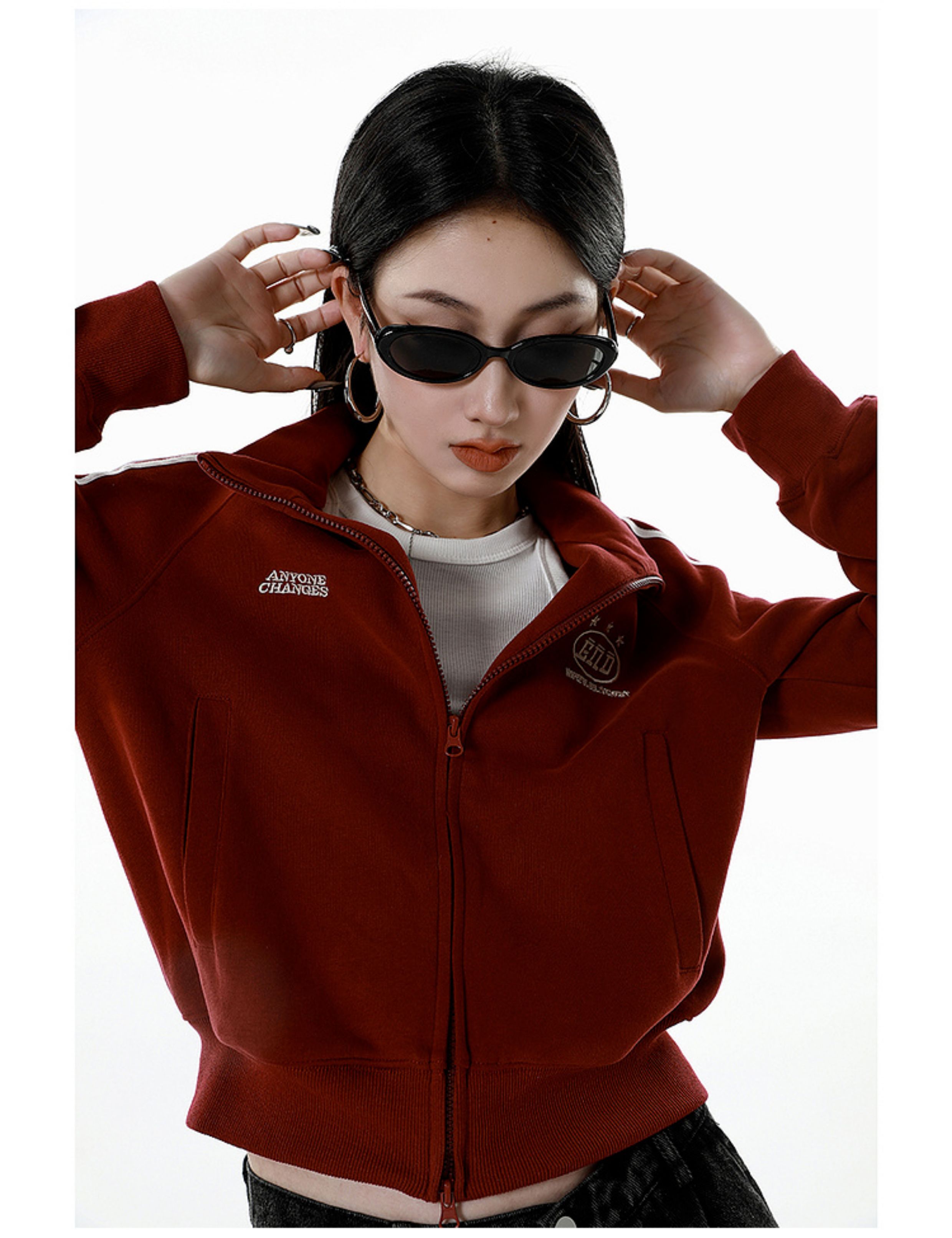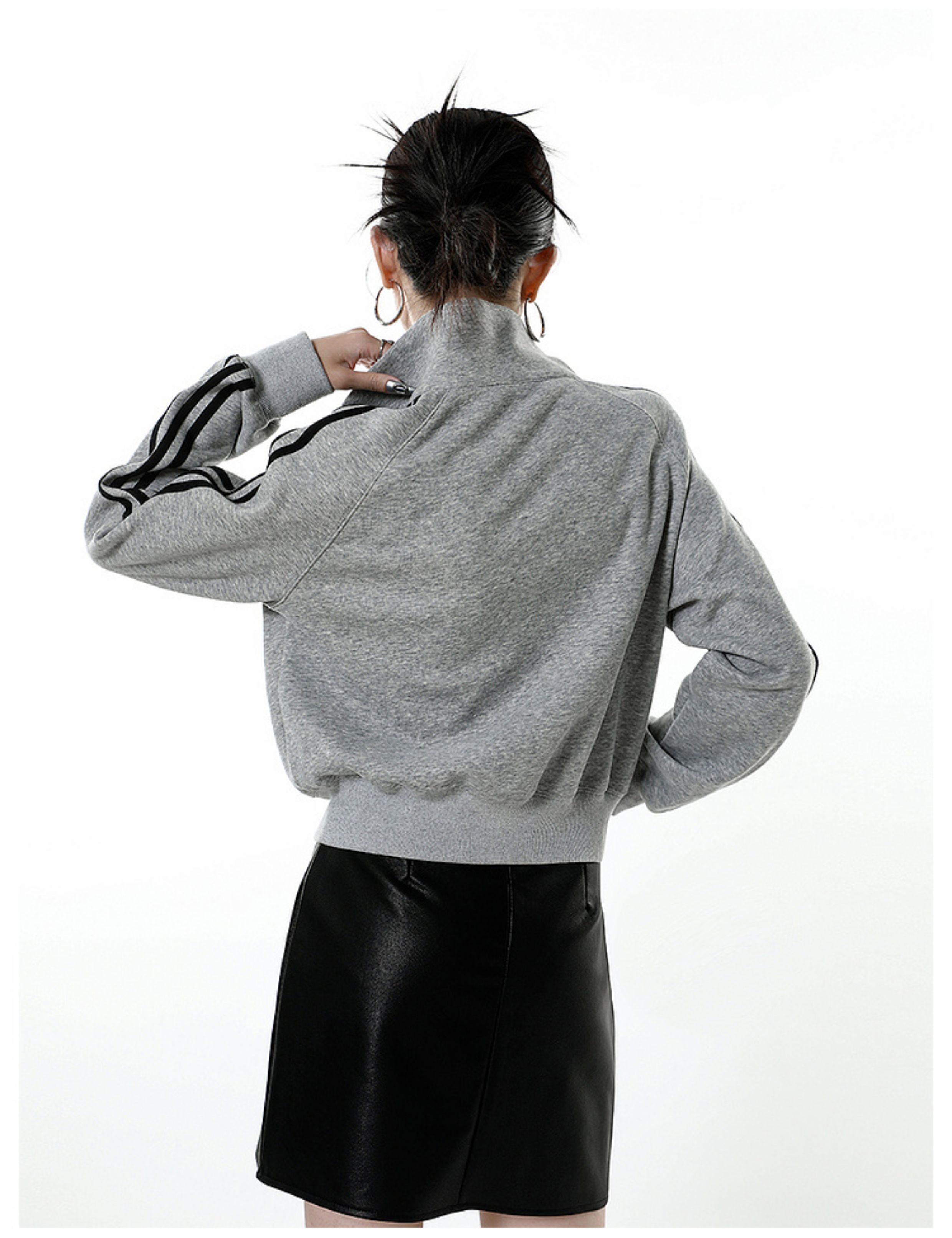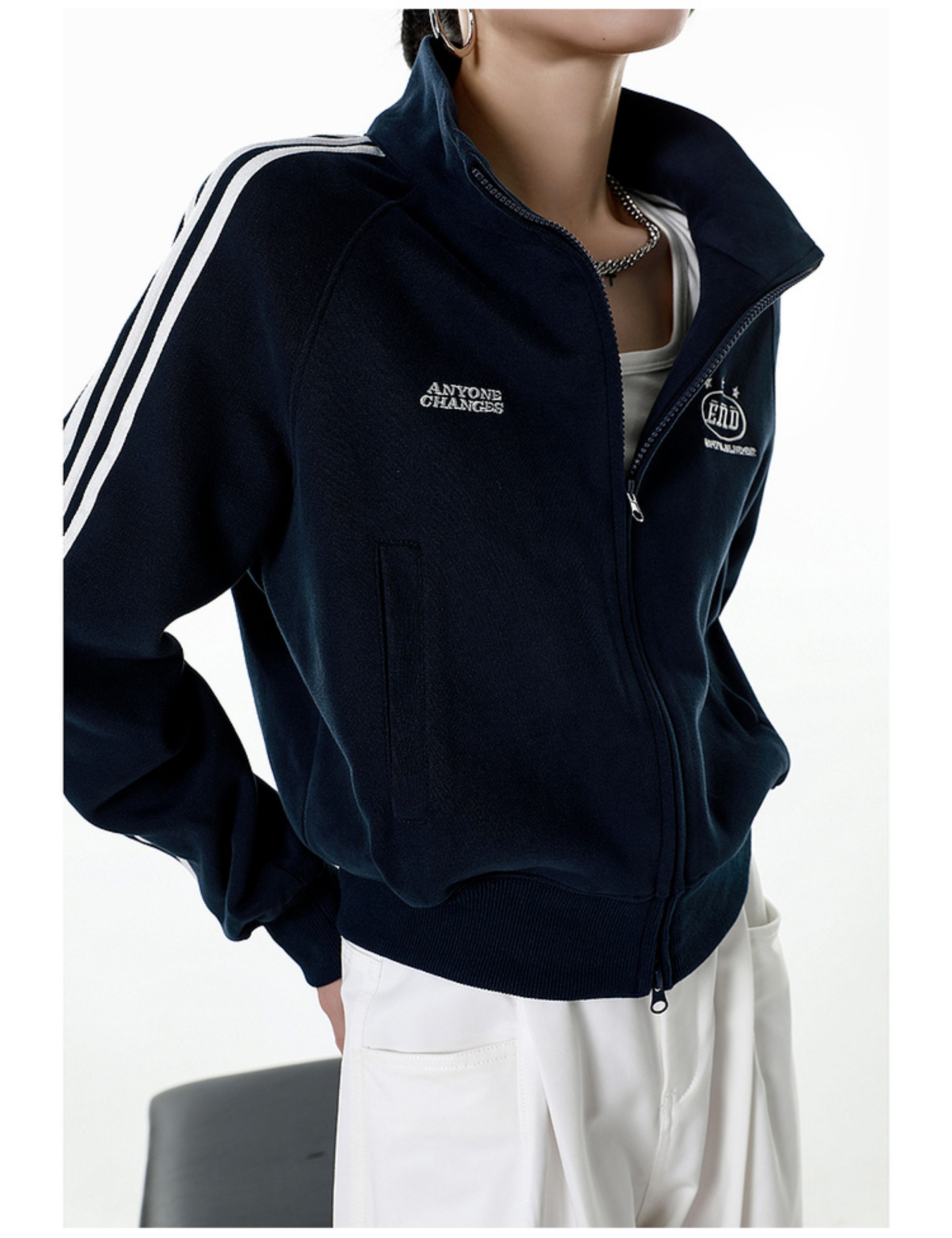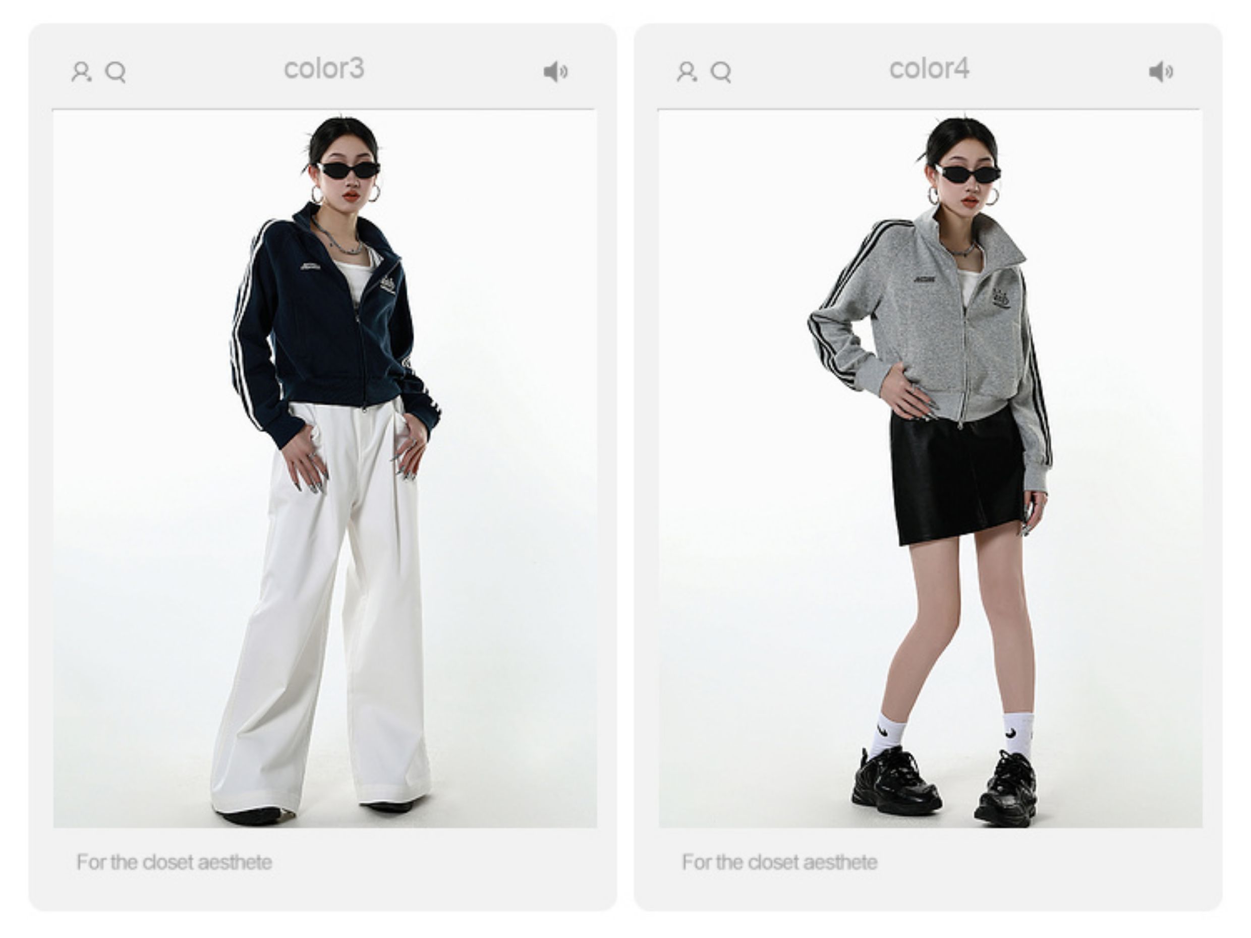 ICH MODE 美式修身短款黑色外套女2026新款春季運動連帽衛衣開衫