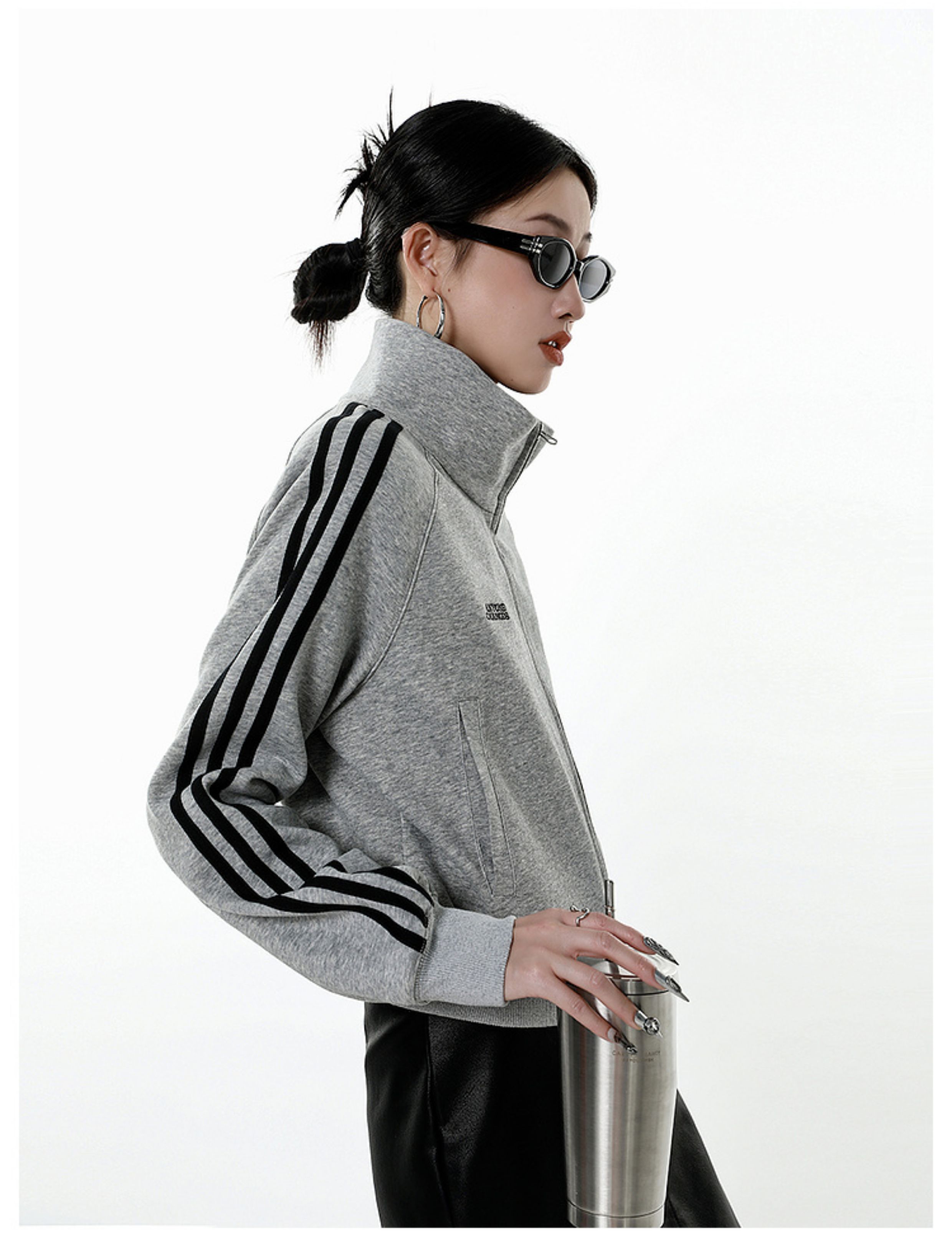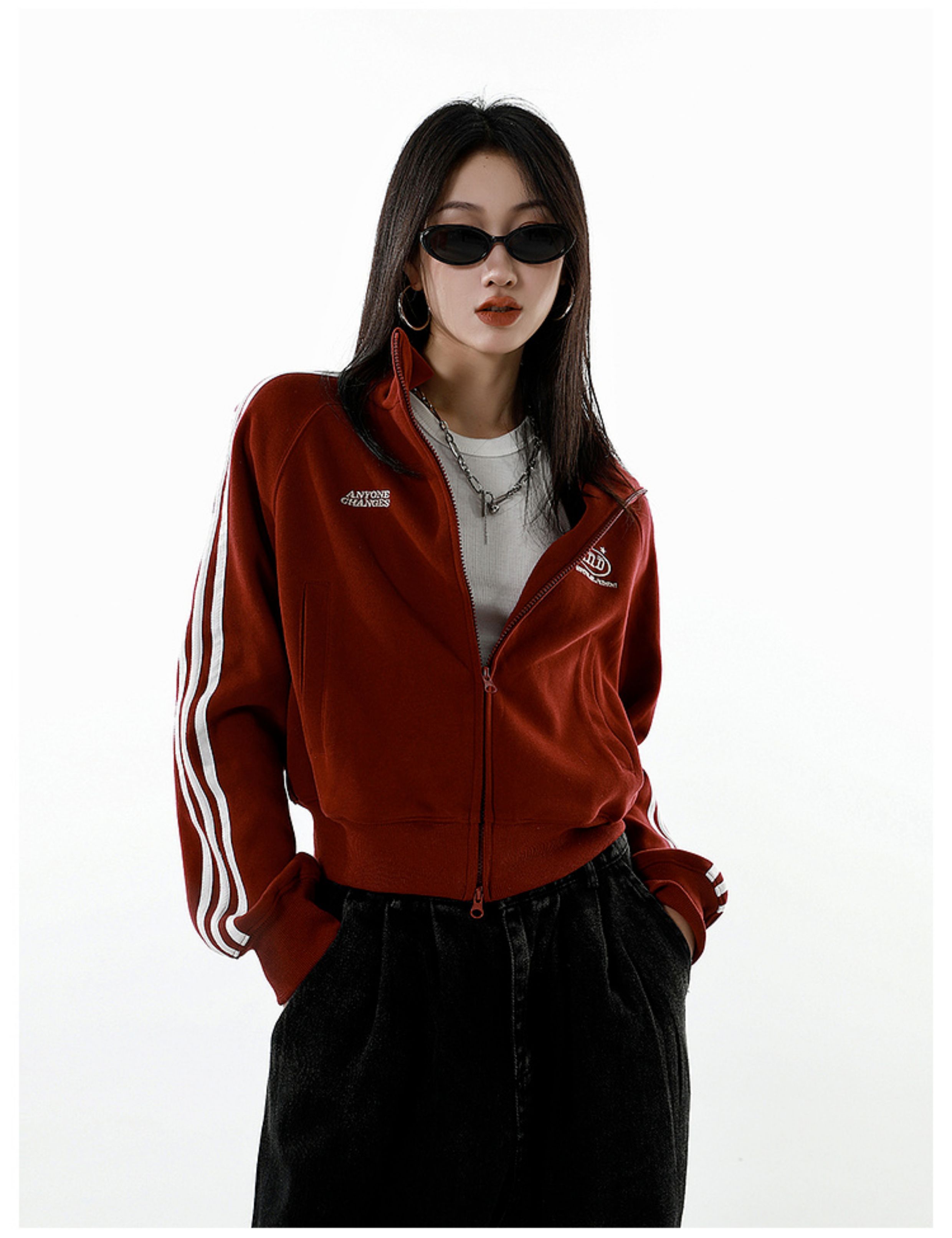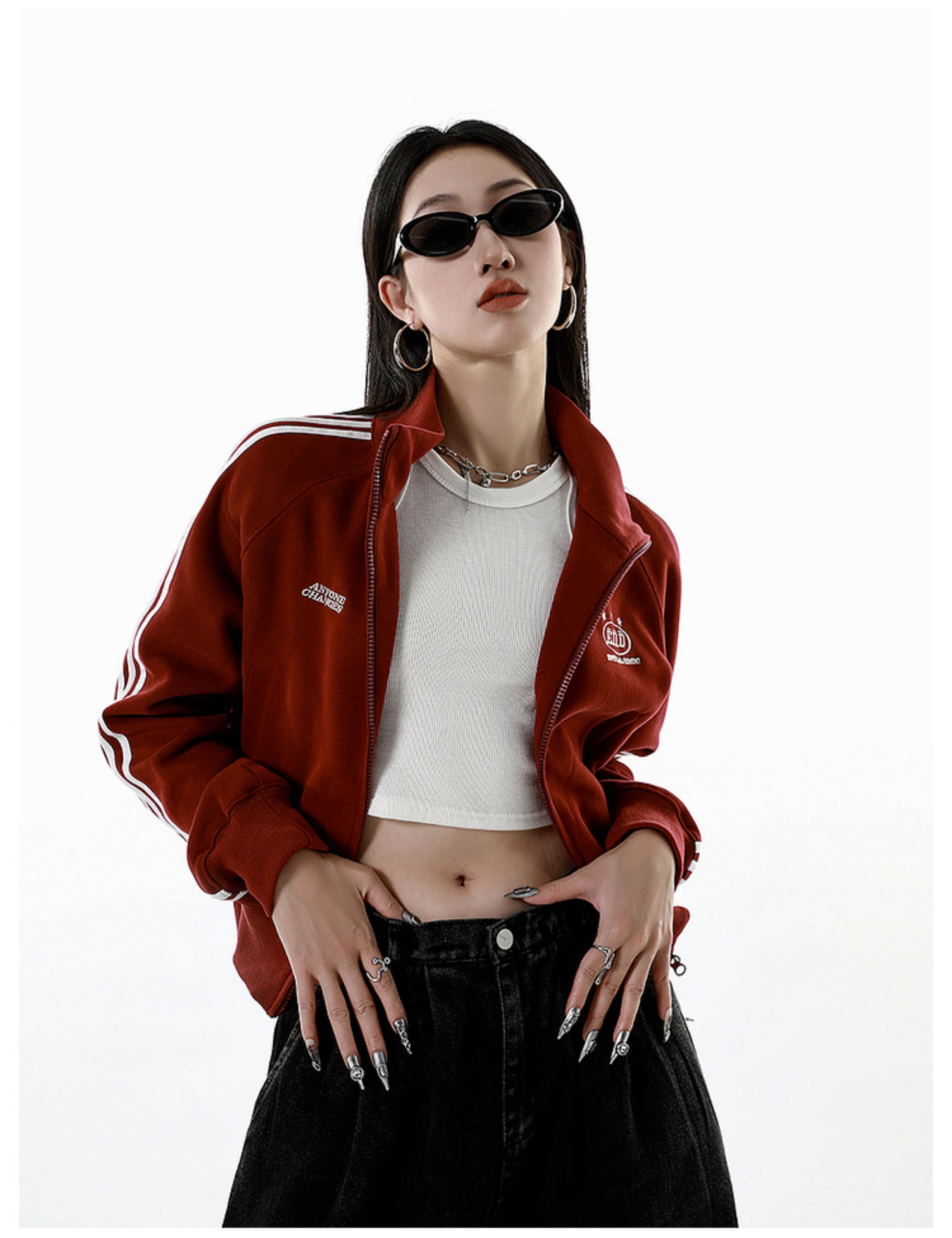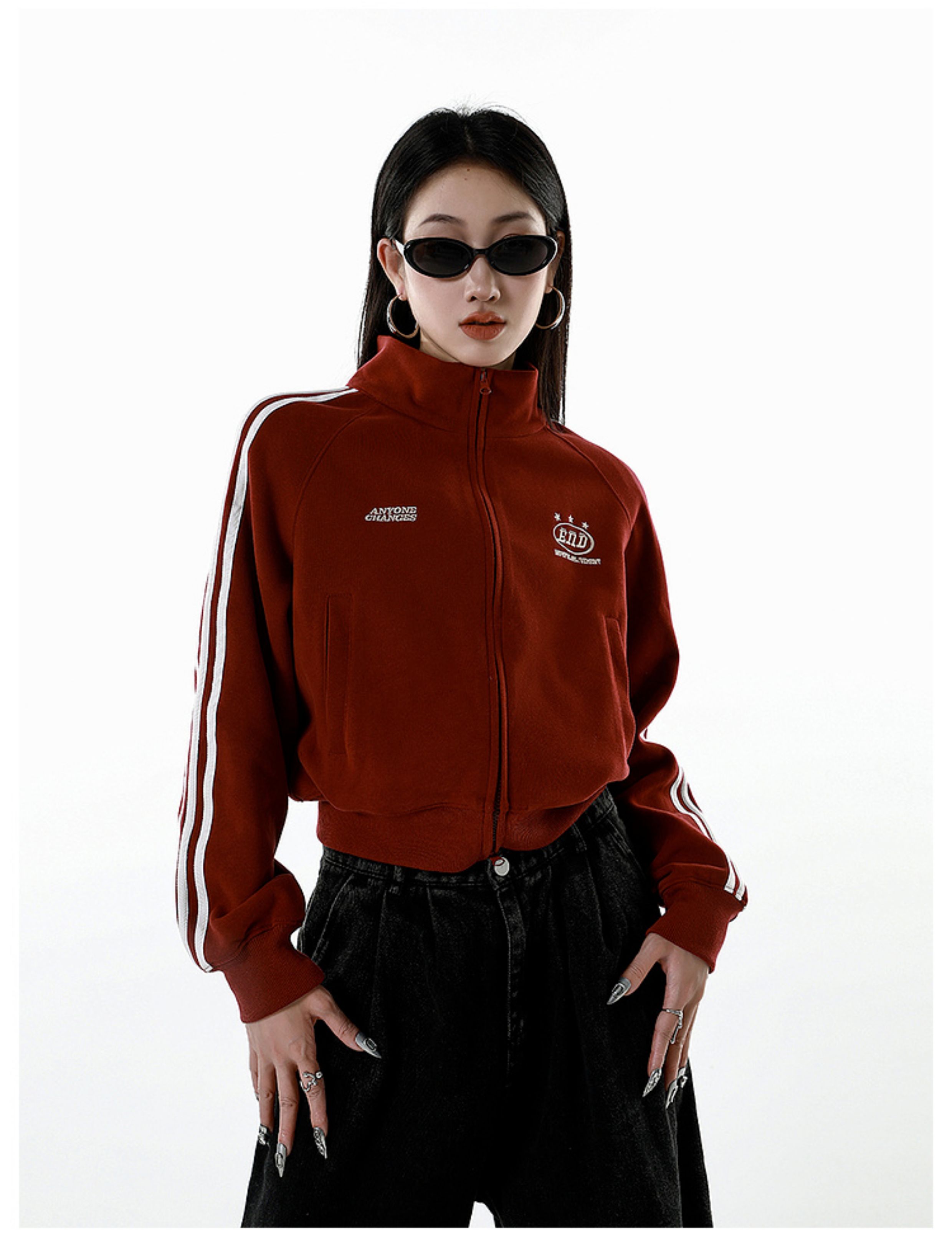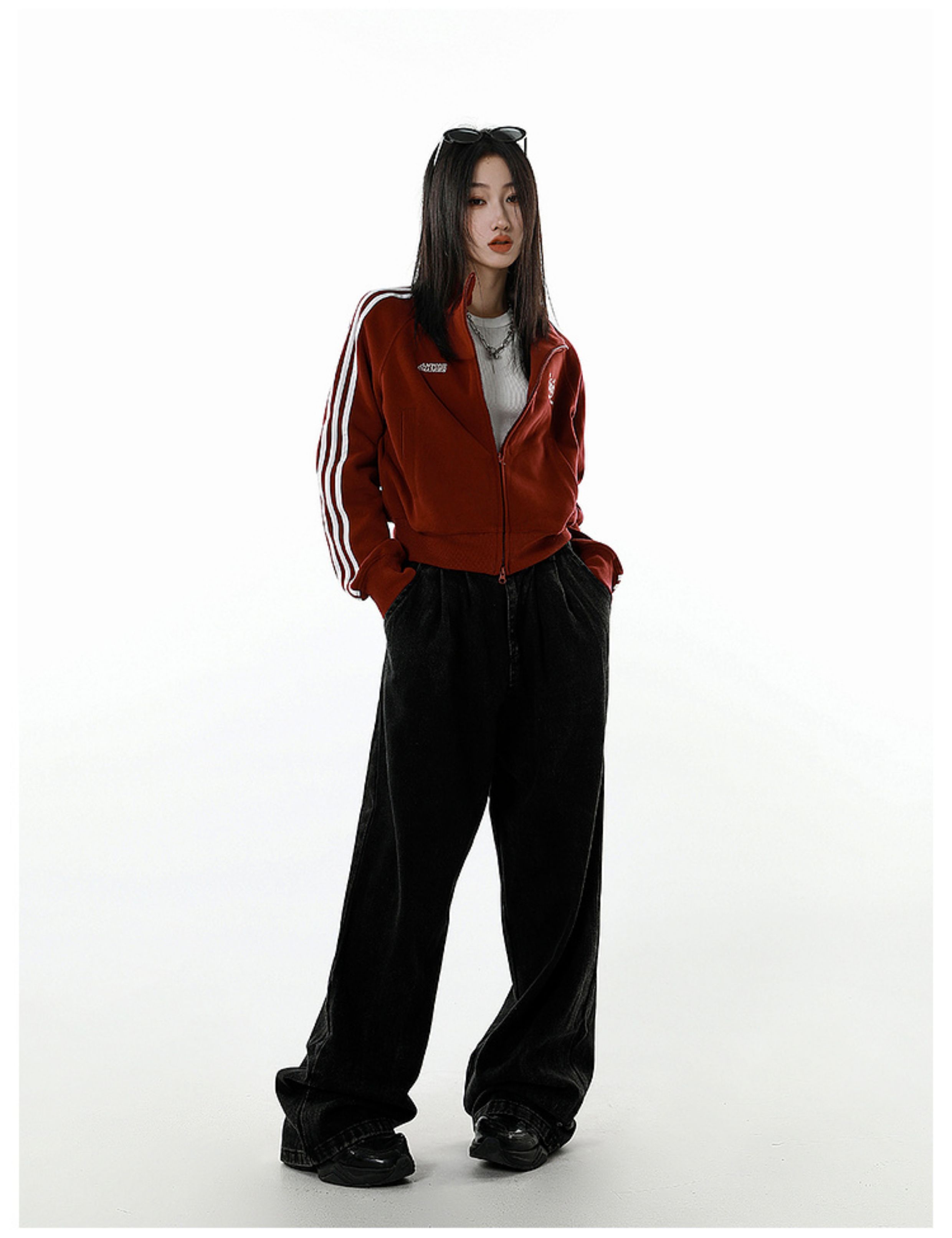 ICH MODE 美式修身短款黑色外套女2026新款春季運動連帽衛衣開衫