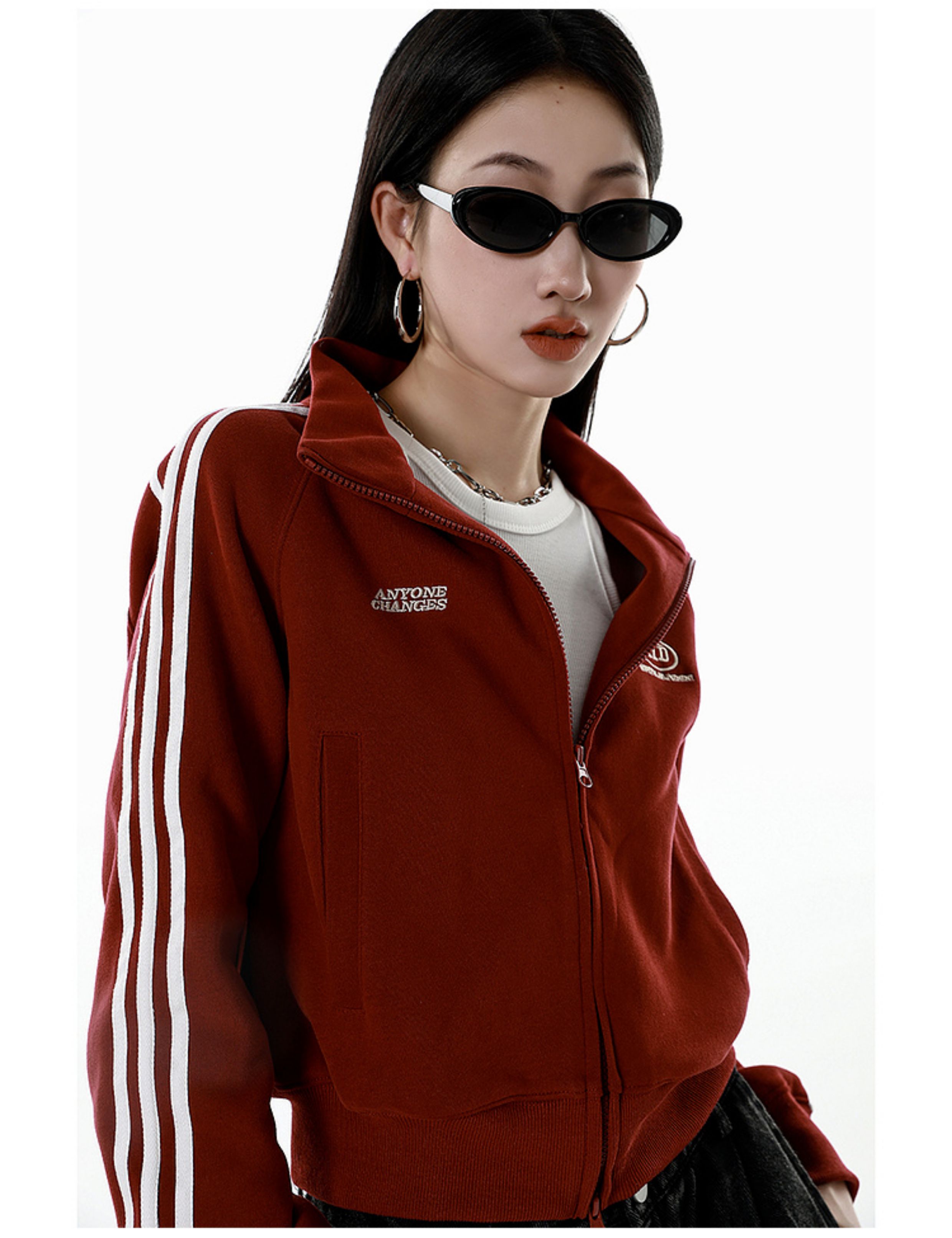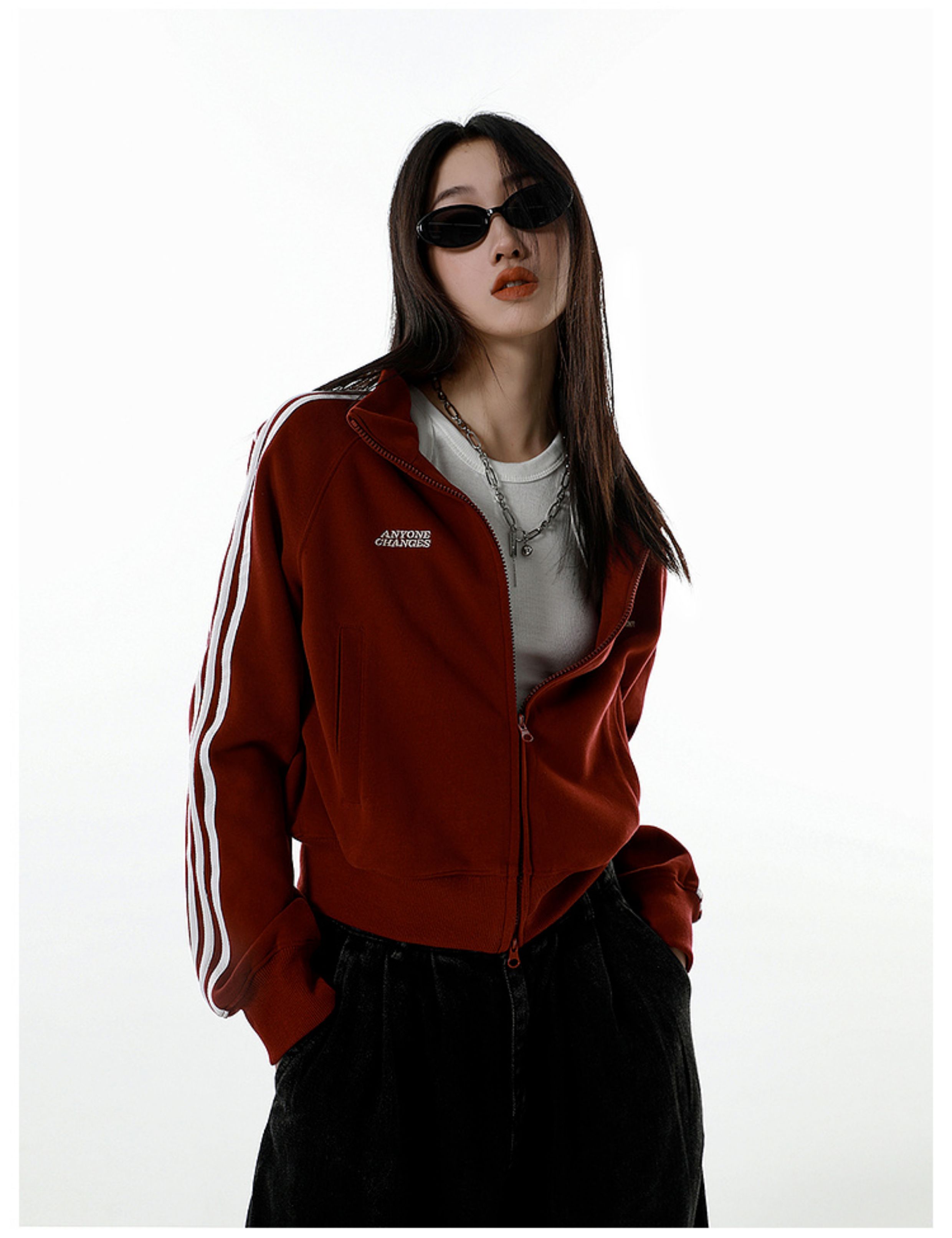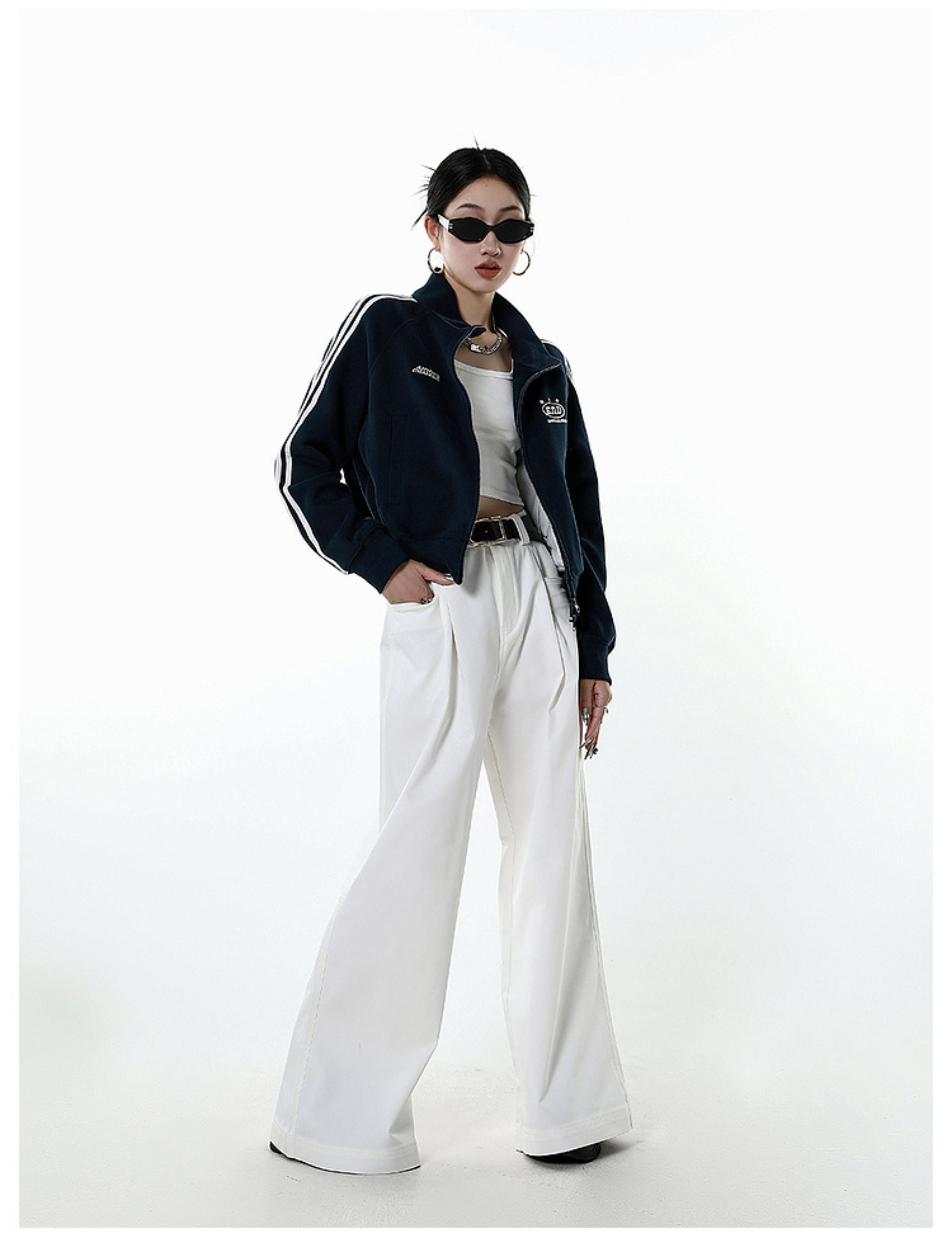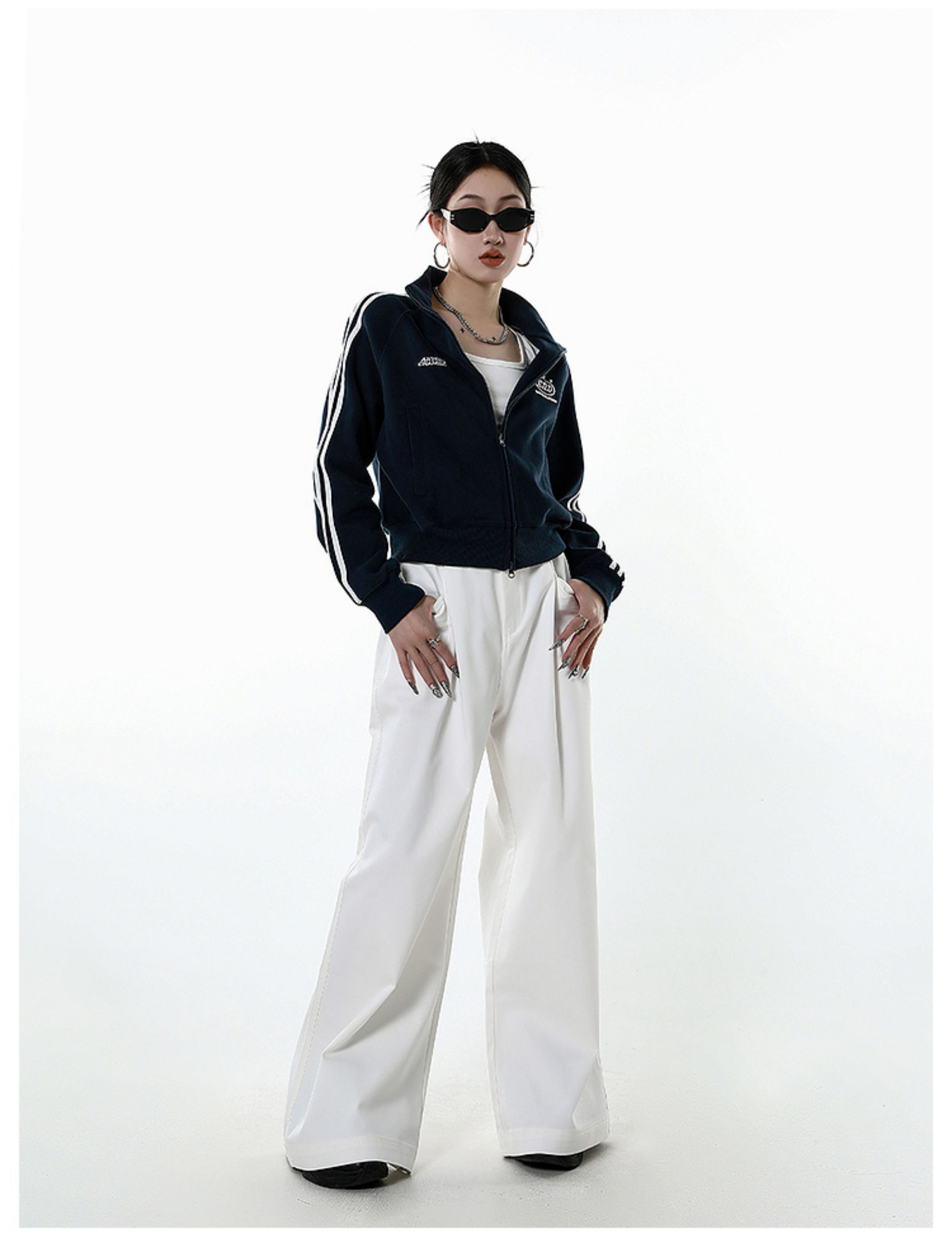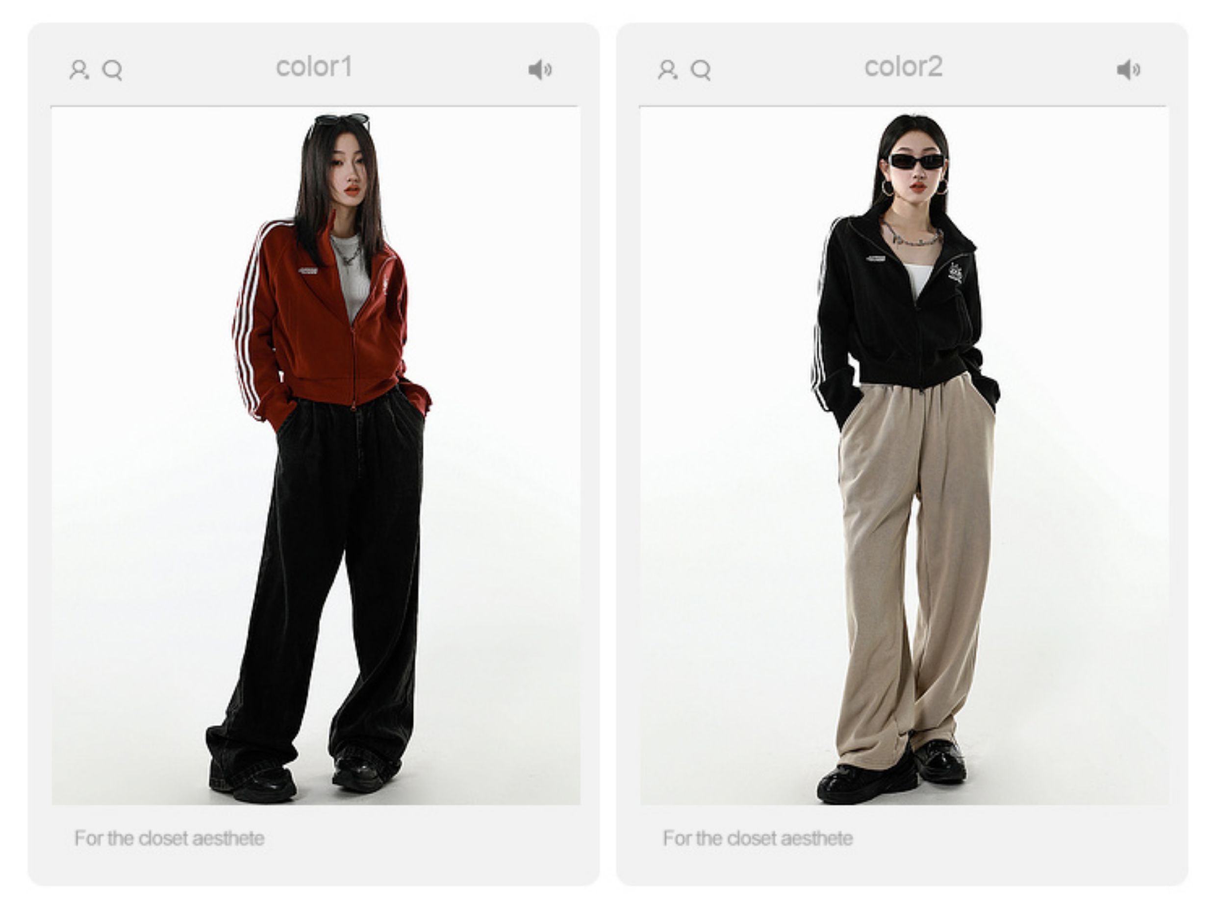 ICH MODE 美式修身短款黑色外套女2026新款春季運動連帽衛衣開衫