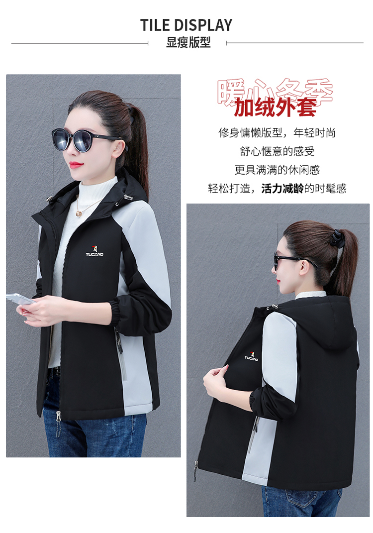 啄木鳥加絨沖鋒衣外套女士秋冬2025新款時尚加厚保暖連帽夾克上衣