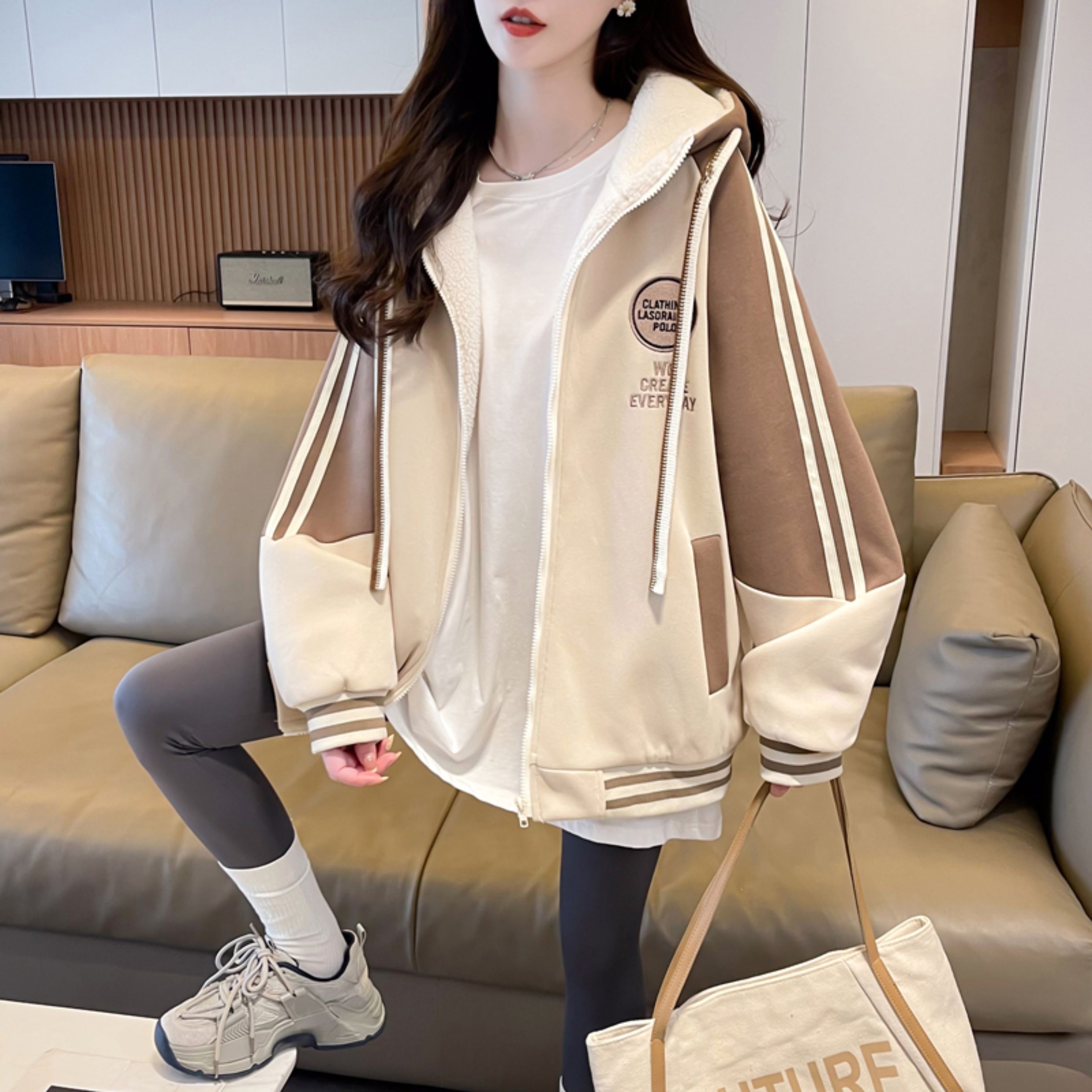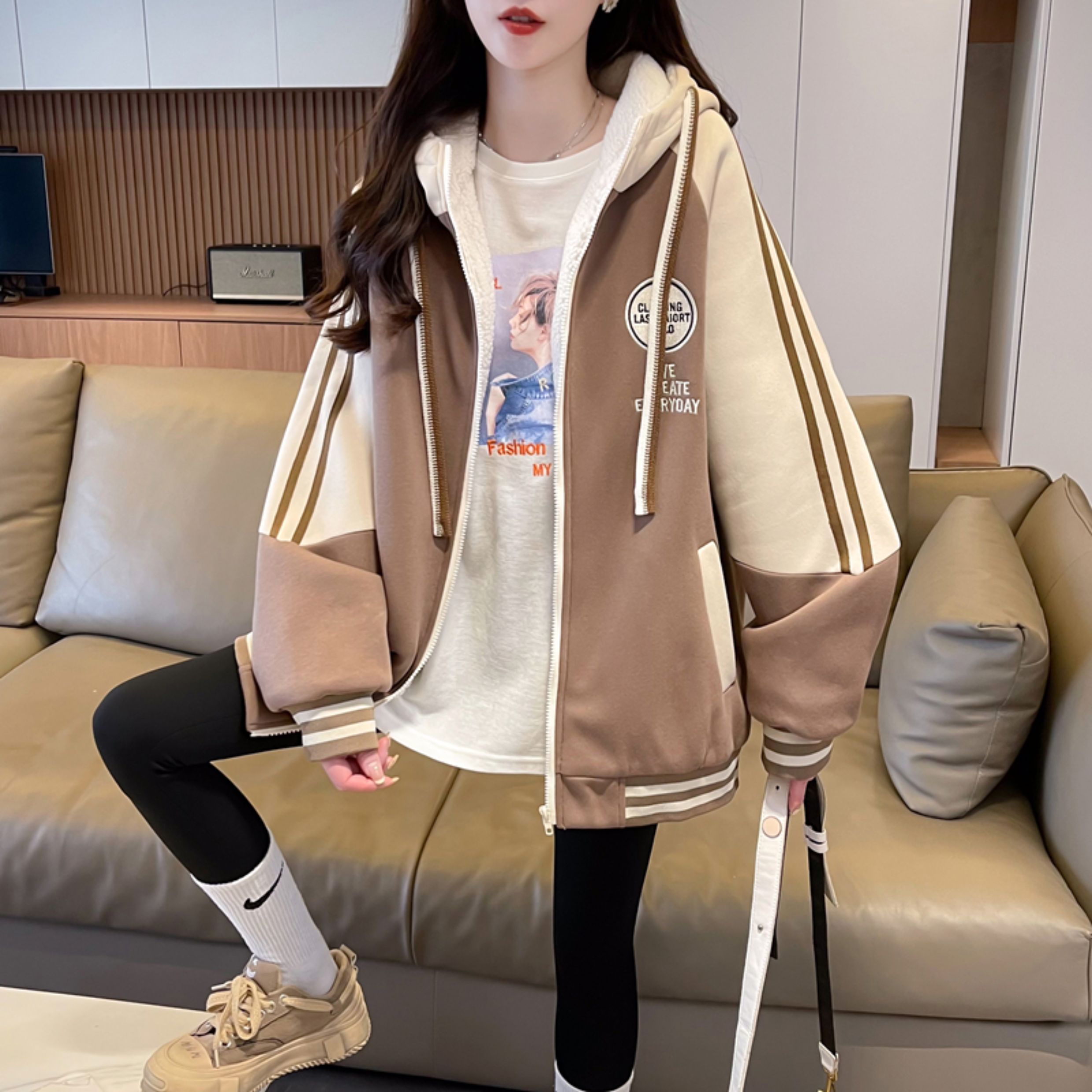 羊羔毛棒球服女春秋冬季加絨加厚外套2025新款初高中學生大童夾克