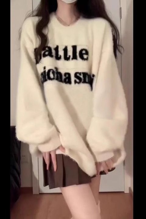 白色軟糯水貂絨毛衣女秋冬2025新款寬鬆針織加厚溫柔慵嬾風高級感