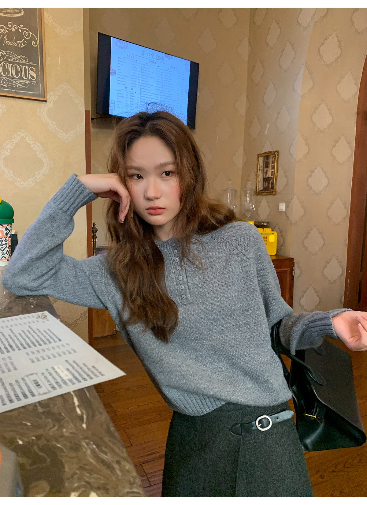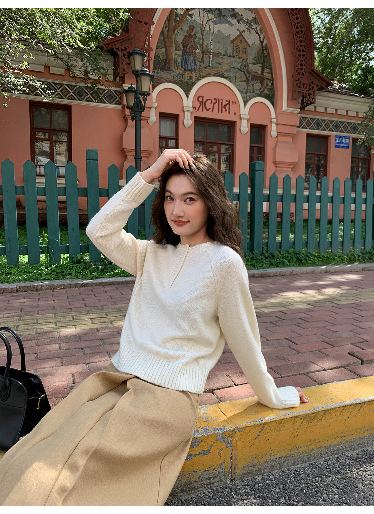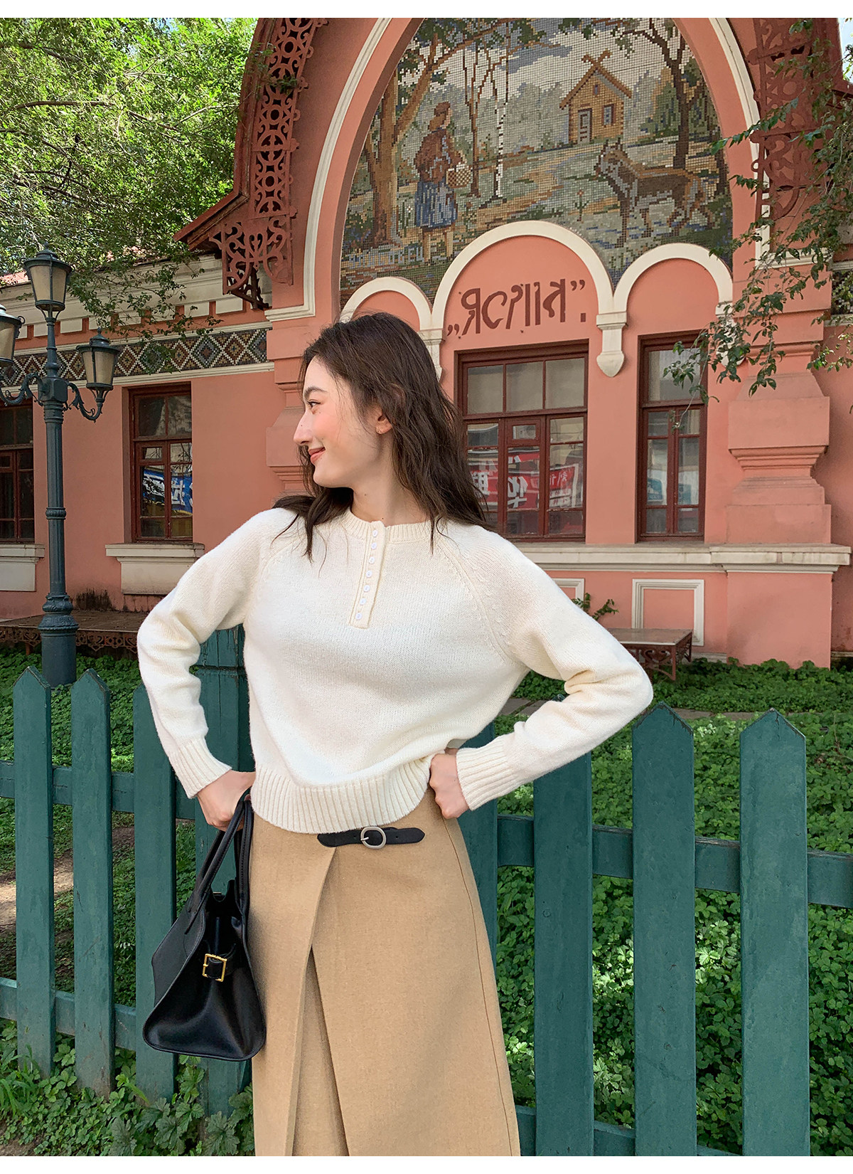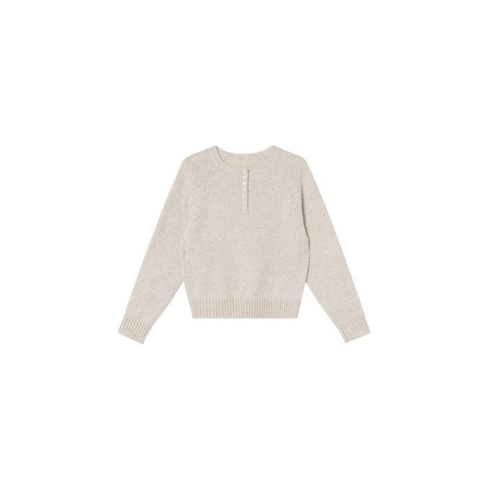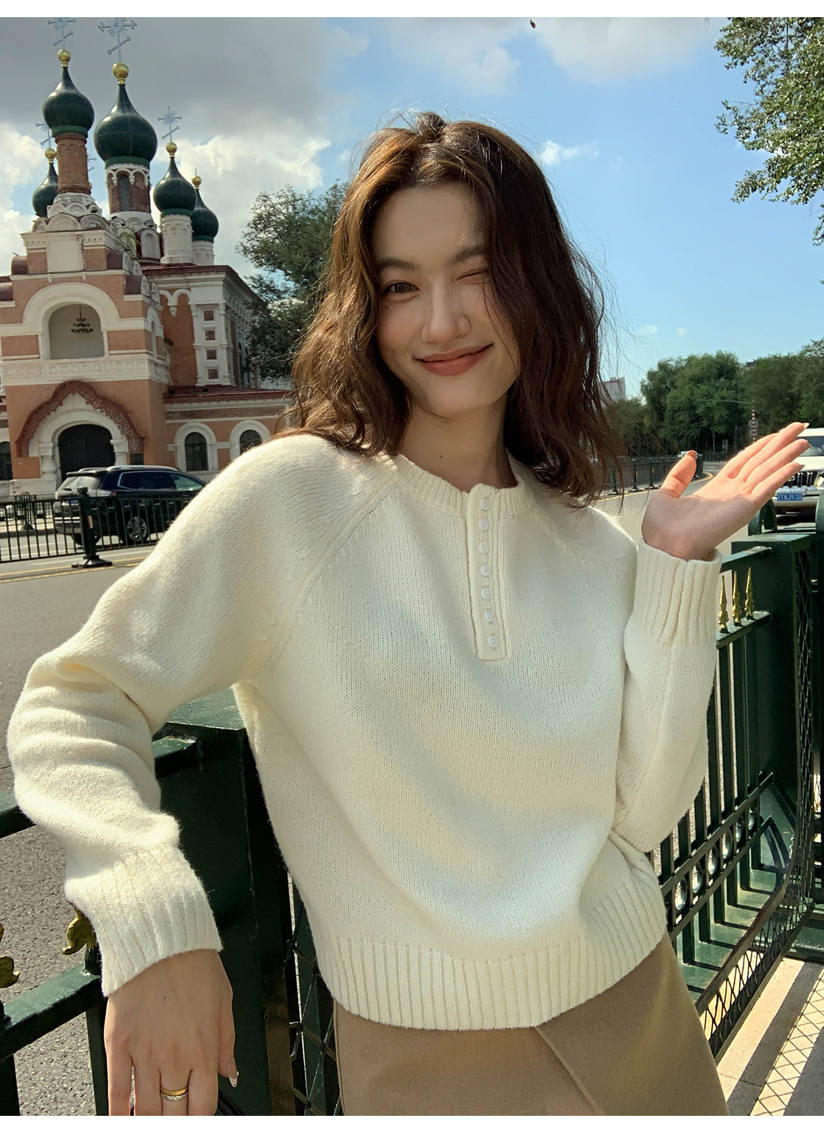 你好卡農 亨利領插肩袖套頭針織衫女秋2025新款寬鬆簡約純色毛衣
