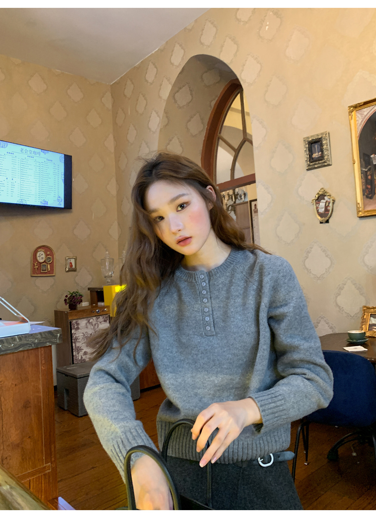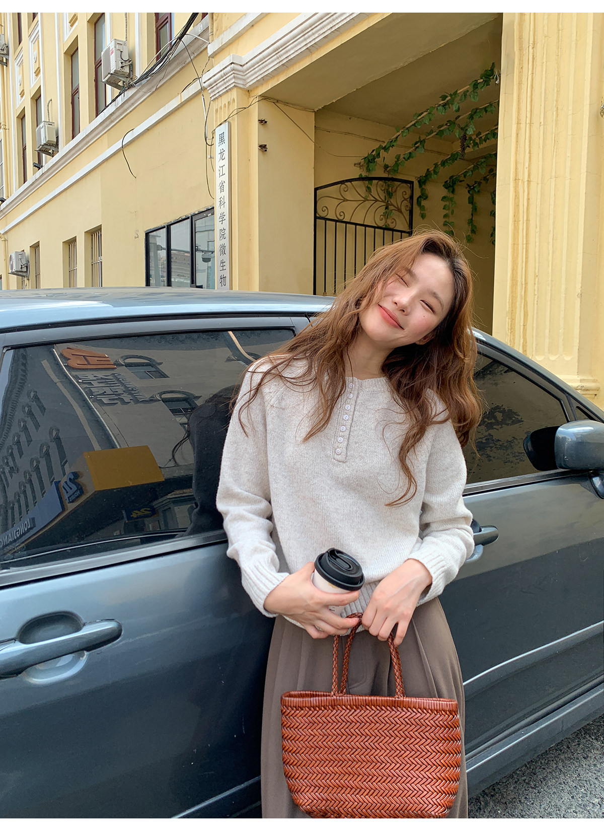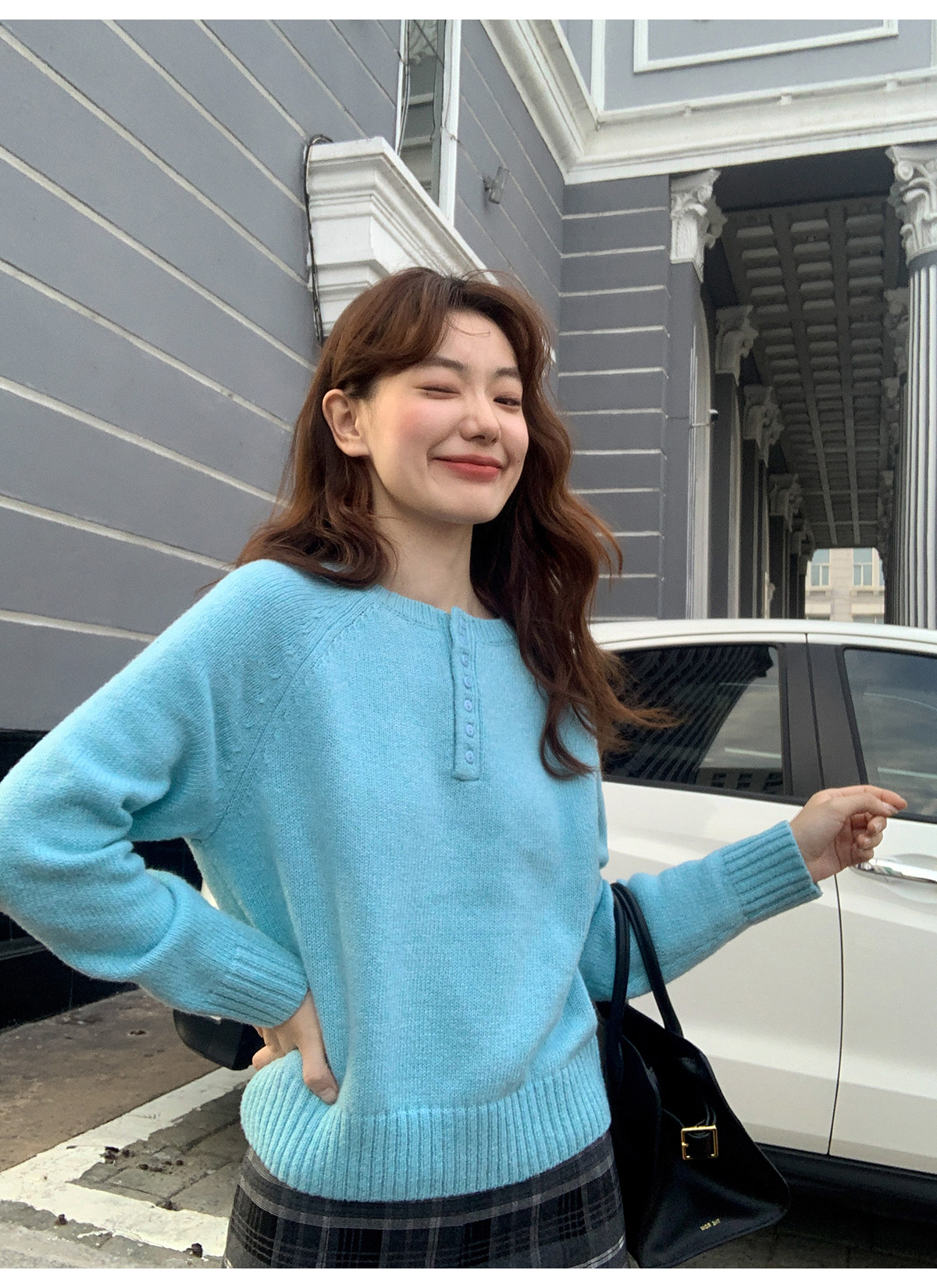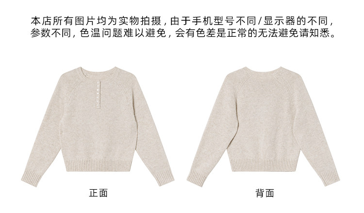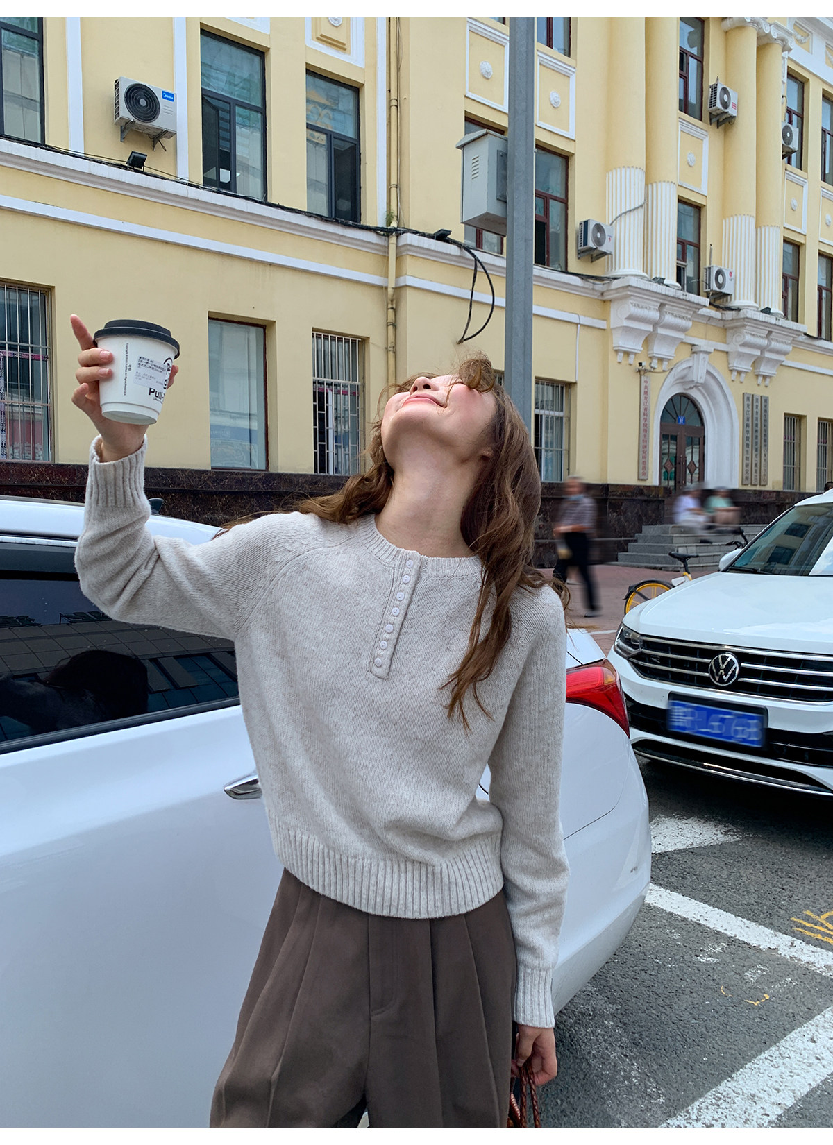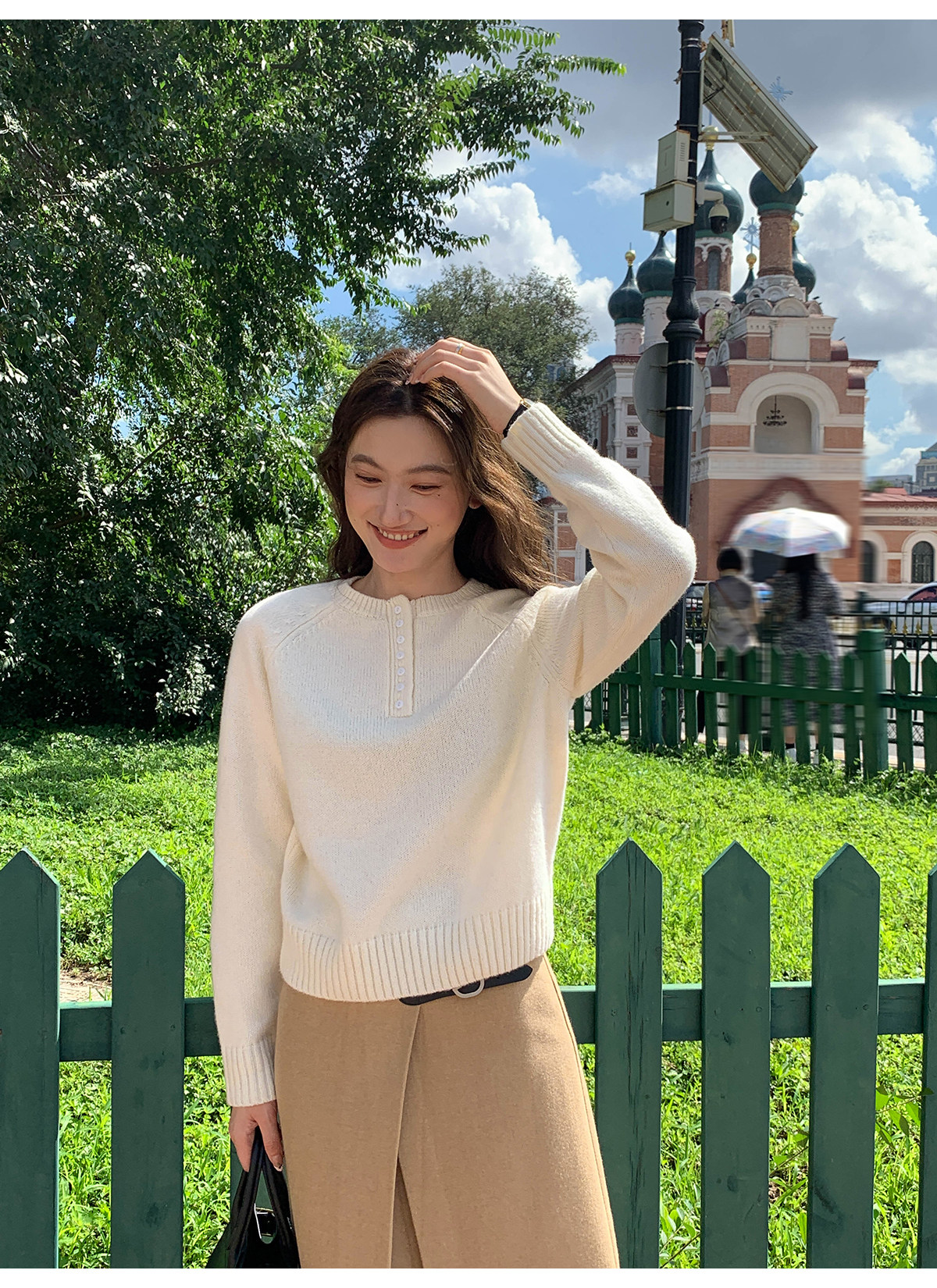你好卡農 亨利領插肩袖套頭針織衫女秋2025新款寬鬆簡約純色毛衣