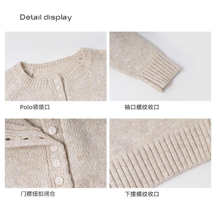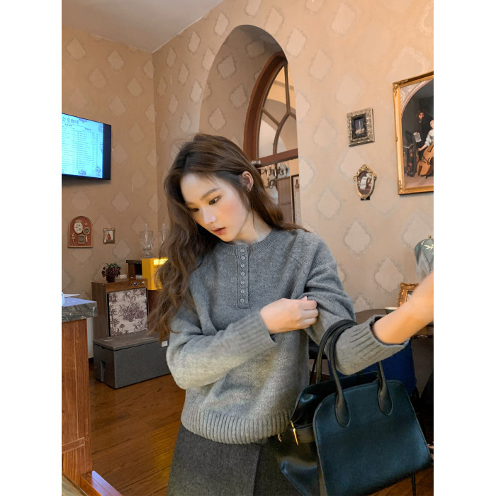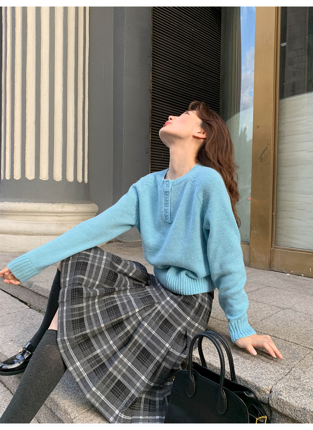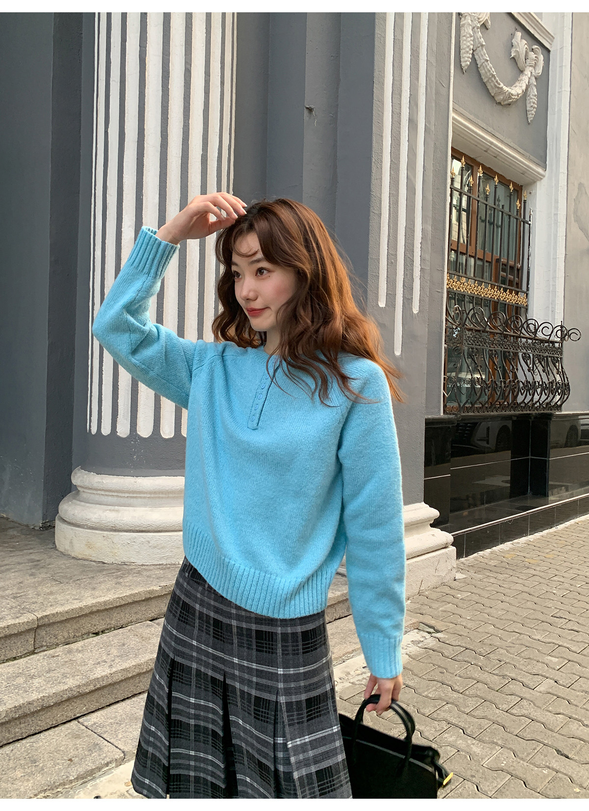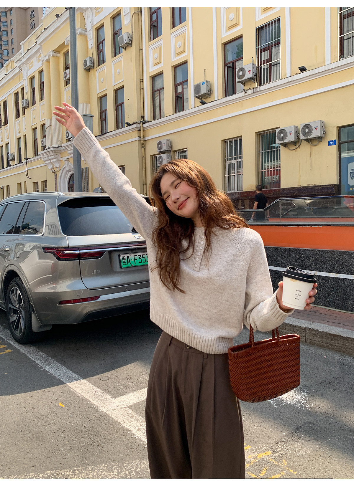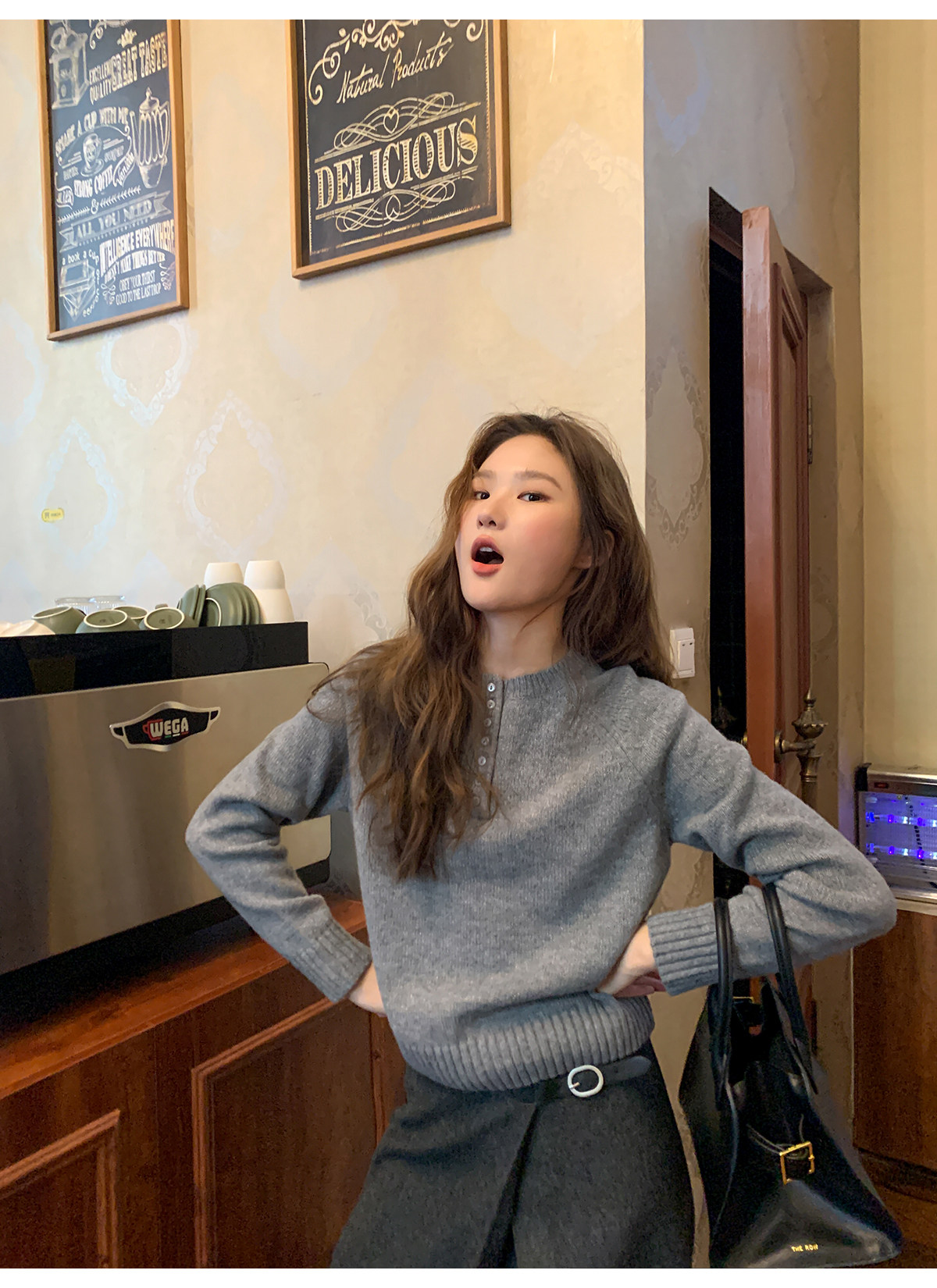 你好卡農 亨利領插肩袖套頭針織衫女秋2025新款寬鬆簡約純色毛衣