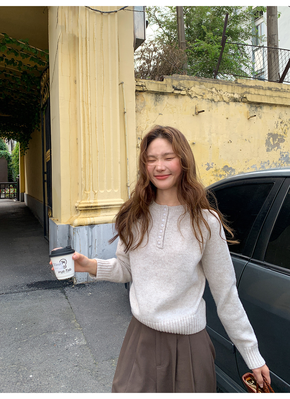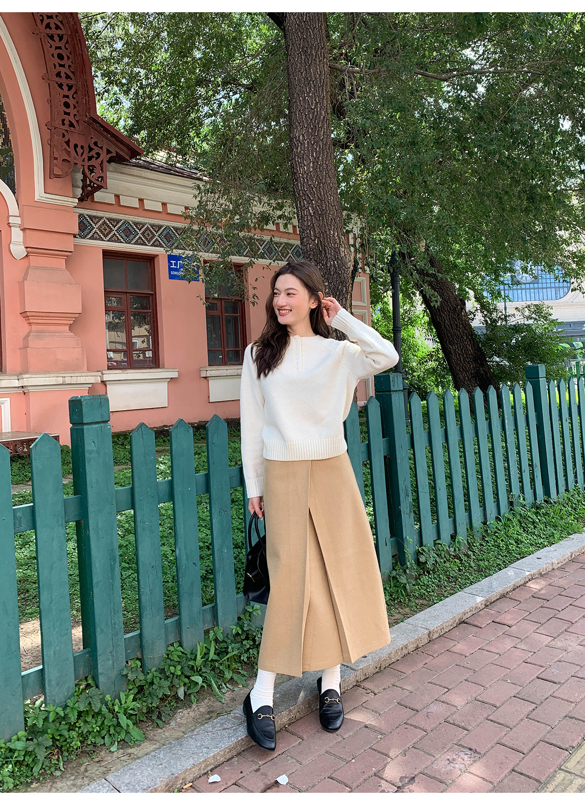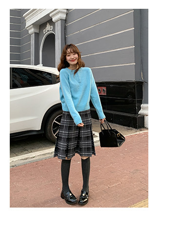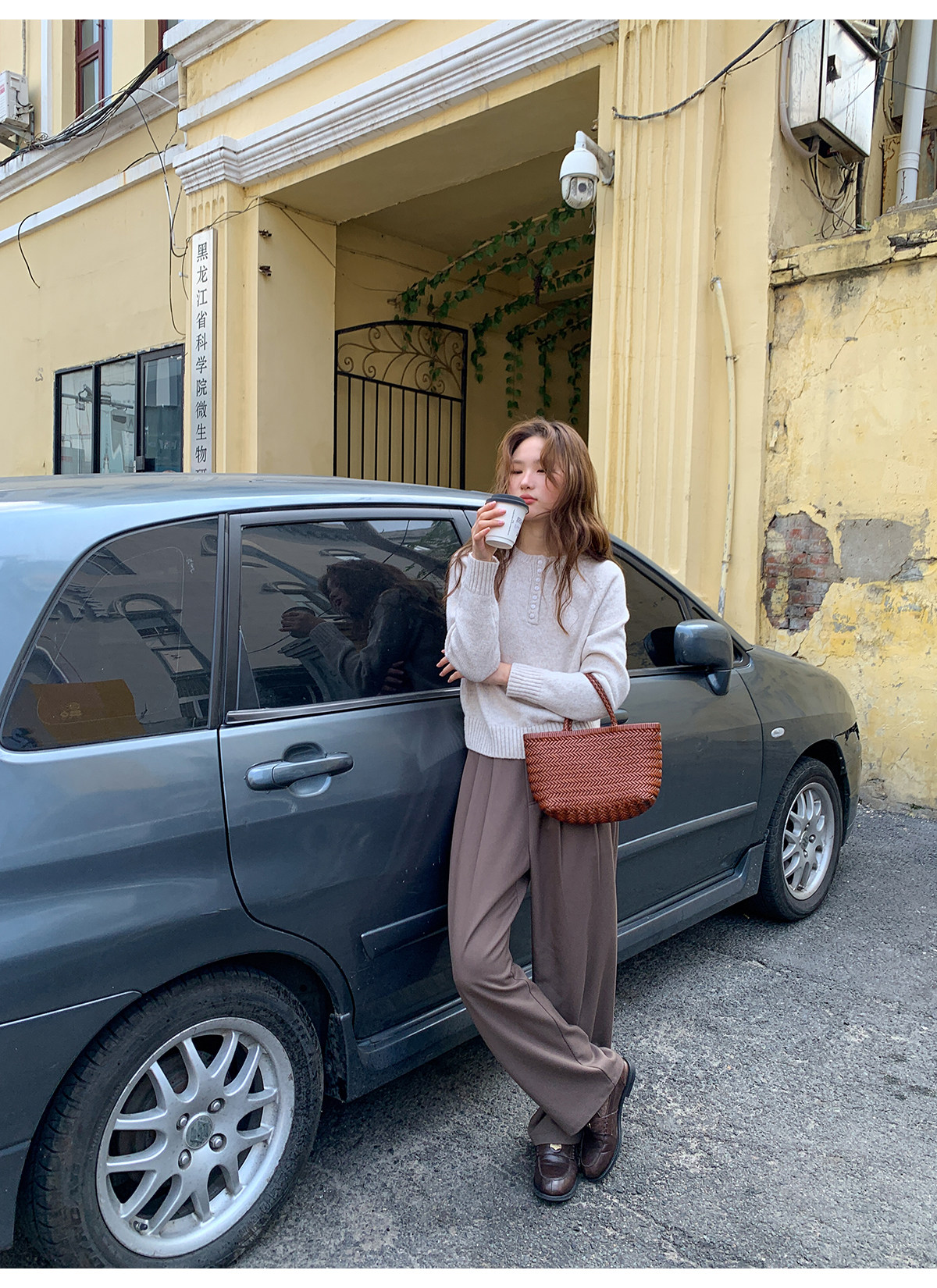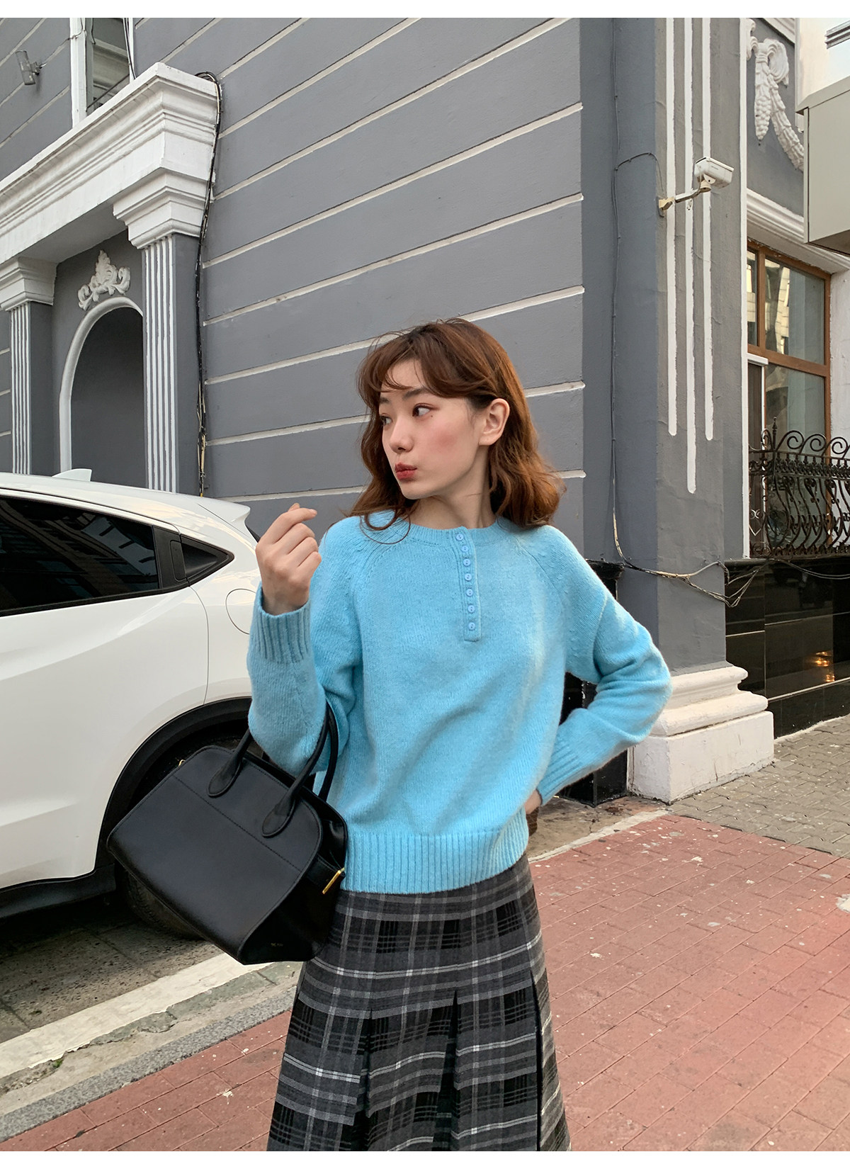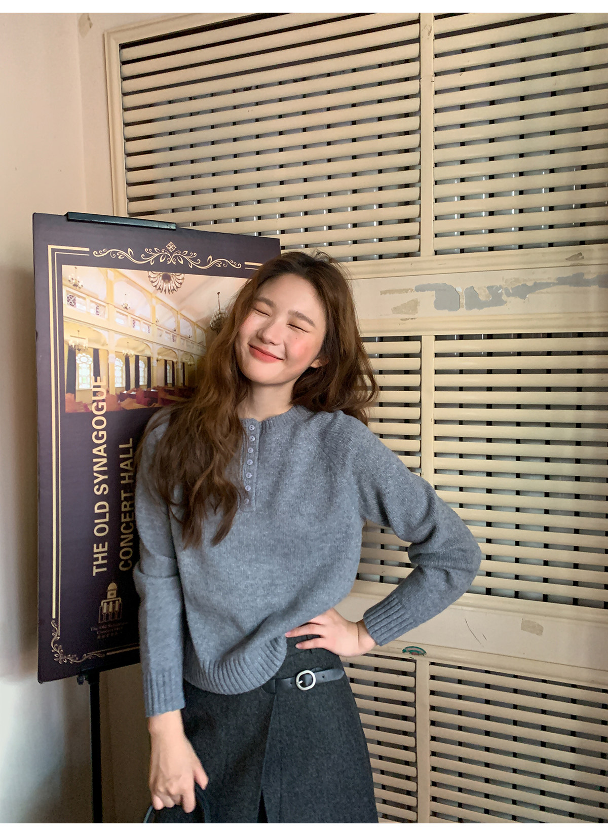 你好卡農 亨利領插肩袖套頭針織衫女秋2025新款寬鬆簡約純色毛衣