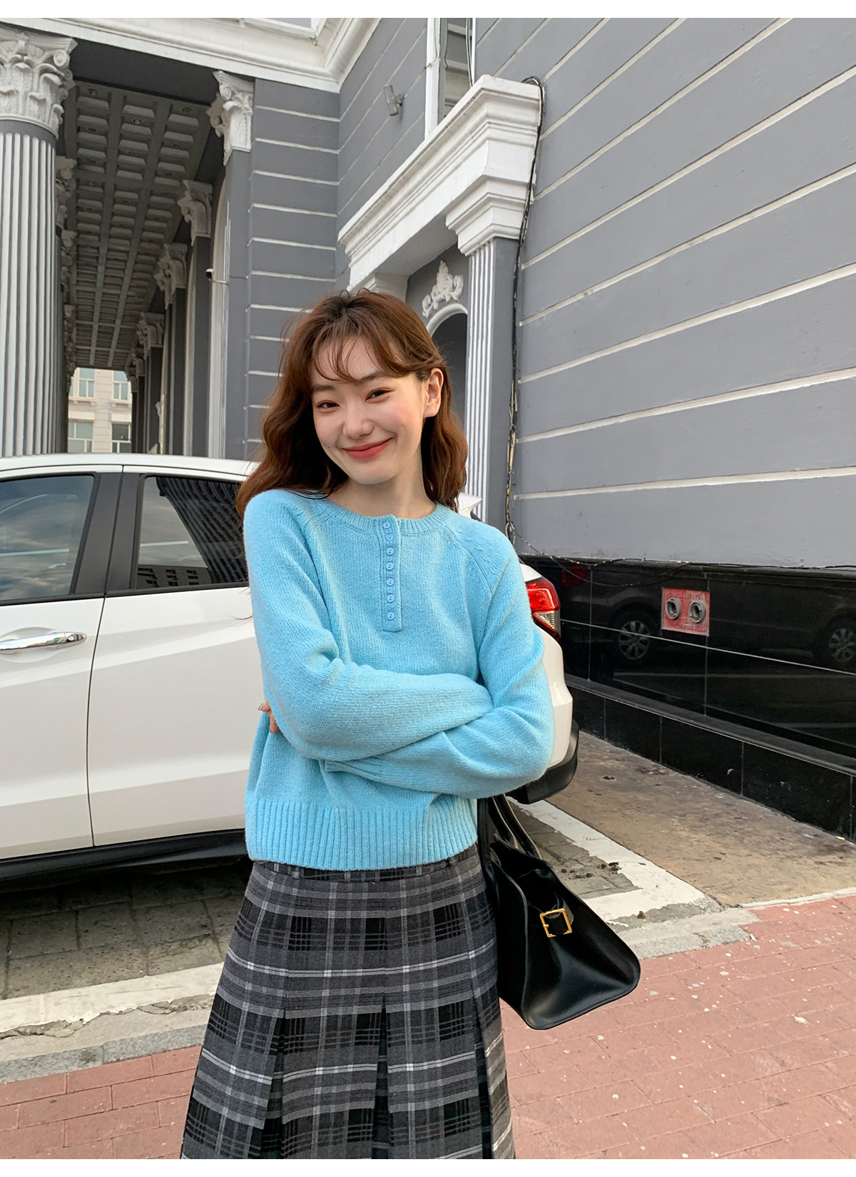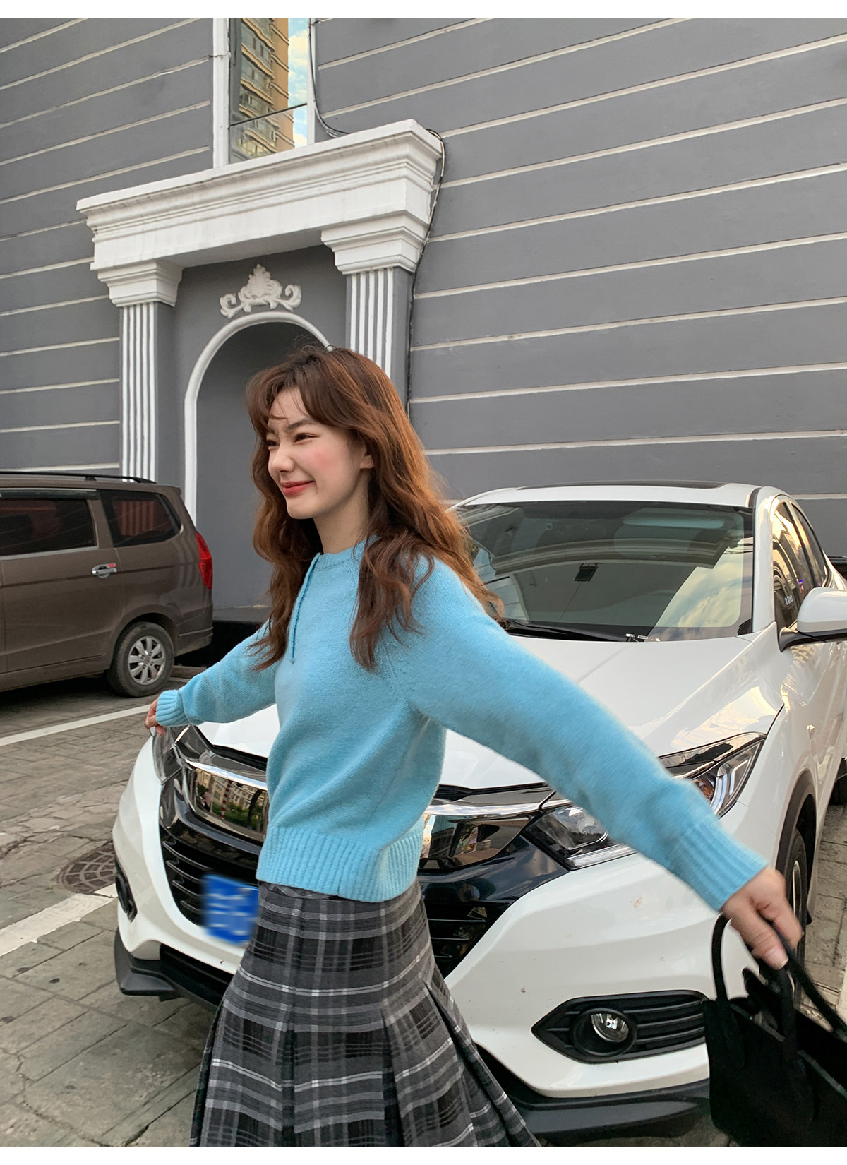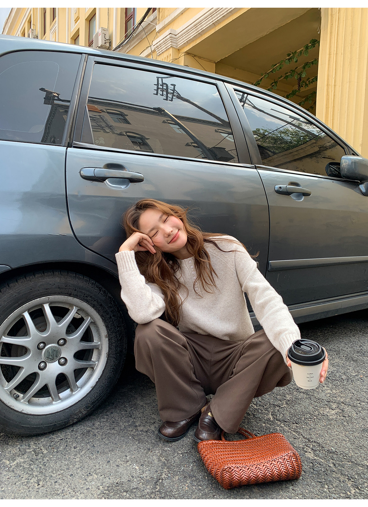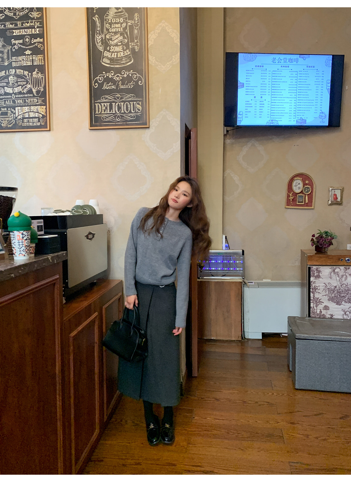 你好卡農 亨利領插肩袖套頭針織衫女秋2025新款寬鬆簡約純色毛衣