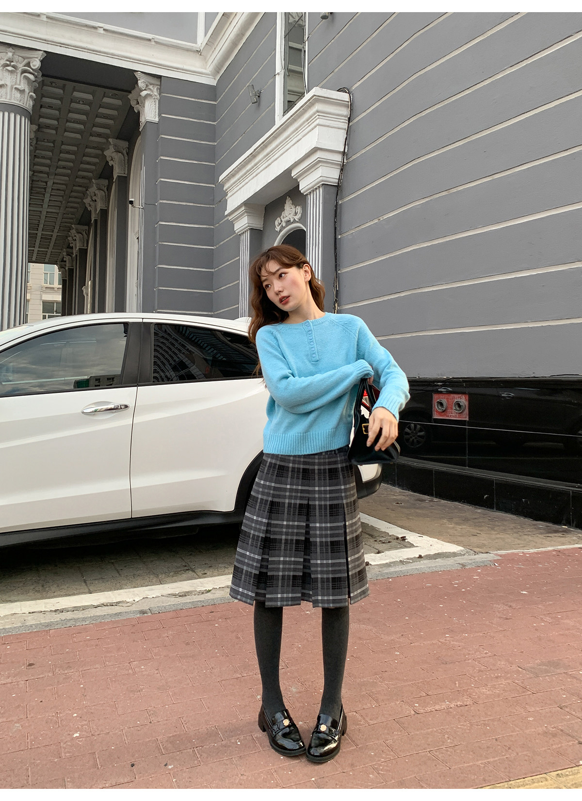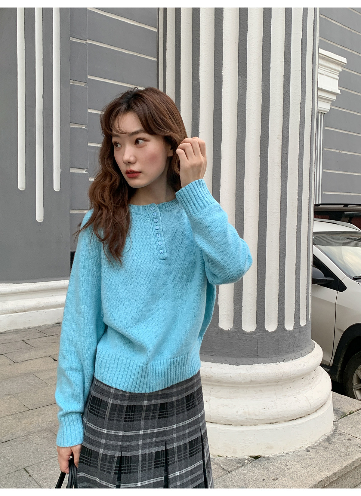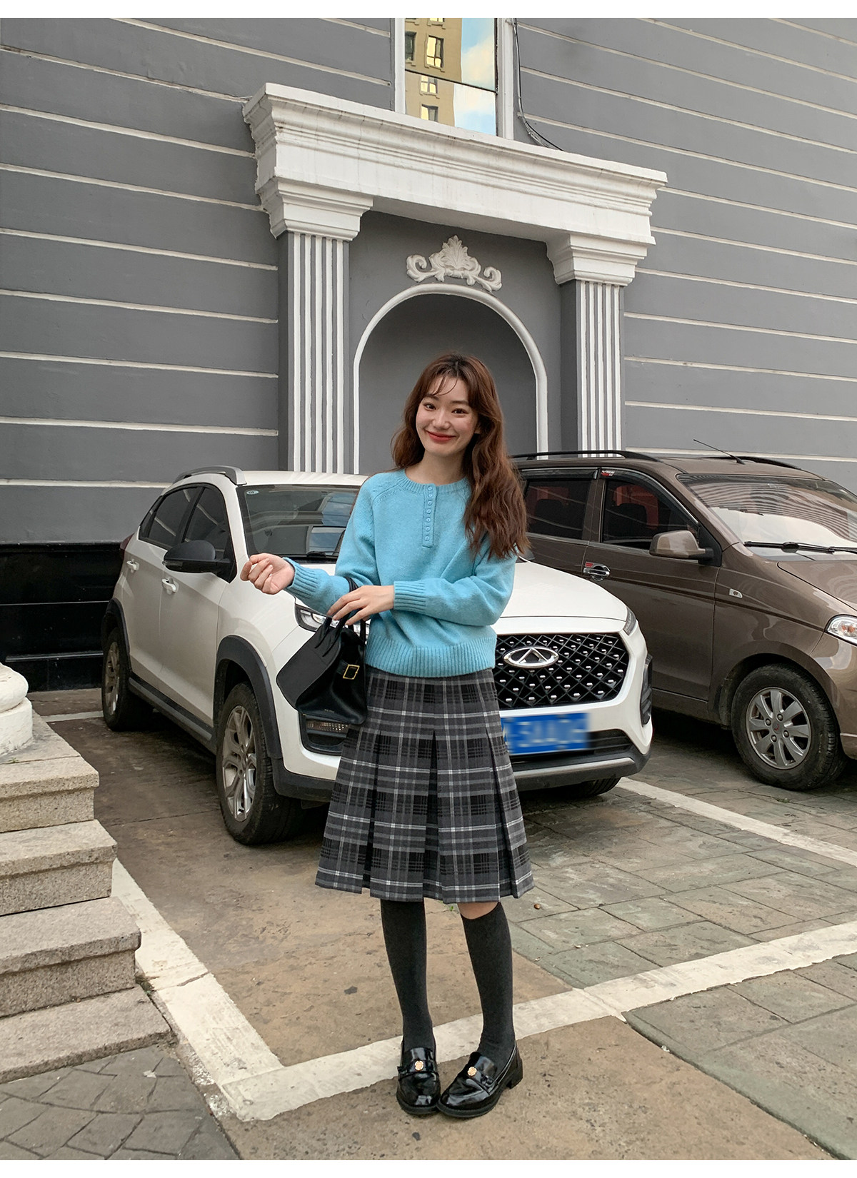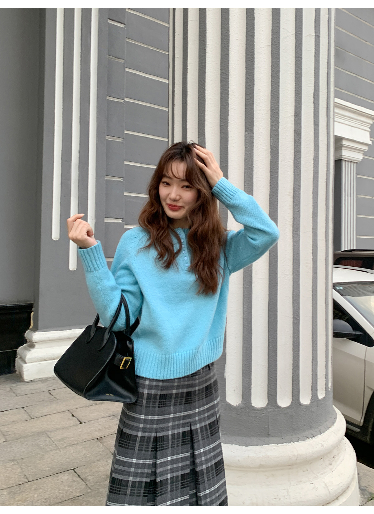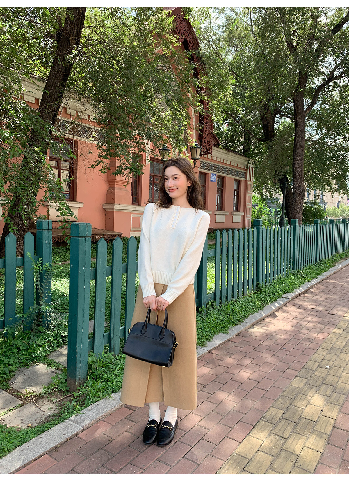 你好卡農 亨利領插肩袖套頭針織衫女秋2025新款寬鬆簡約純色毛衣