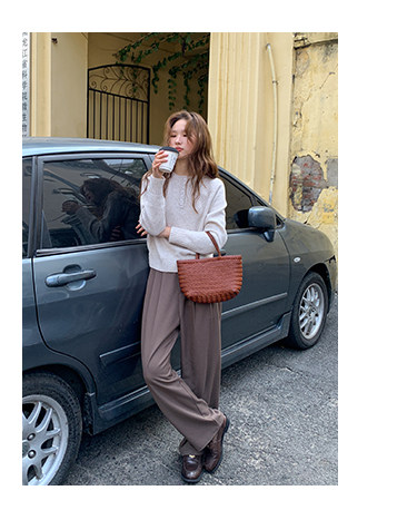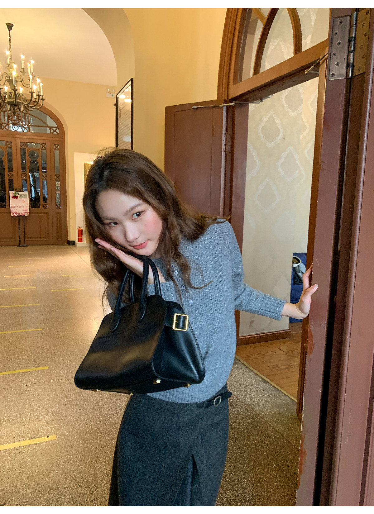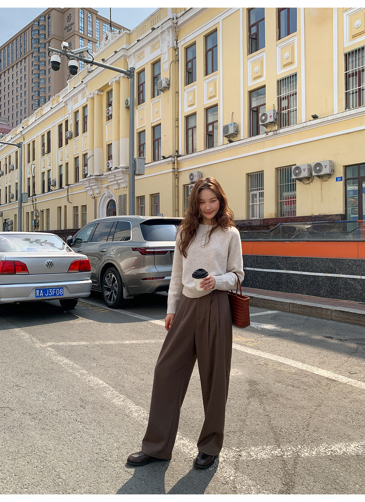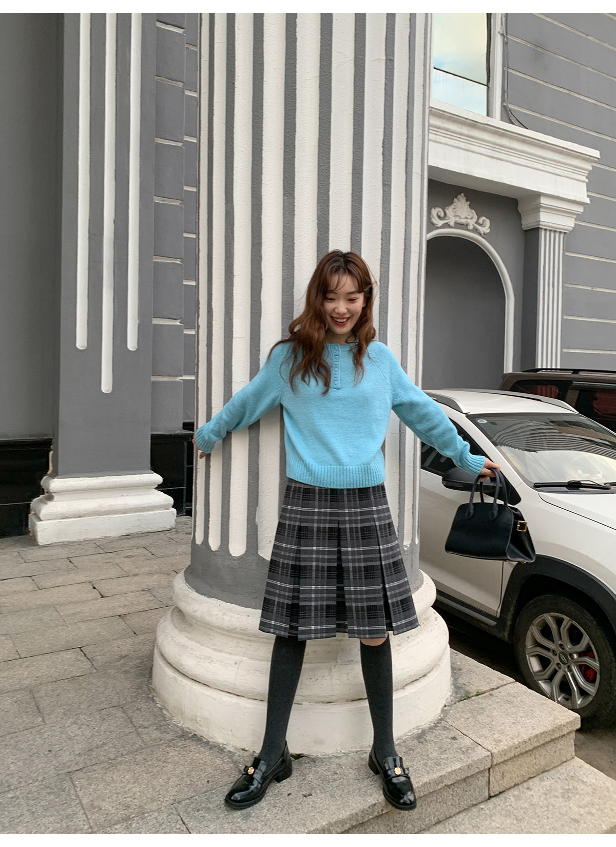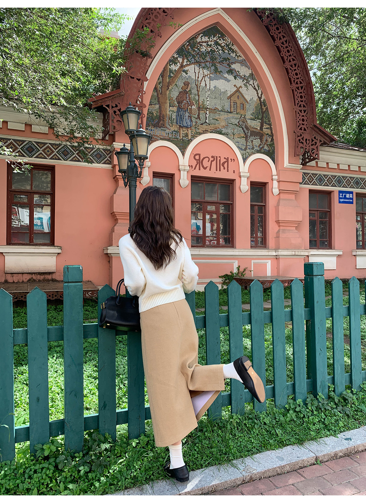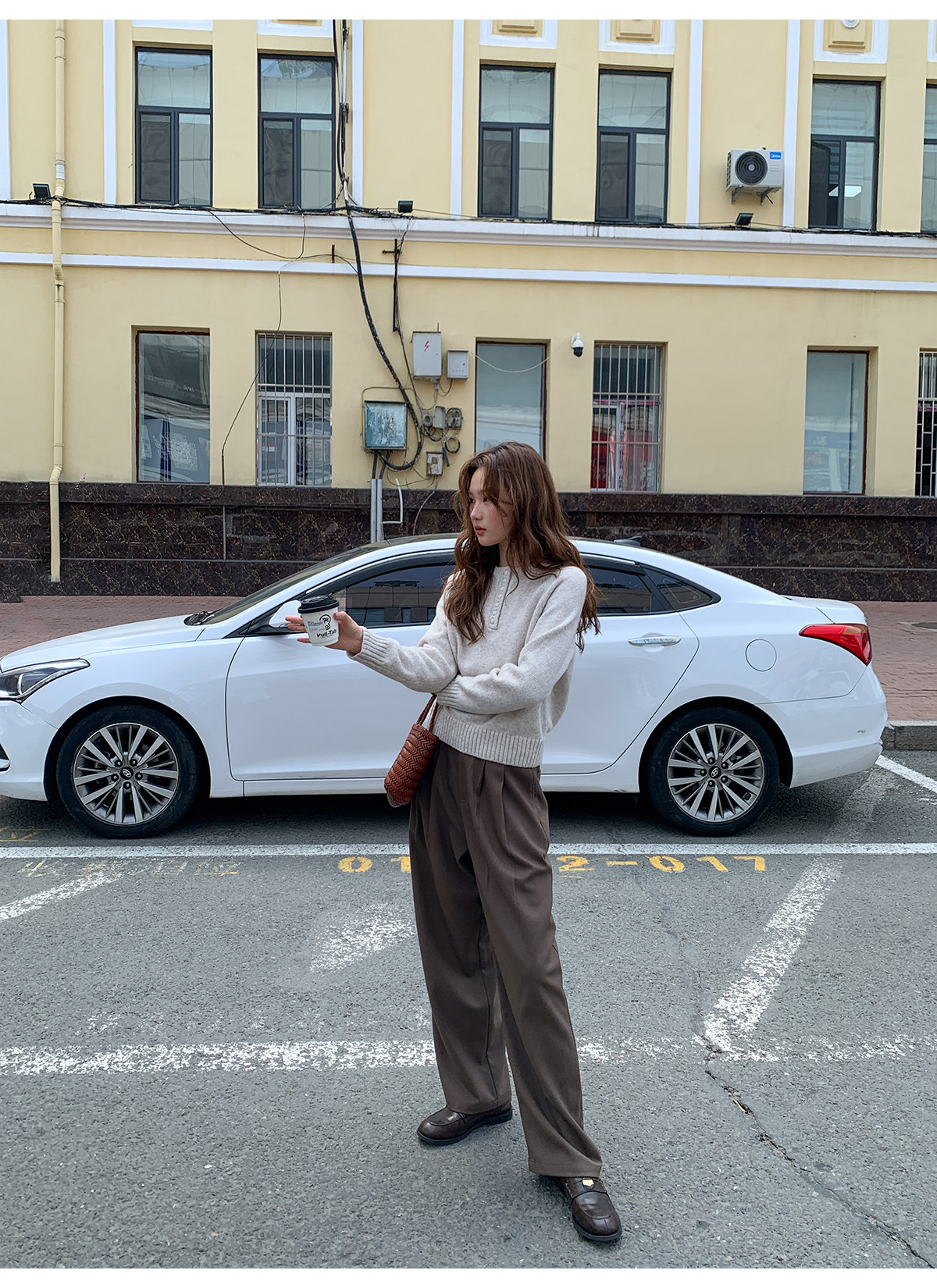 你好卡農 亨利領插肩袖套頭針織衫女秋2025新款寬鬆簡約純色毛衣