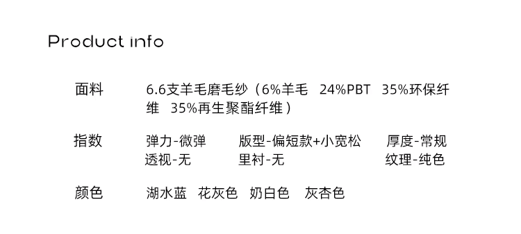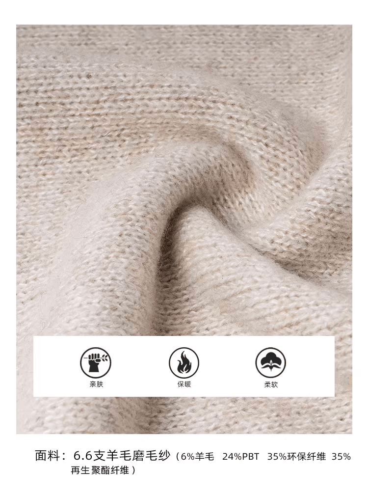 材質成分 其他材質59% 聚對苯二甲酸乙二酯(滌綸)35% 羊毛6%