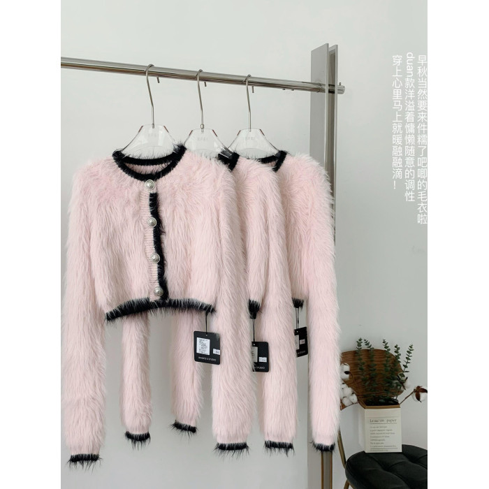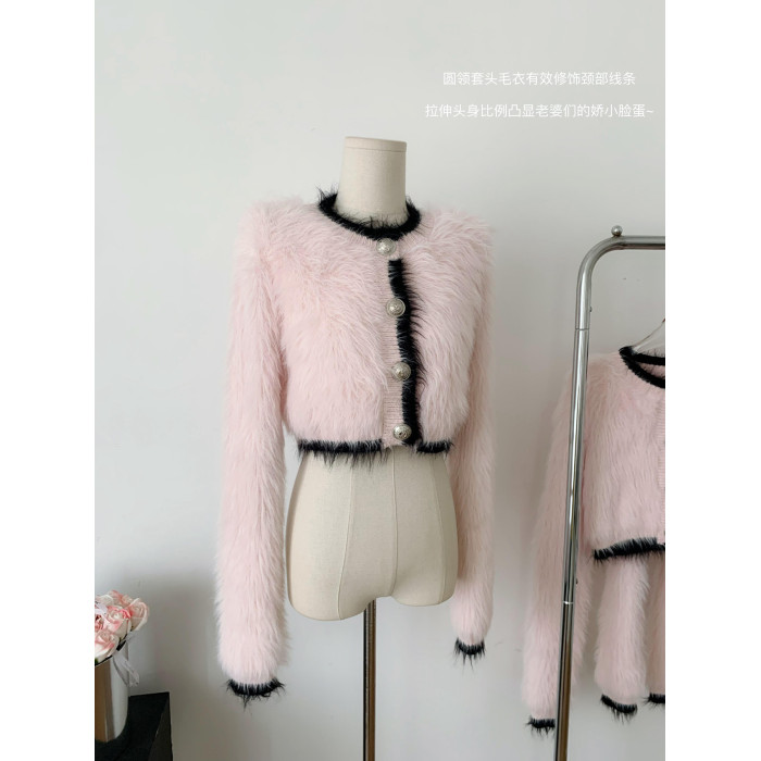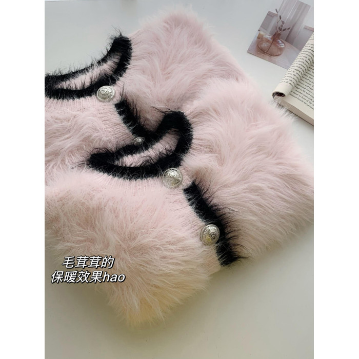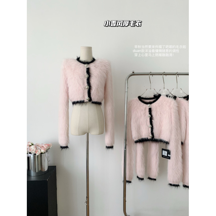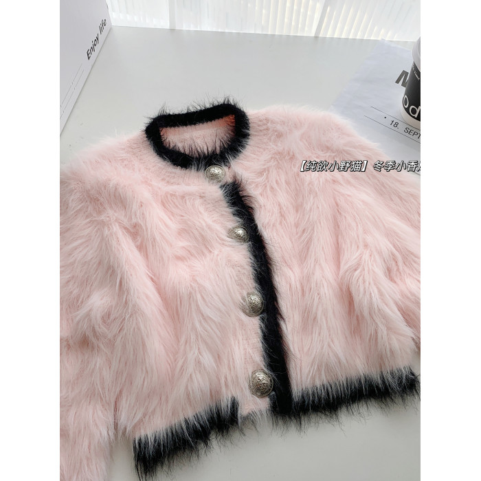 純欲小野貓冬季小香風海馬毛加厚毛衣女軟糯慵懶風百搭針織衫上衣