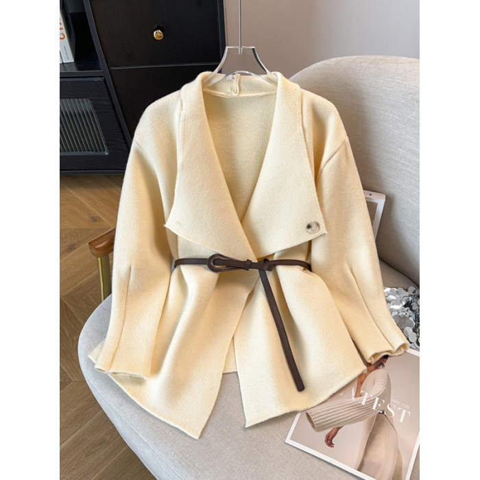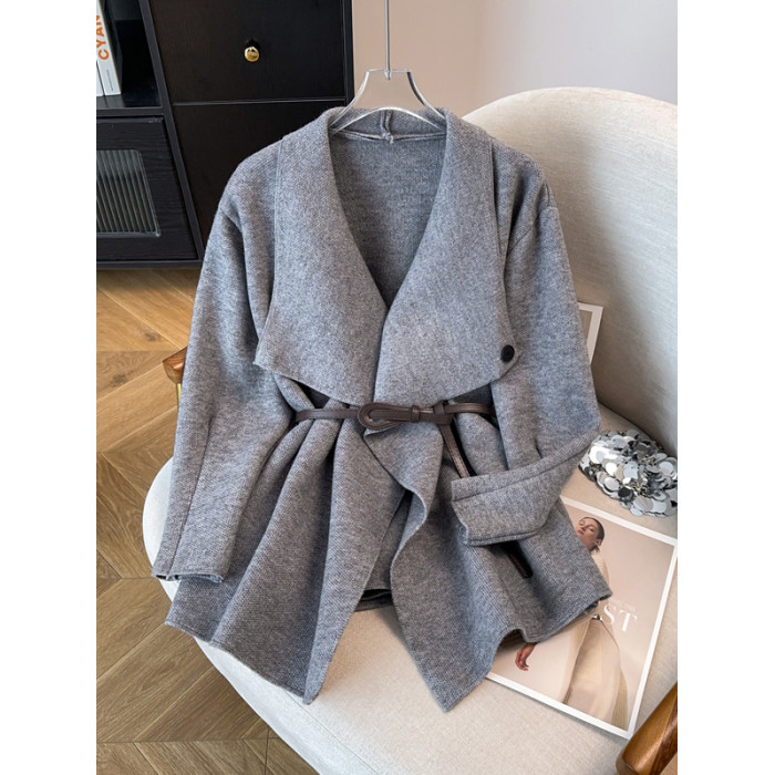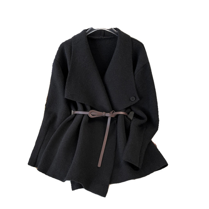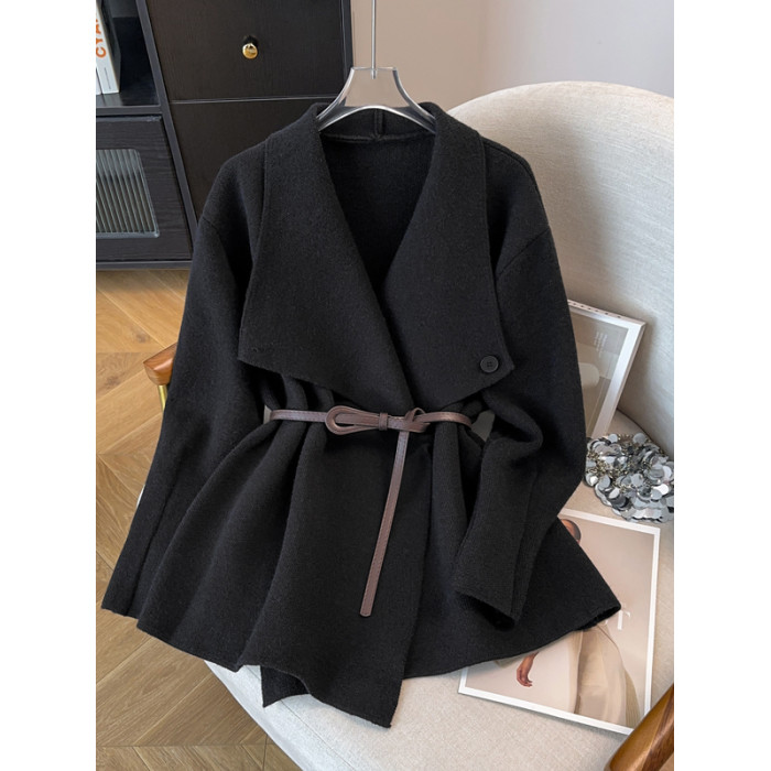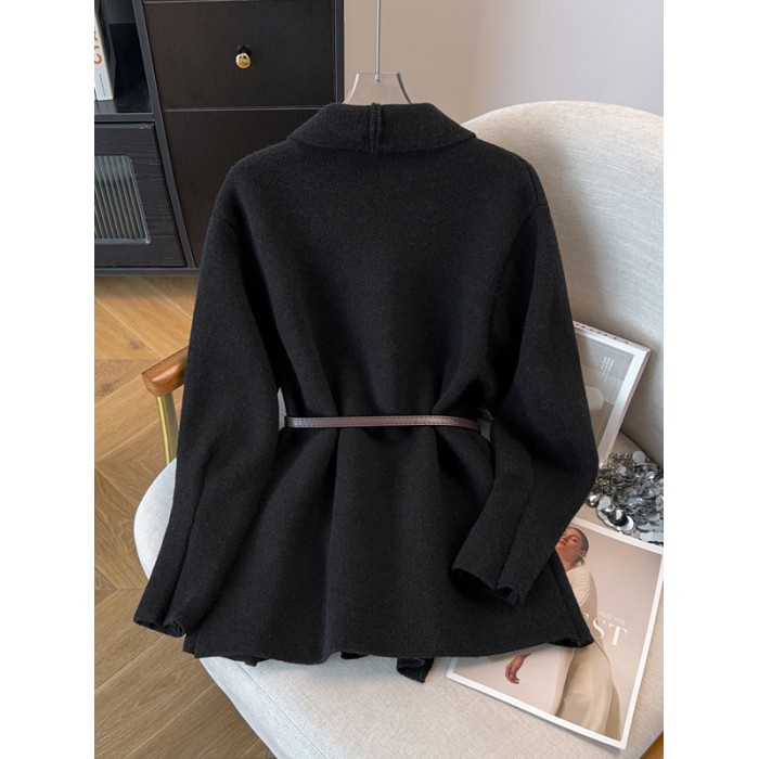 高級感黑色V領針織開衫毛衣外套女早秋裝大碼胖mm中長款收腰上衣