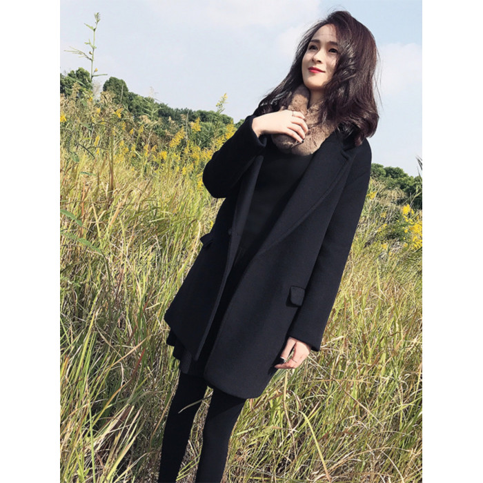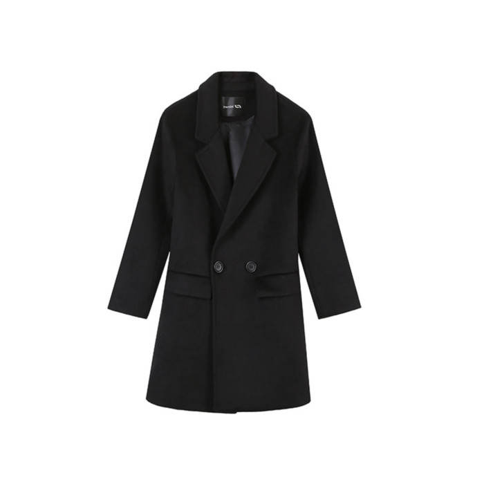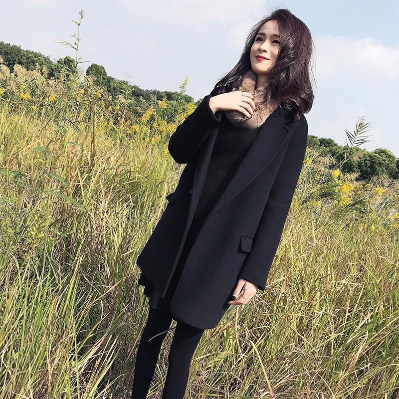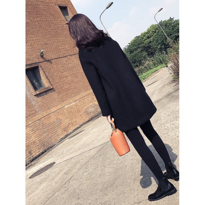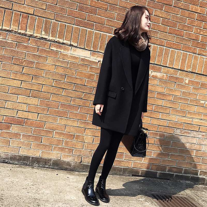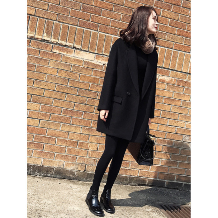 黑色毛呢外套女中長款2025春秋冬季新款小個子高級感呢子大衣夾棉