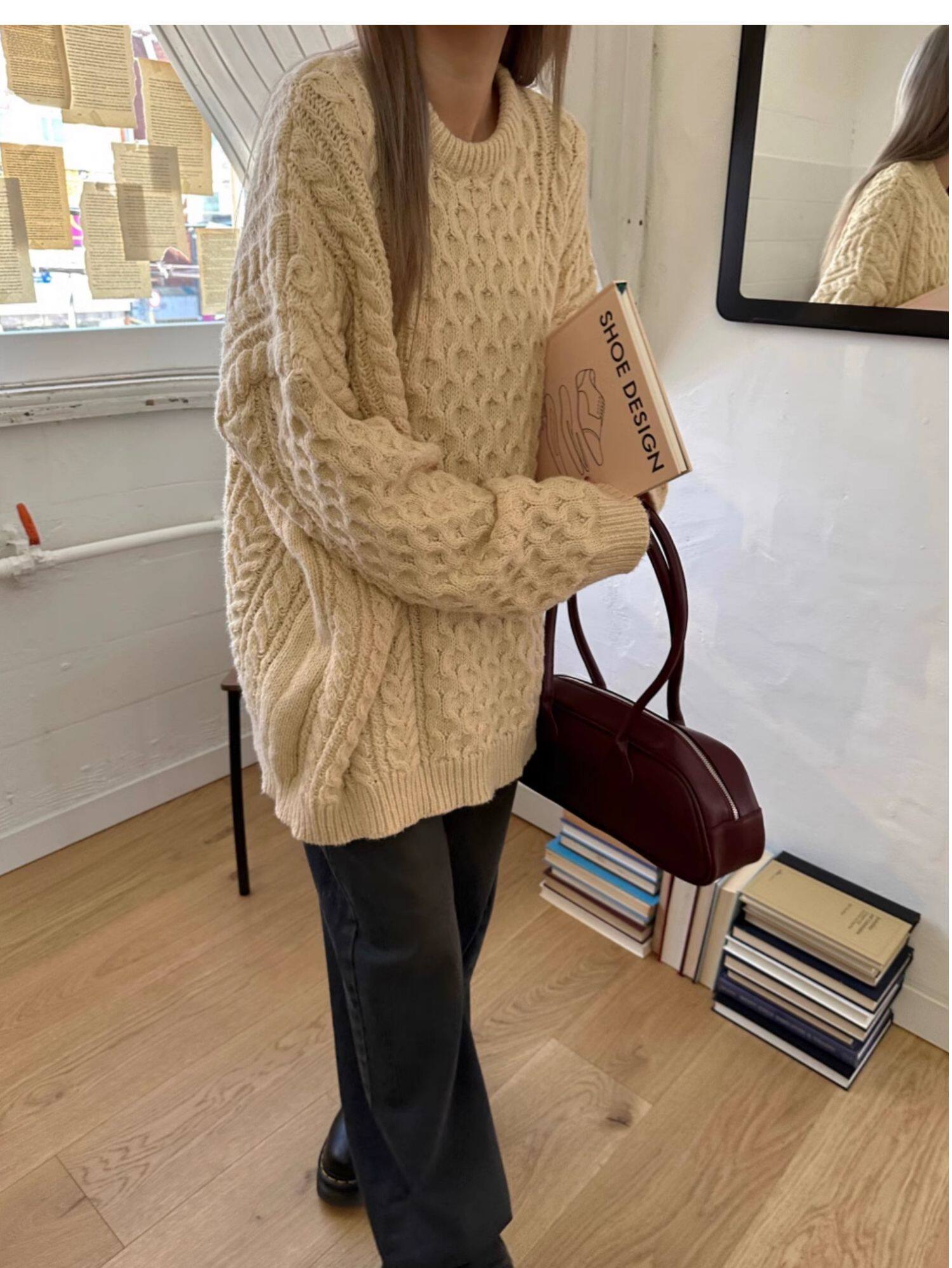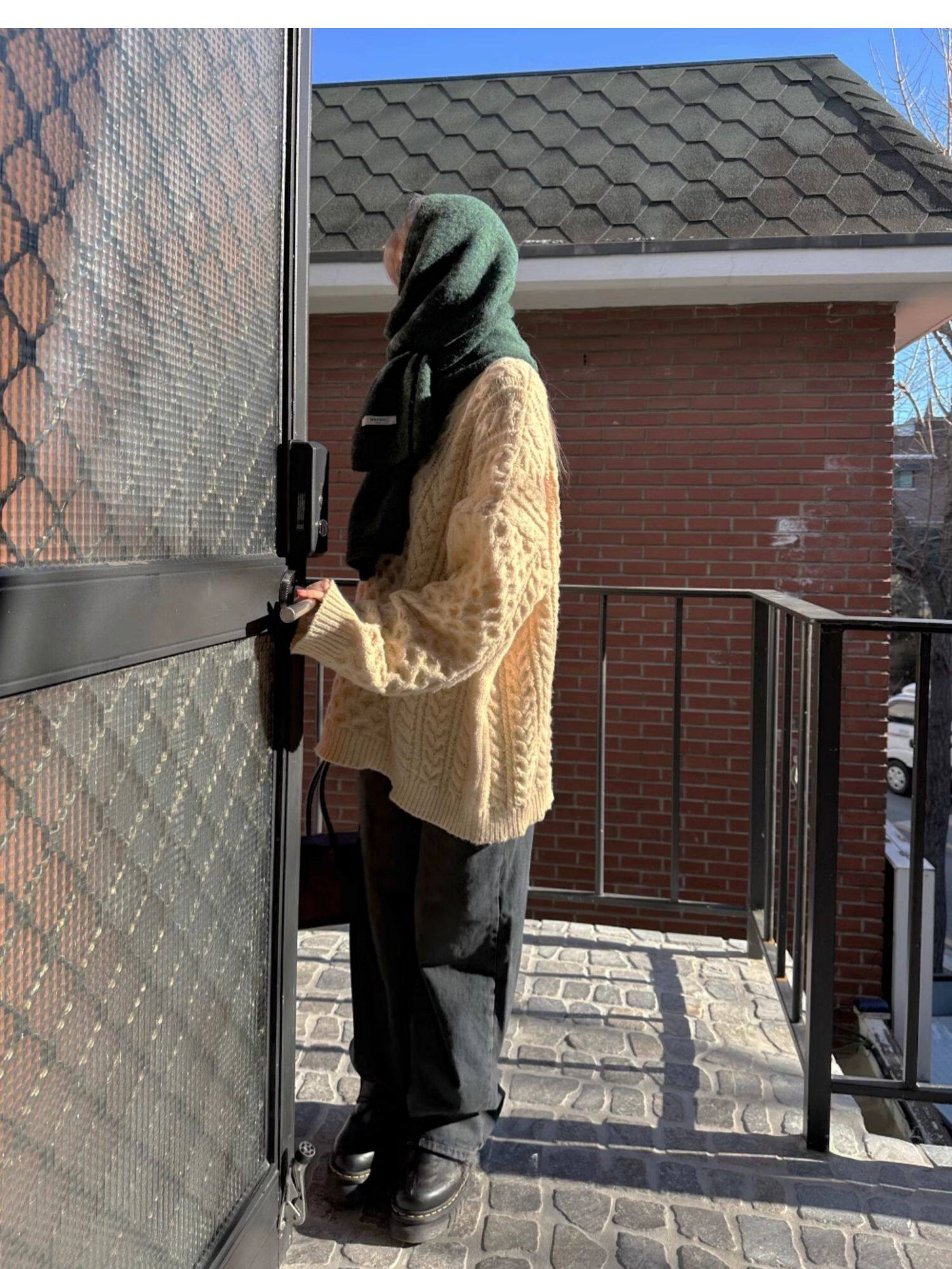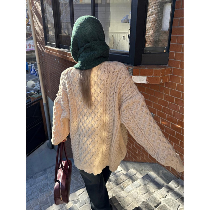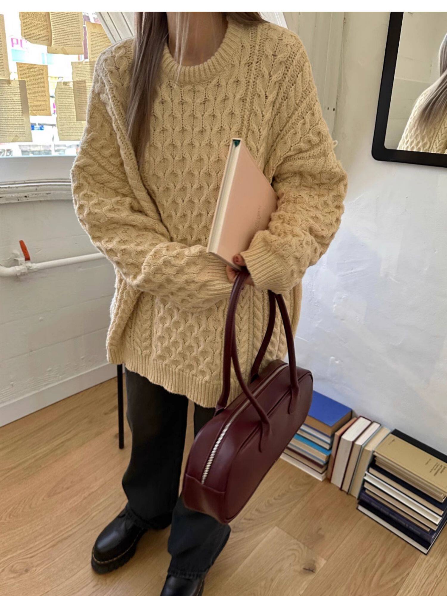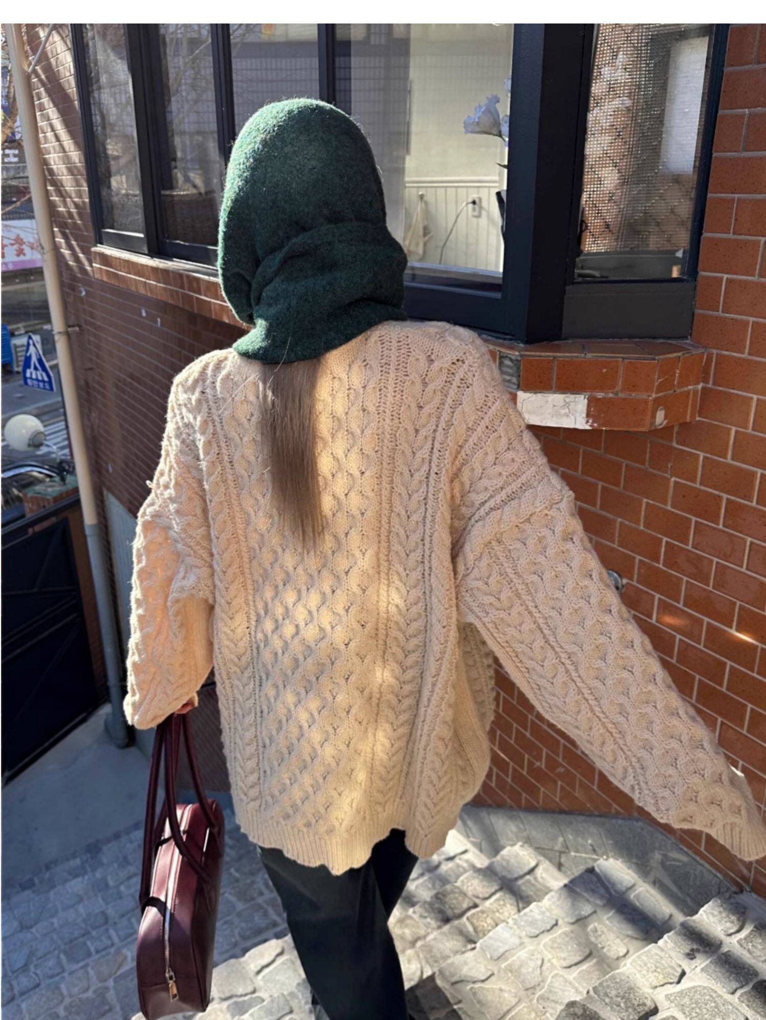 Up and on 街頭韓風復古慵懶落肩寬松OS麻花紋休閒百搭針織衫毛衣