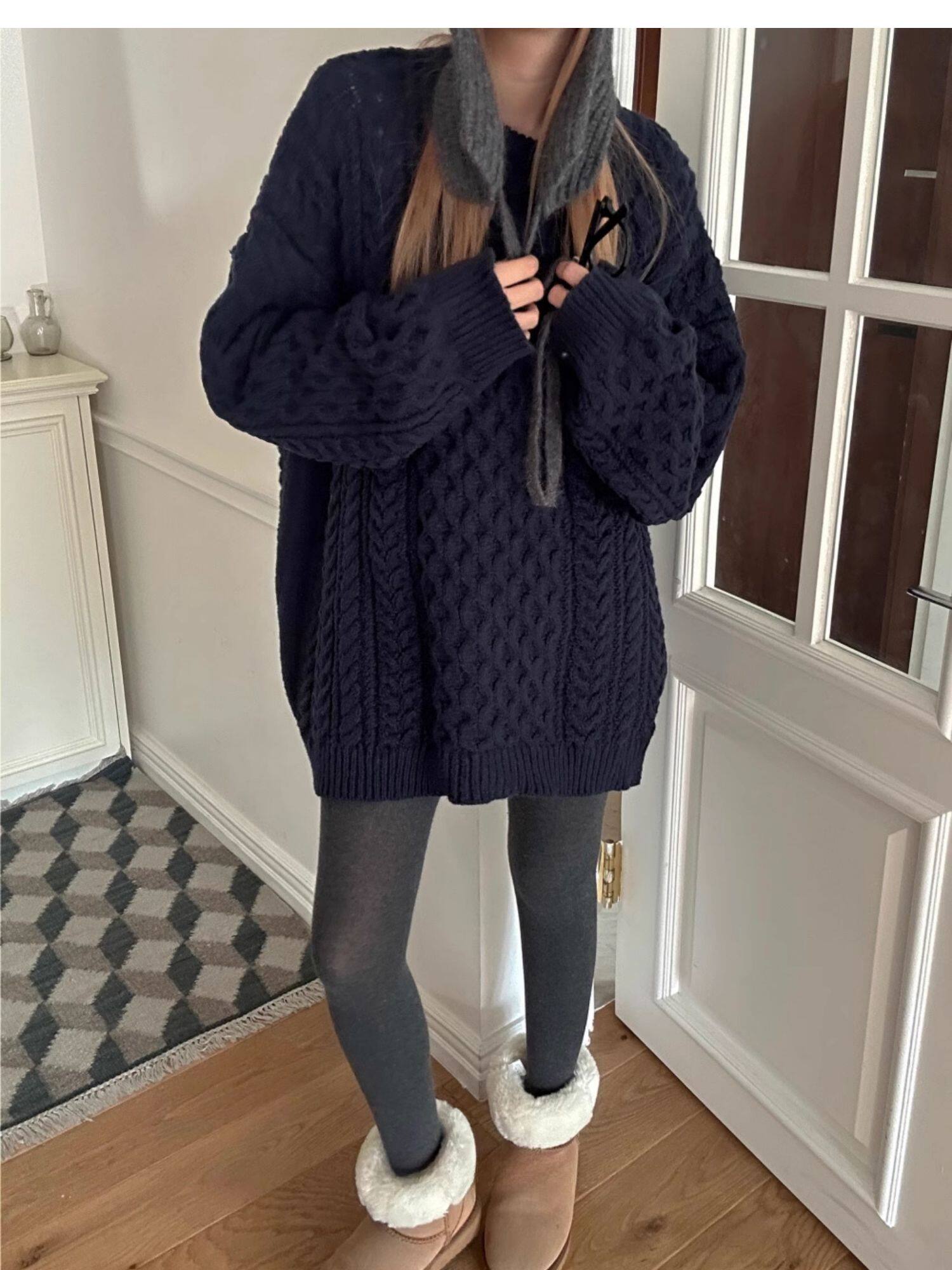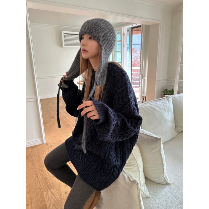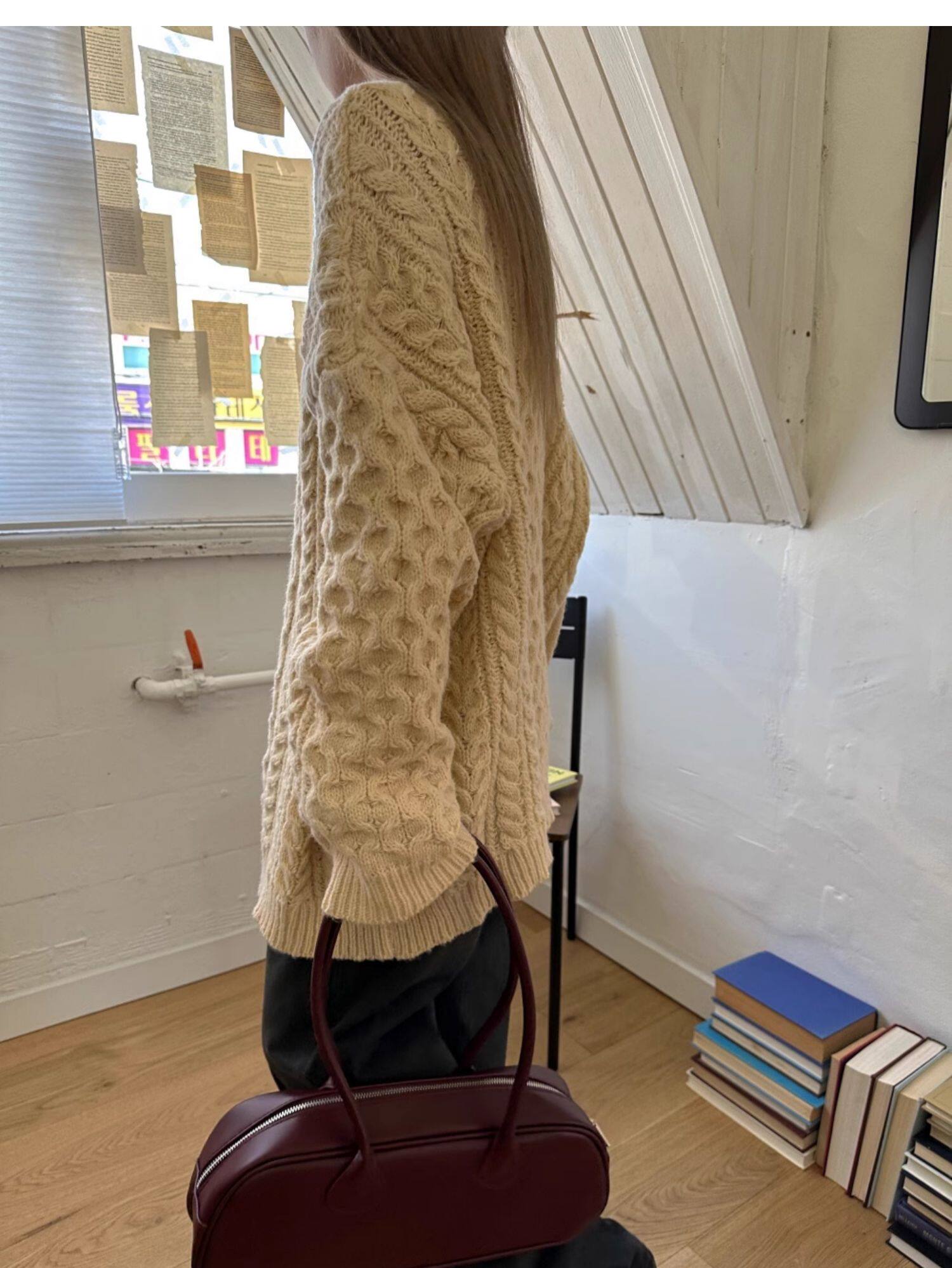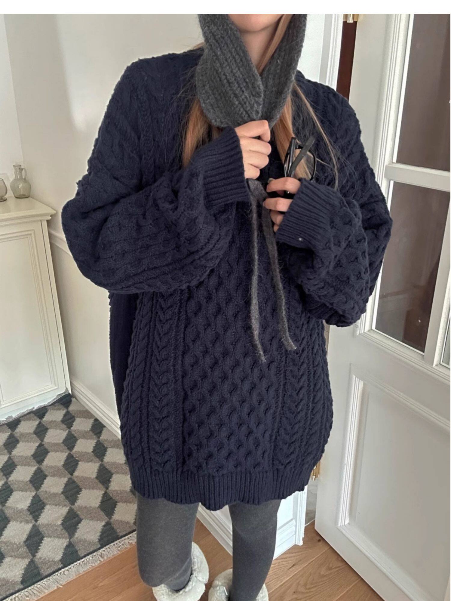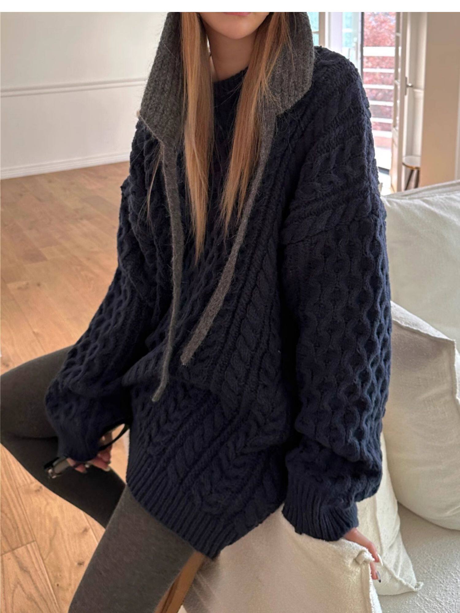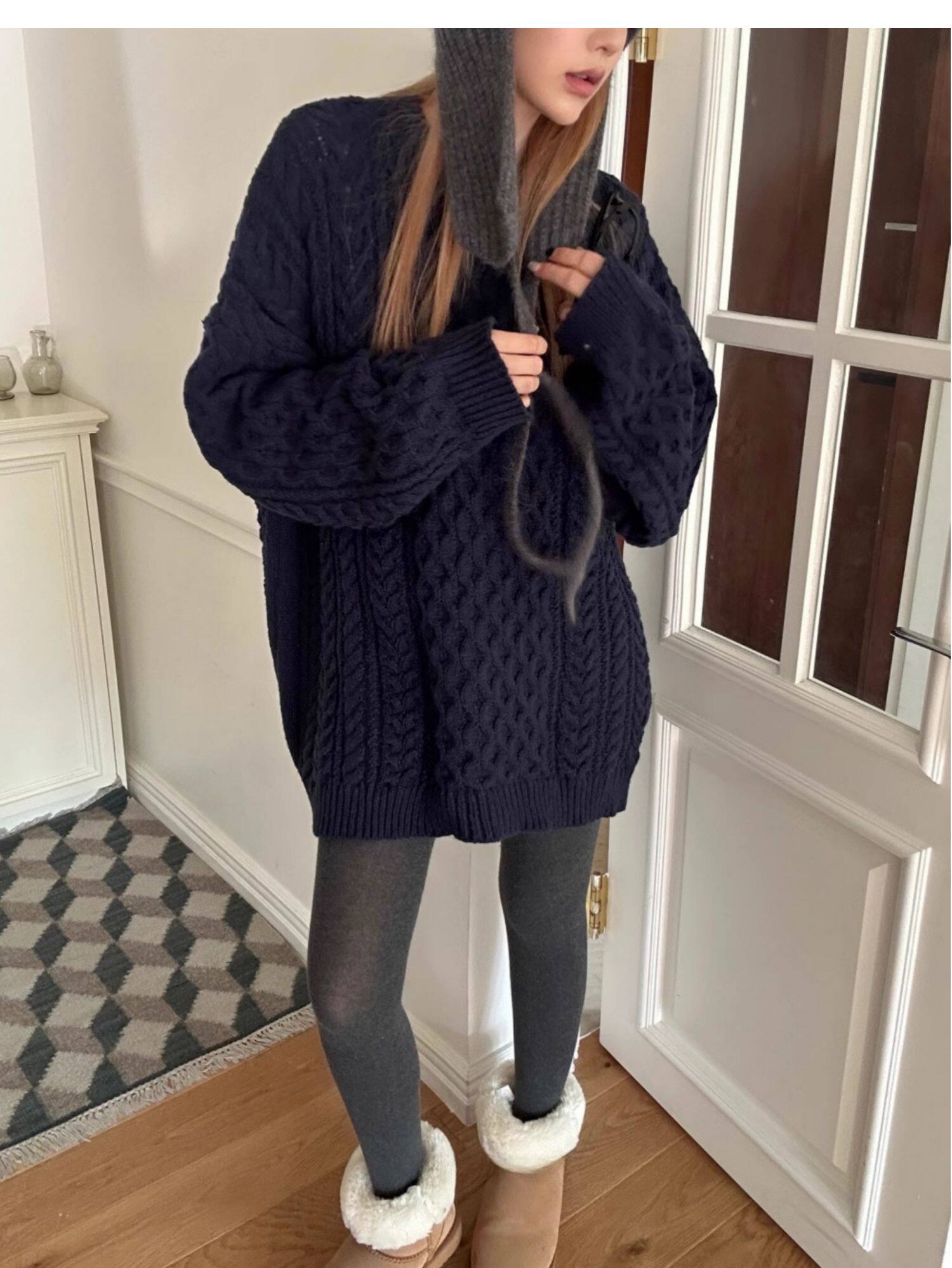 Up and on 街頭韓風復古慵懶落肩寬松OS麻花紋休閒百搭針織衫毛衣