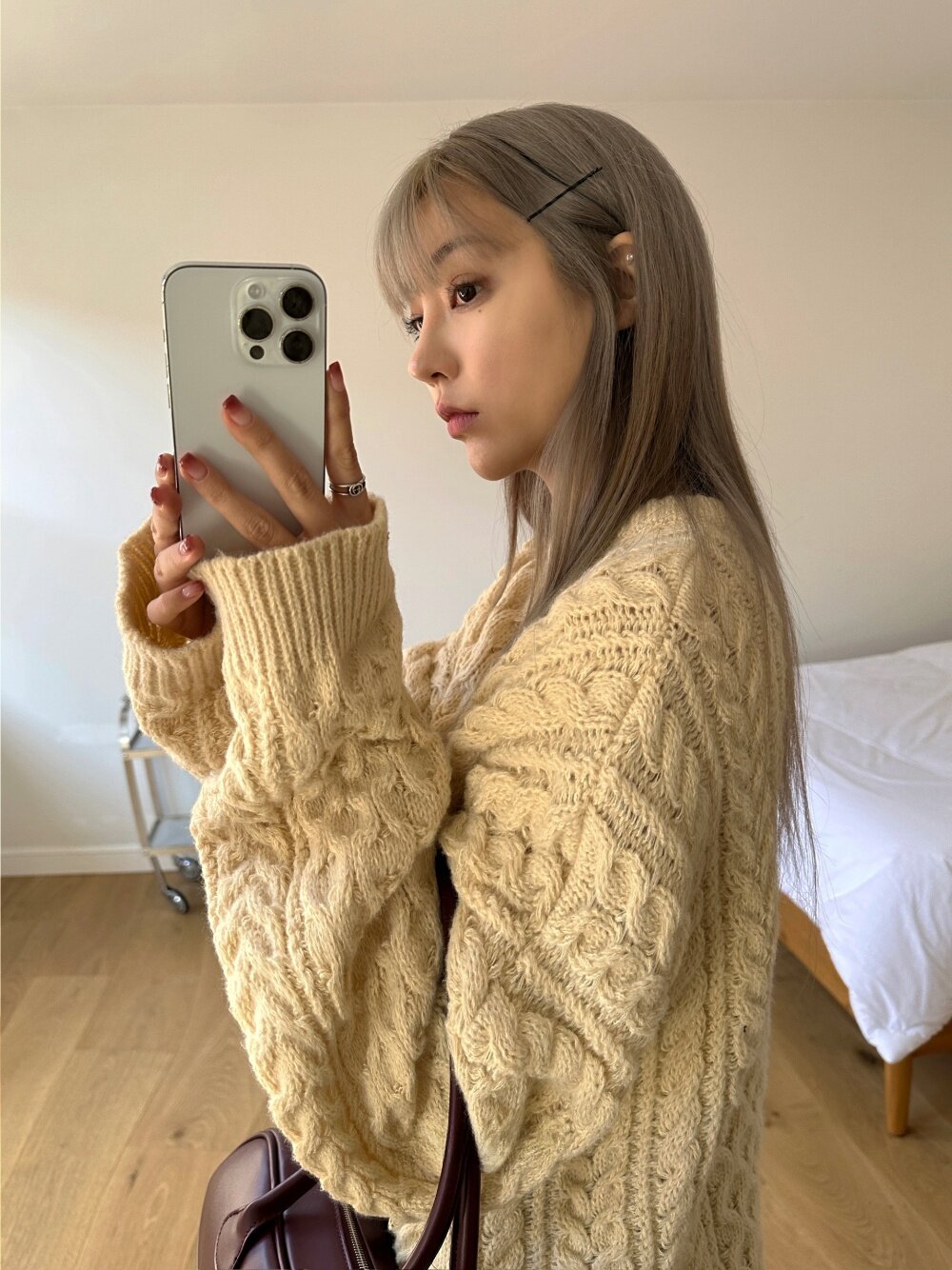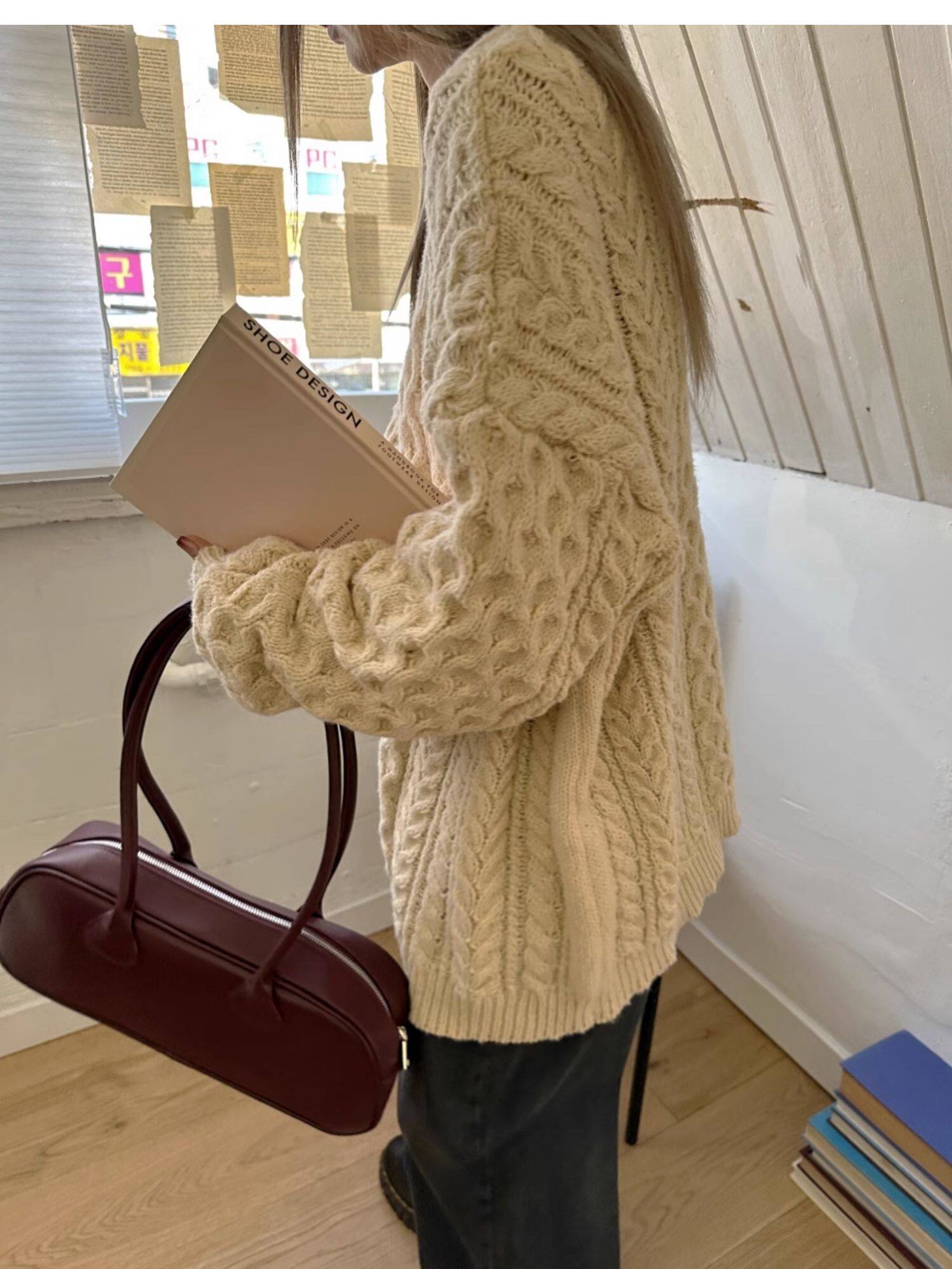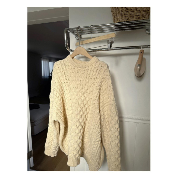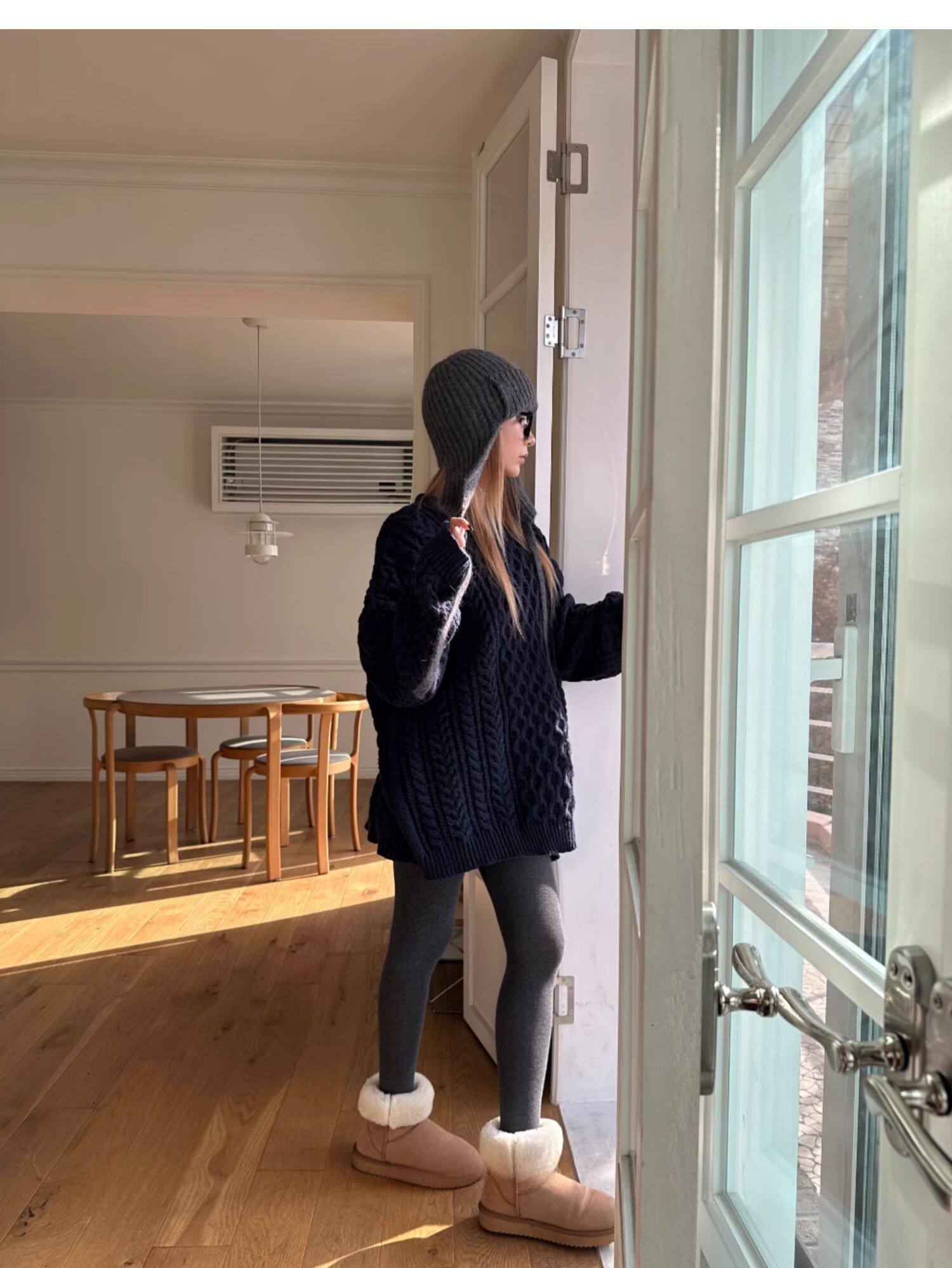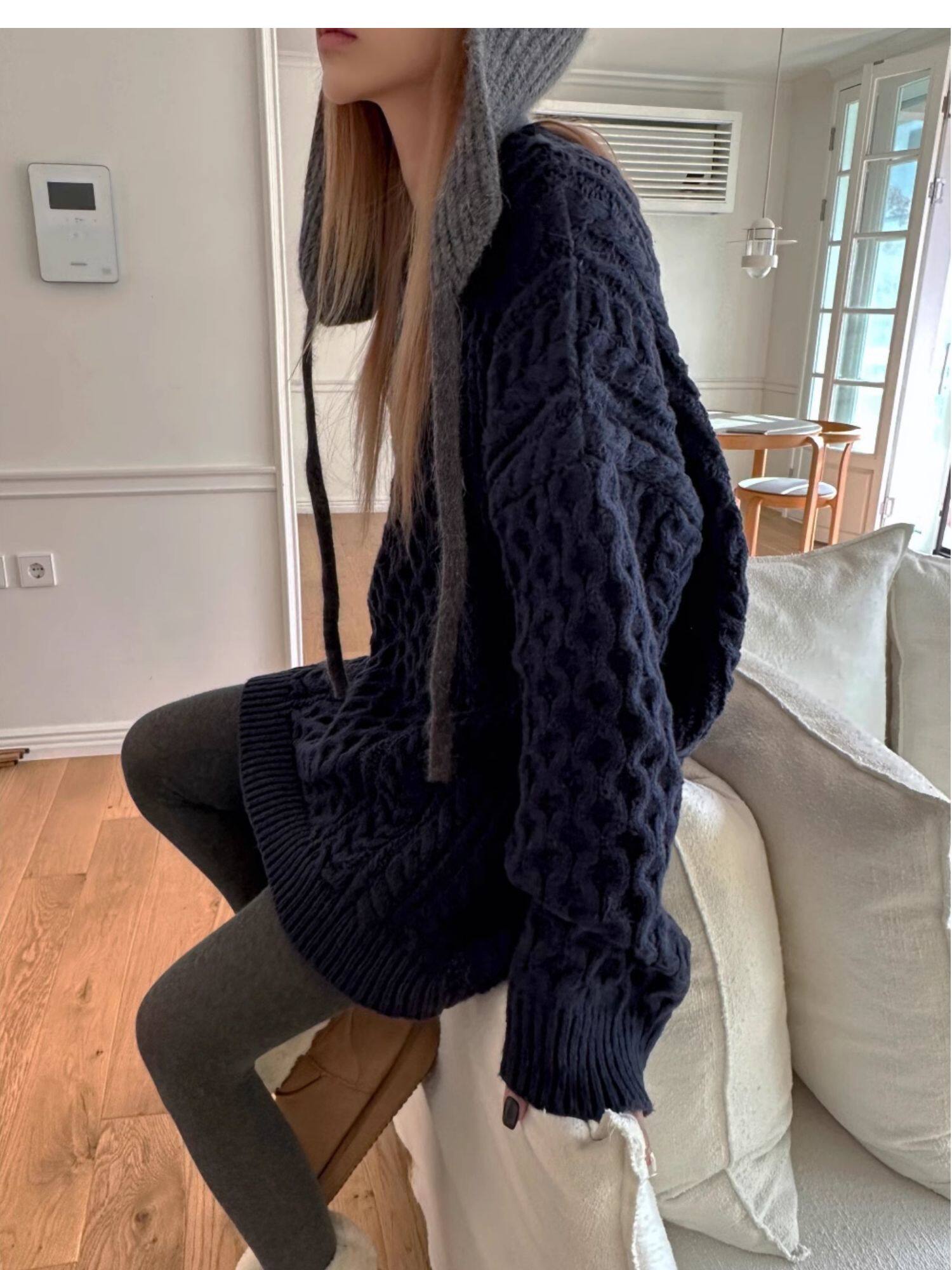 Up and on 街頭韓風復古慵懶落肩寬松OS麻花紋休閒百搭針織衫毛衣