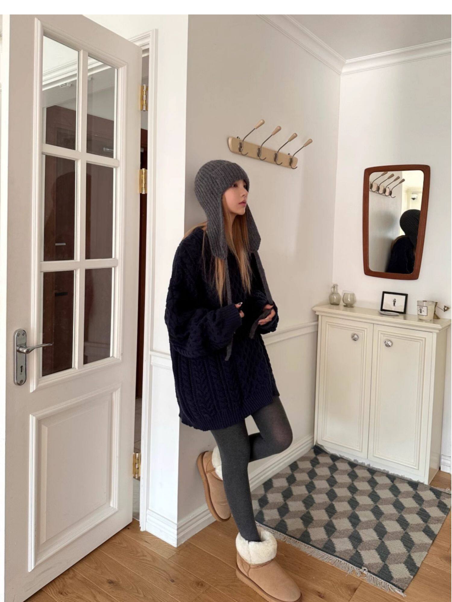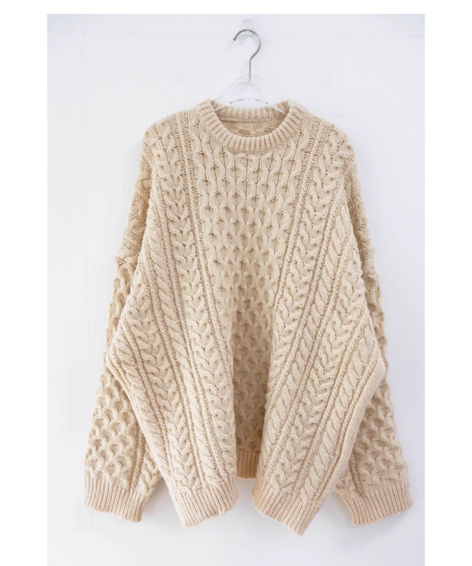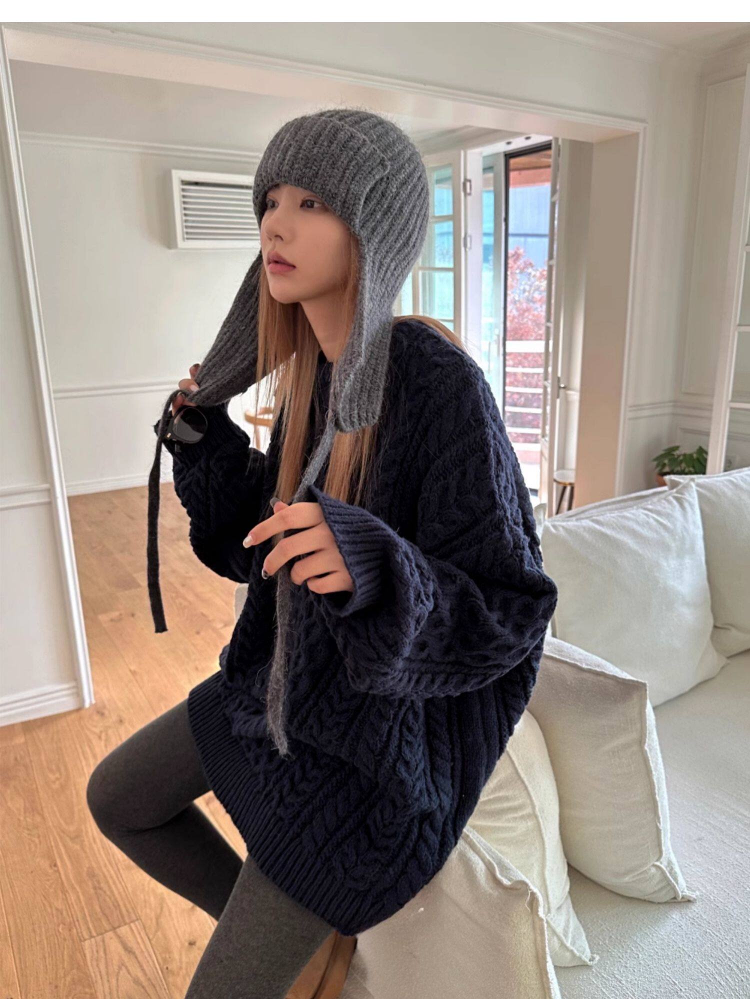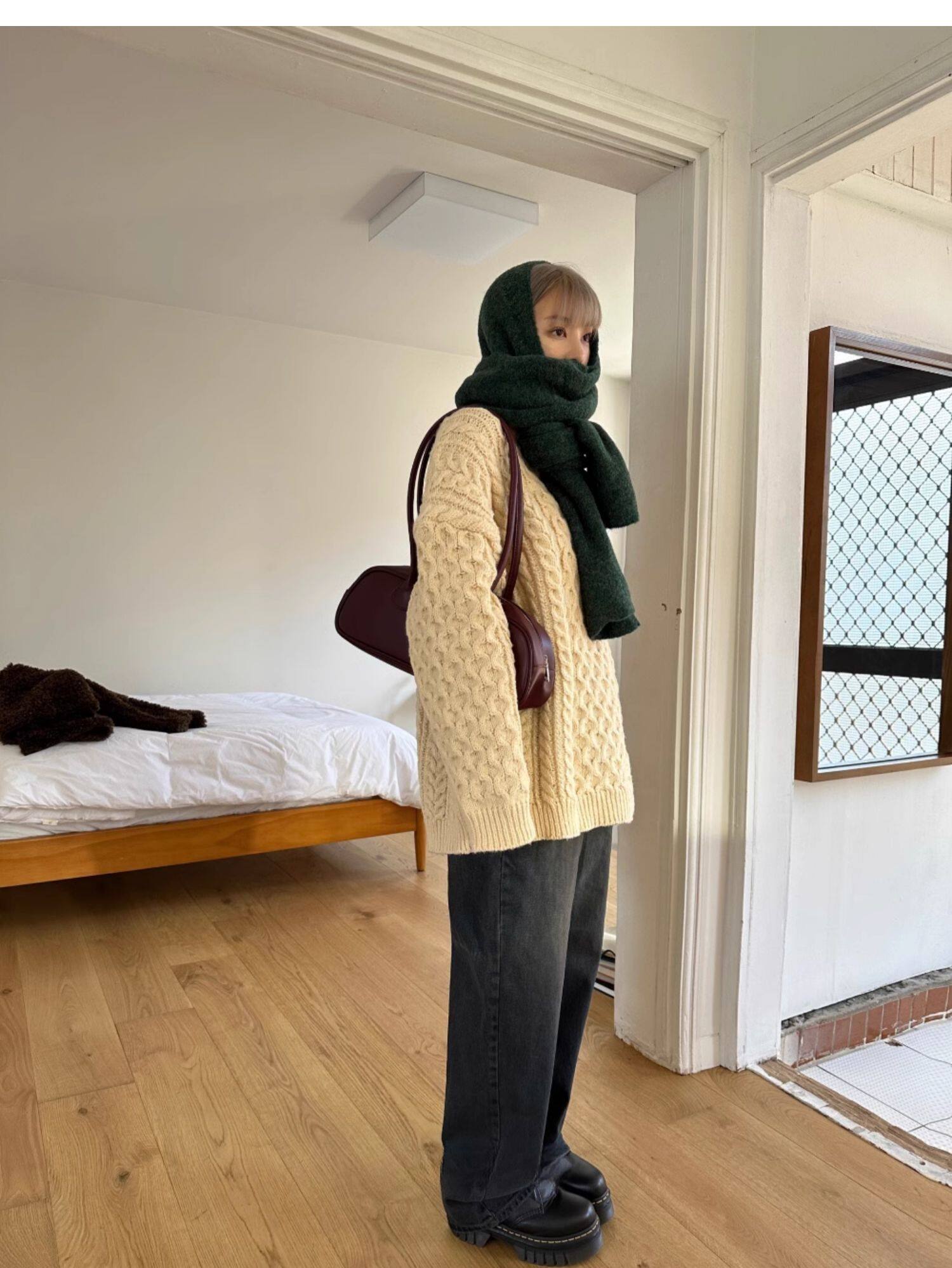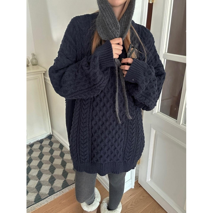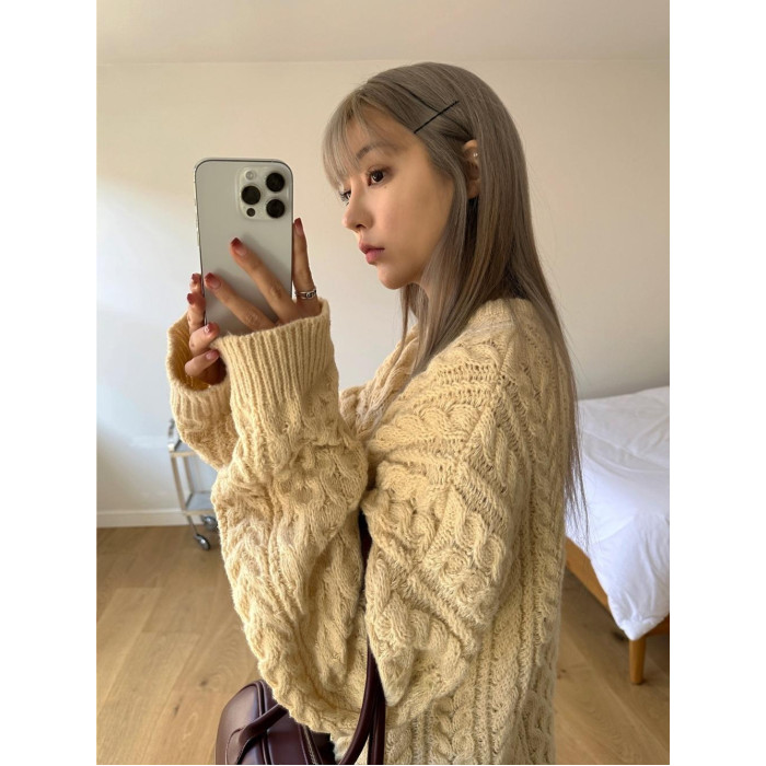 Up and on 街頭韓風復古慵懶落肩寬松OS麻花紋休閒百搭針織衫毛衣
