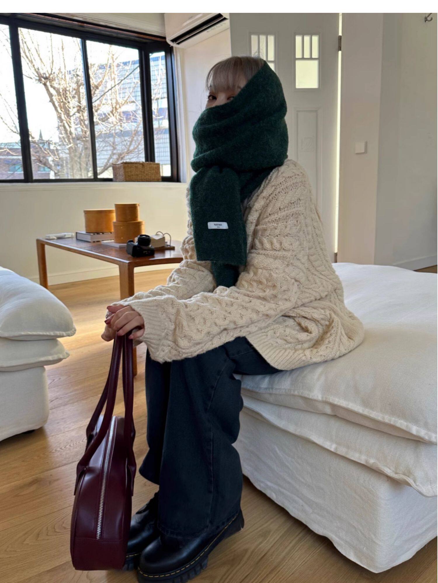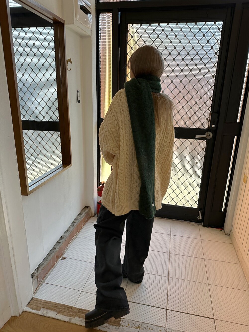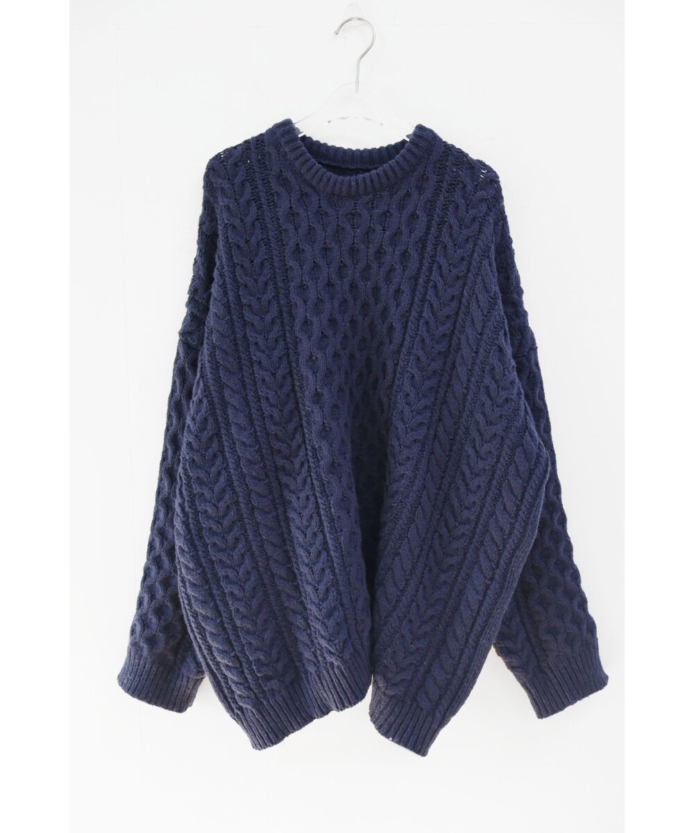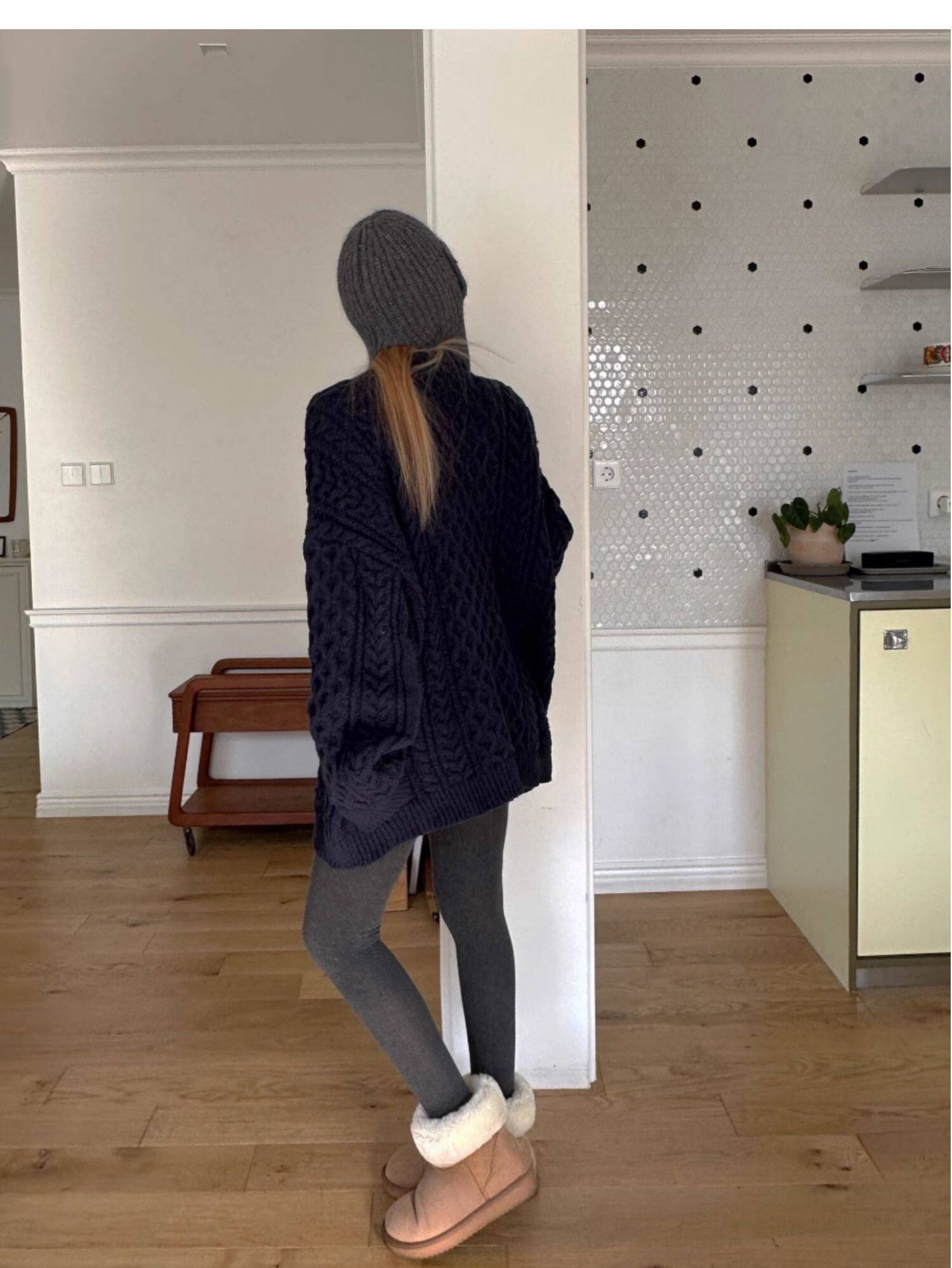 Up and on 街頭韓風復古慵懶落肩寬松OS麻花紋休閒百搭針織衫毛衣