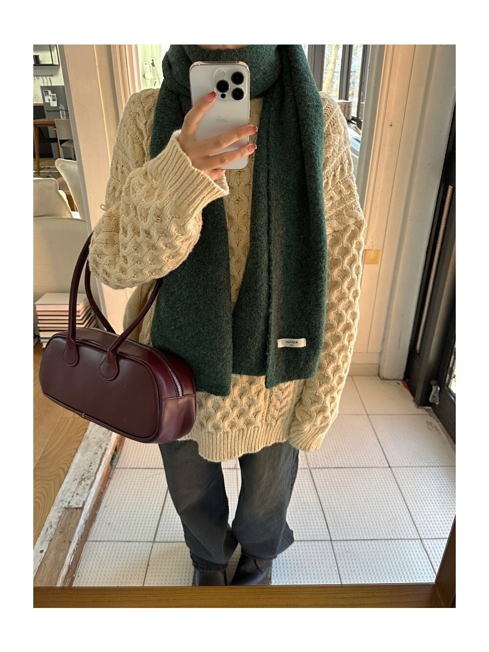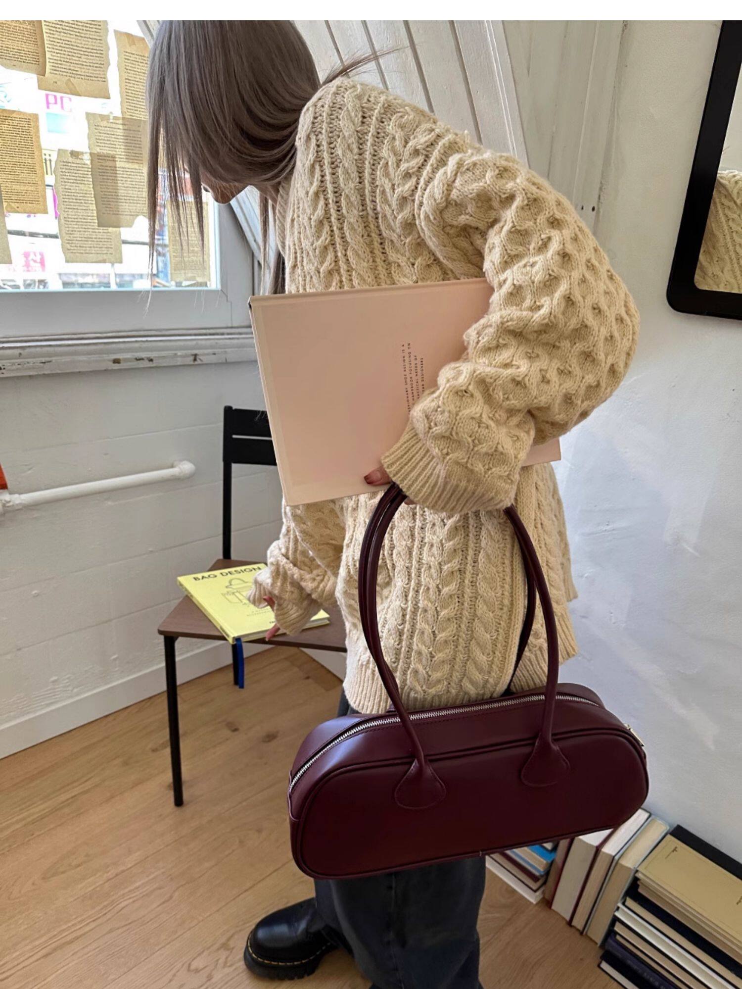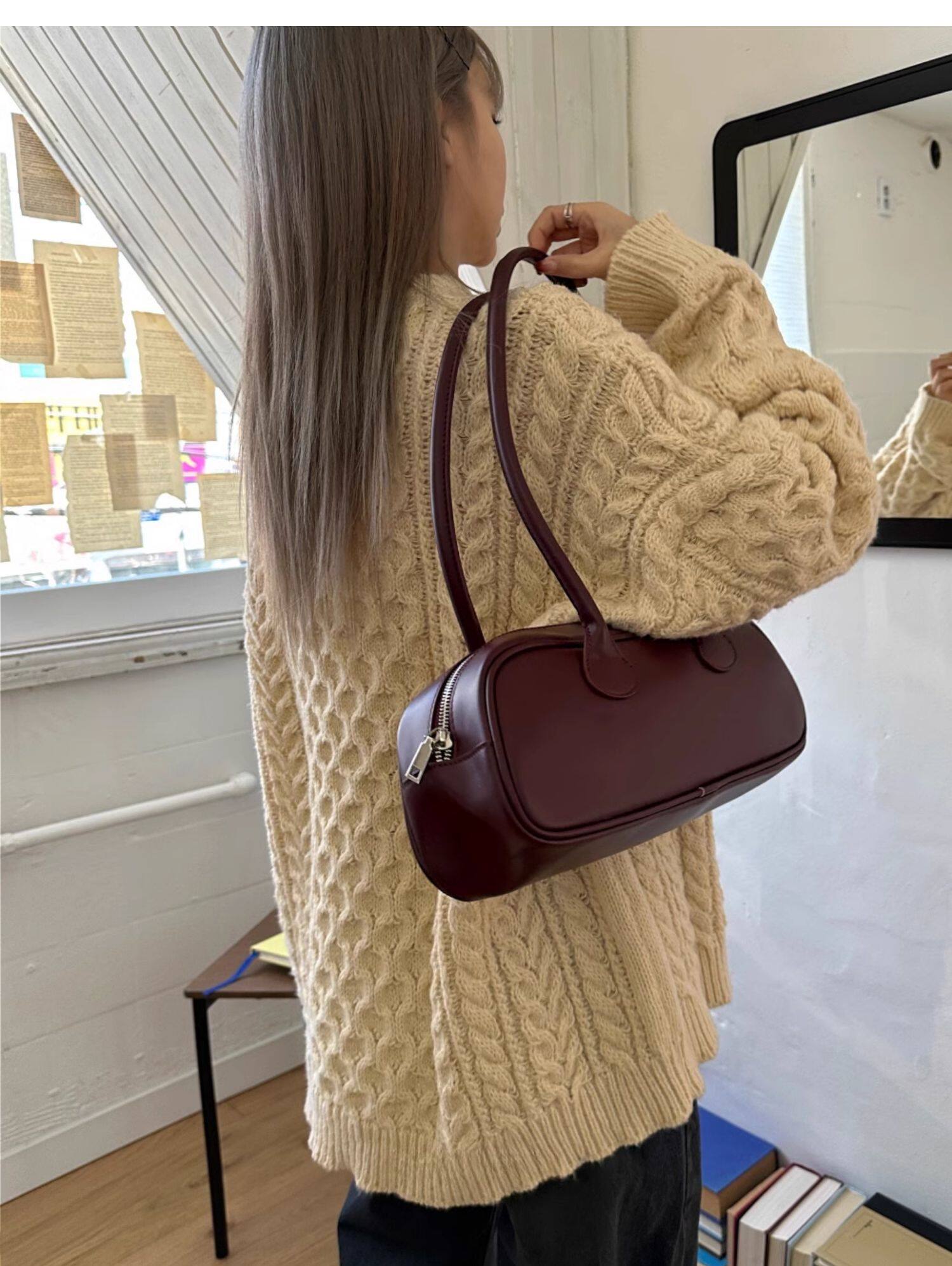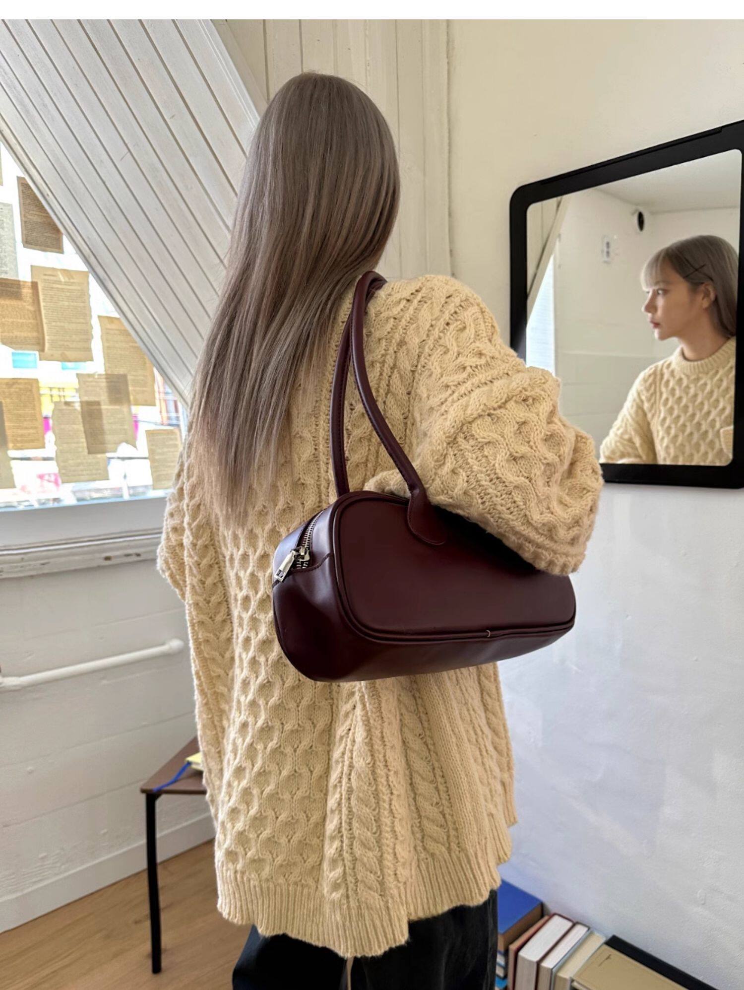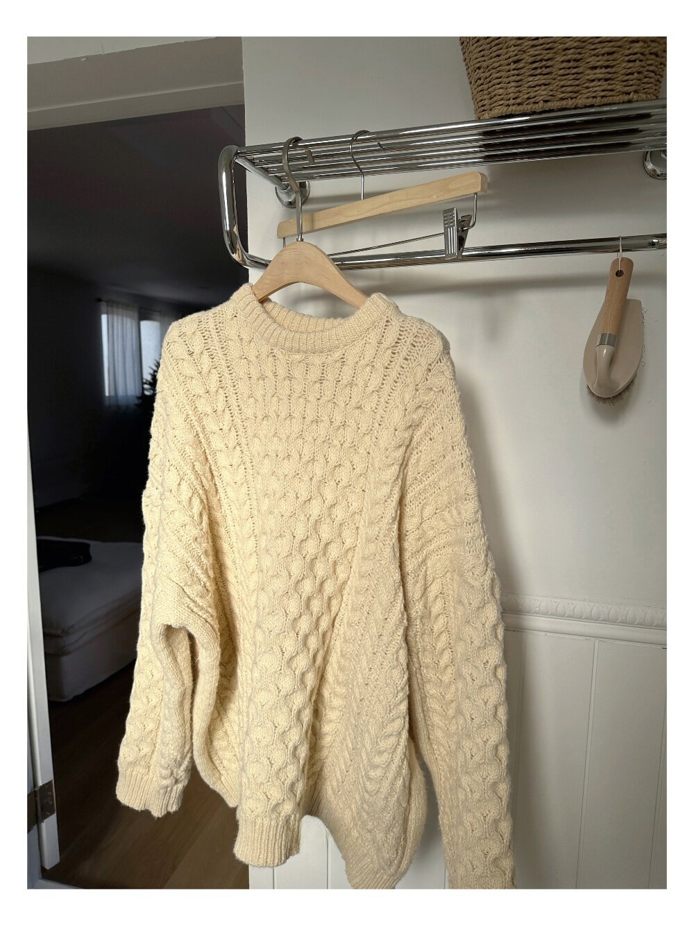 Up and on 街頭韓風復古慵懶落肩寬松OS麻花紋休閒百搭針織衫毛衣