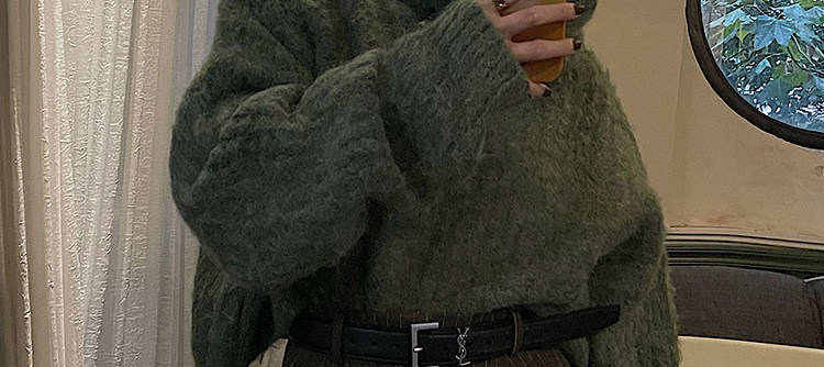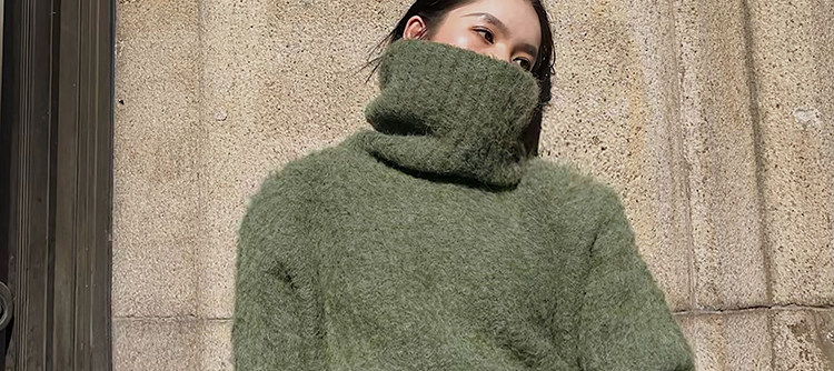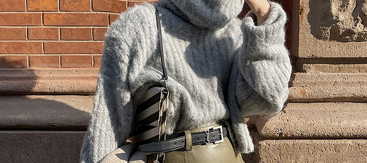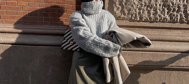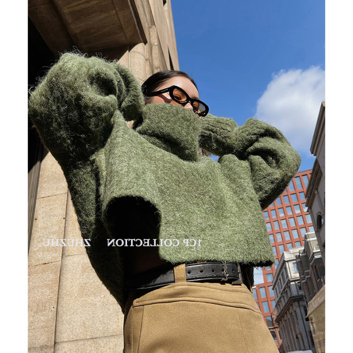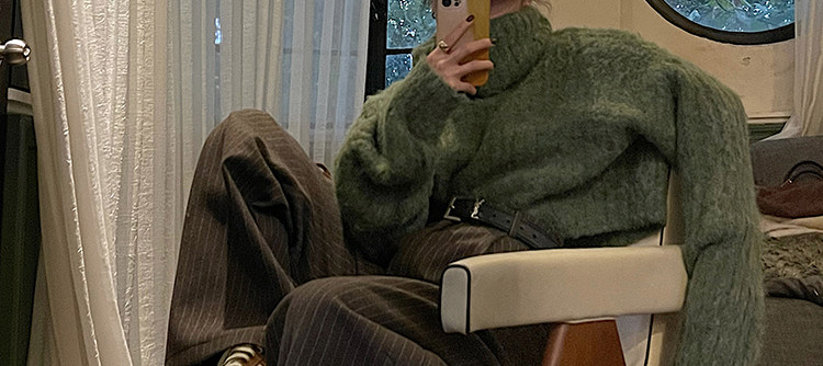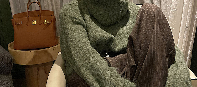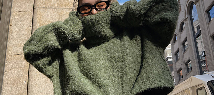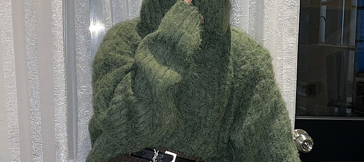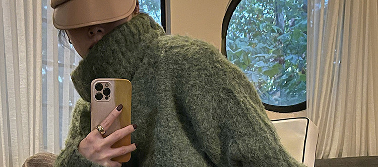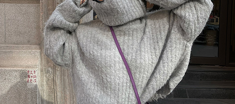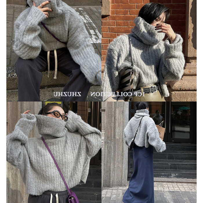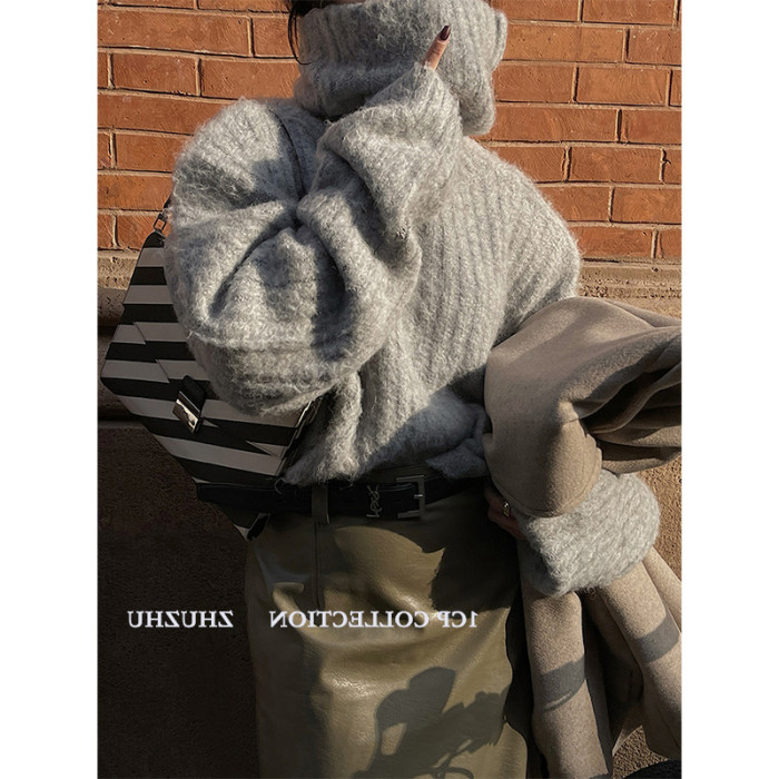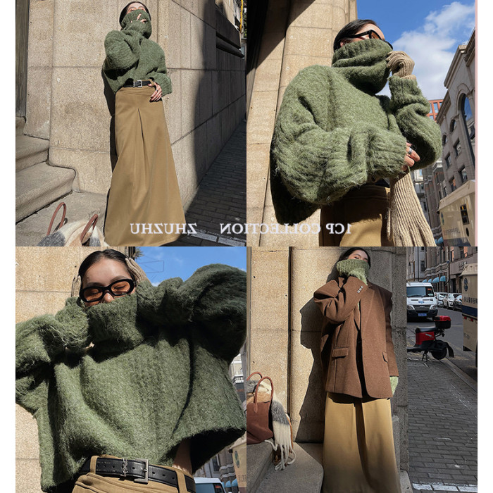 秋冬新款簡約針織羊駝毛堆堆領廓形慵懶風寬松保暖高領毛衣外套女