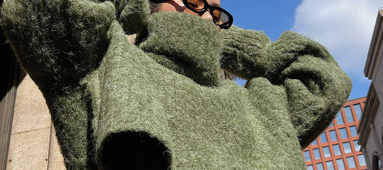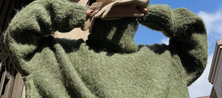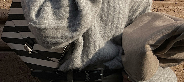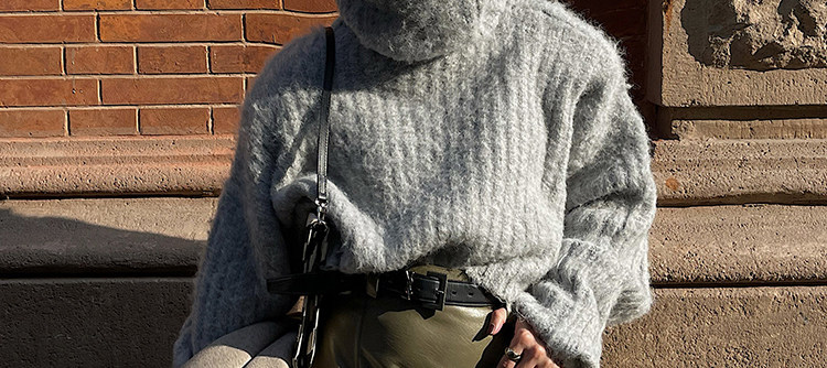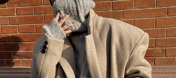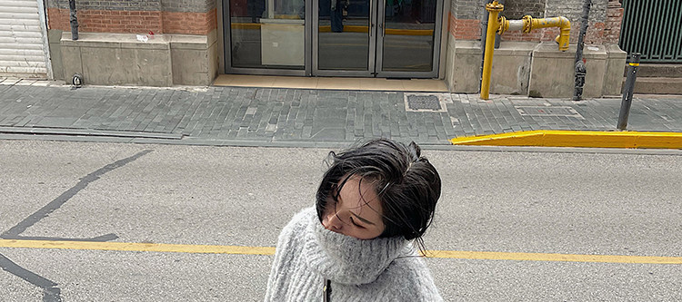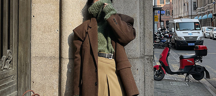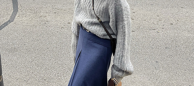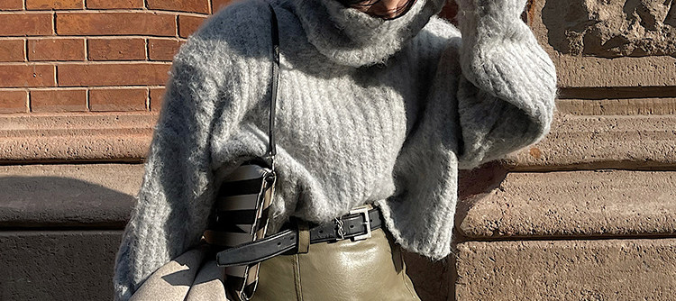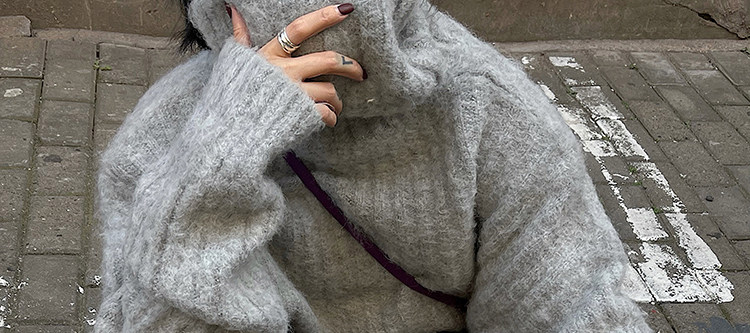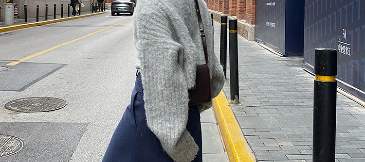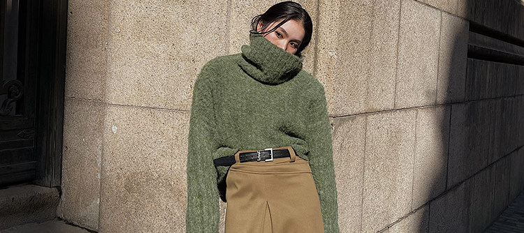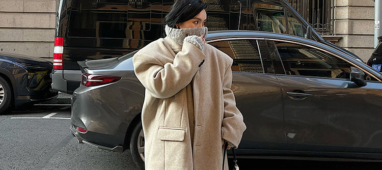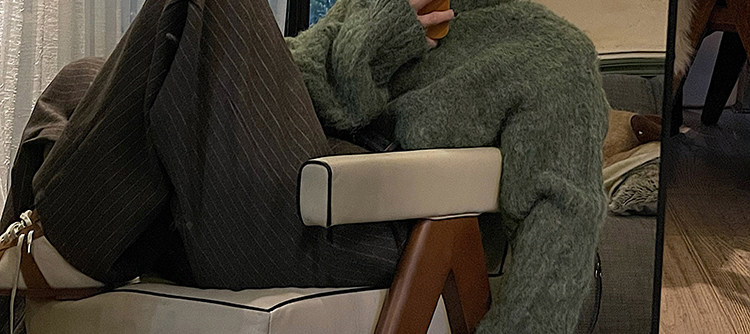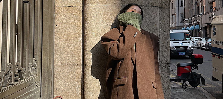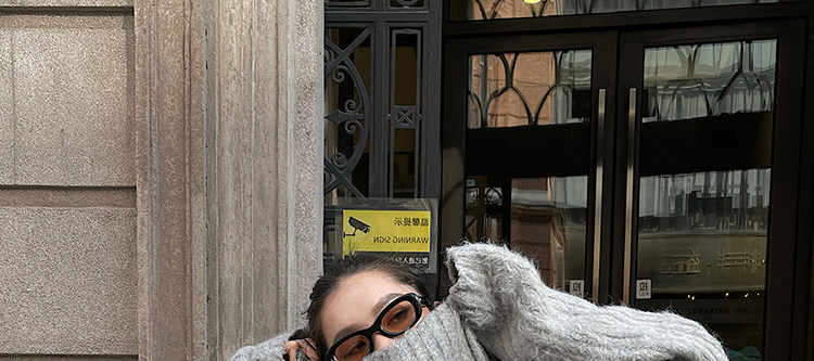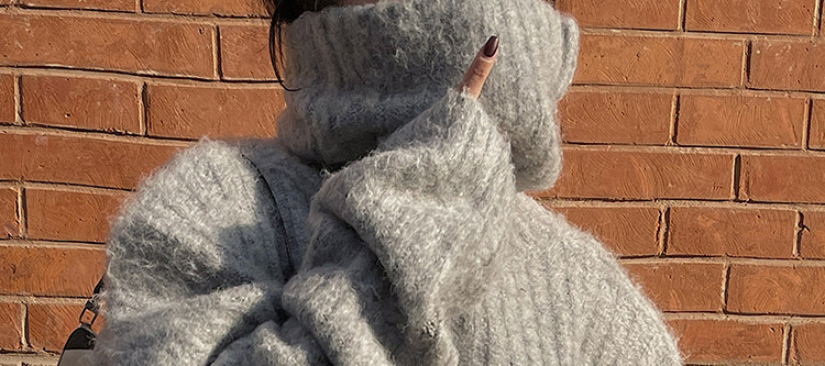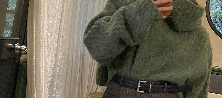 秋冬新款簡約針織羊駝毛堆堆領廓形慵懶風寬松保暖高領毛衣外套女