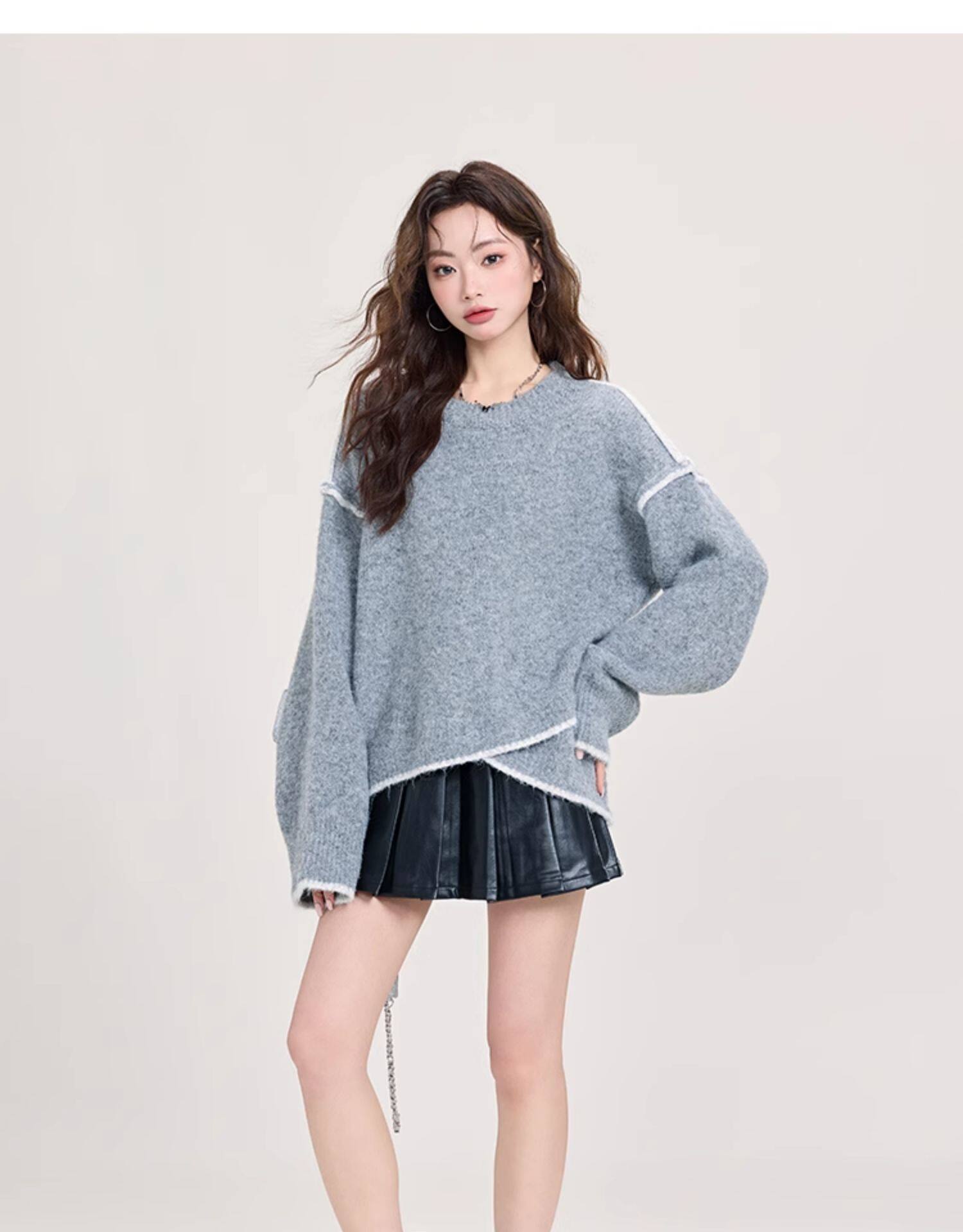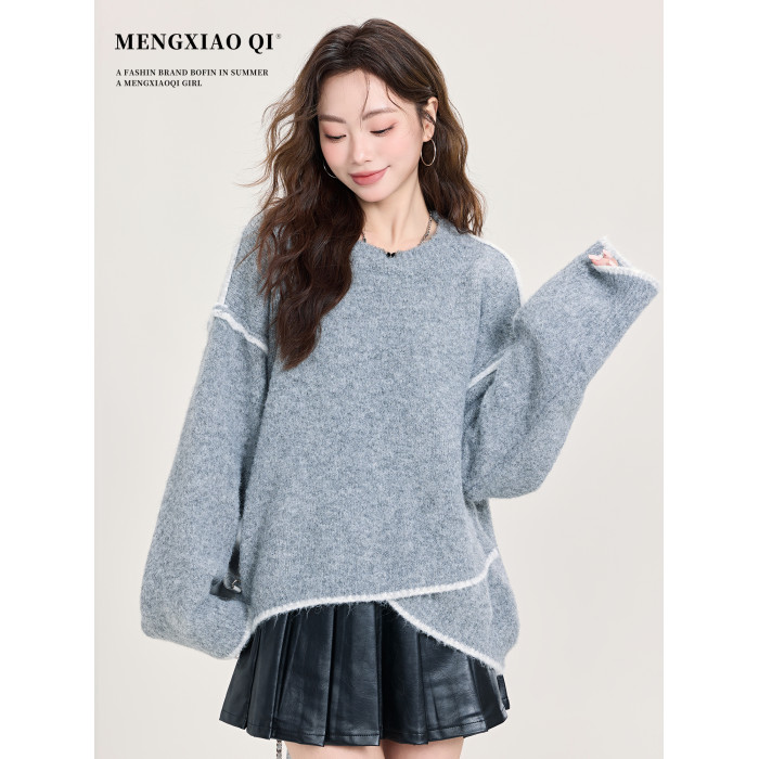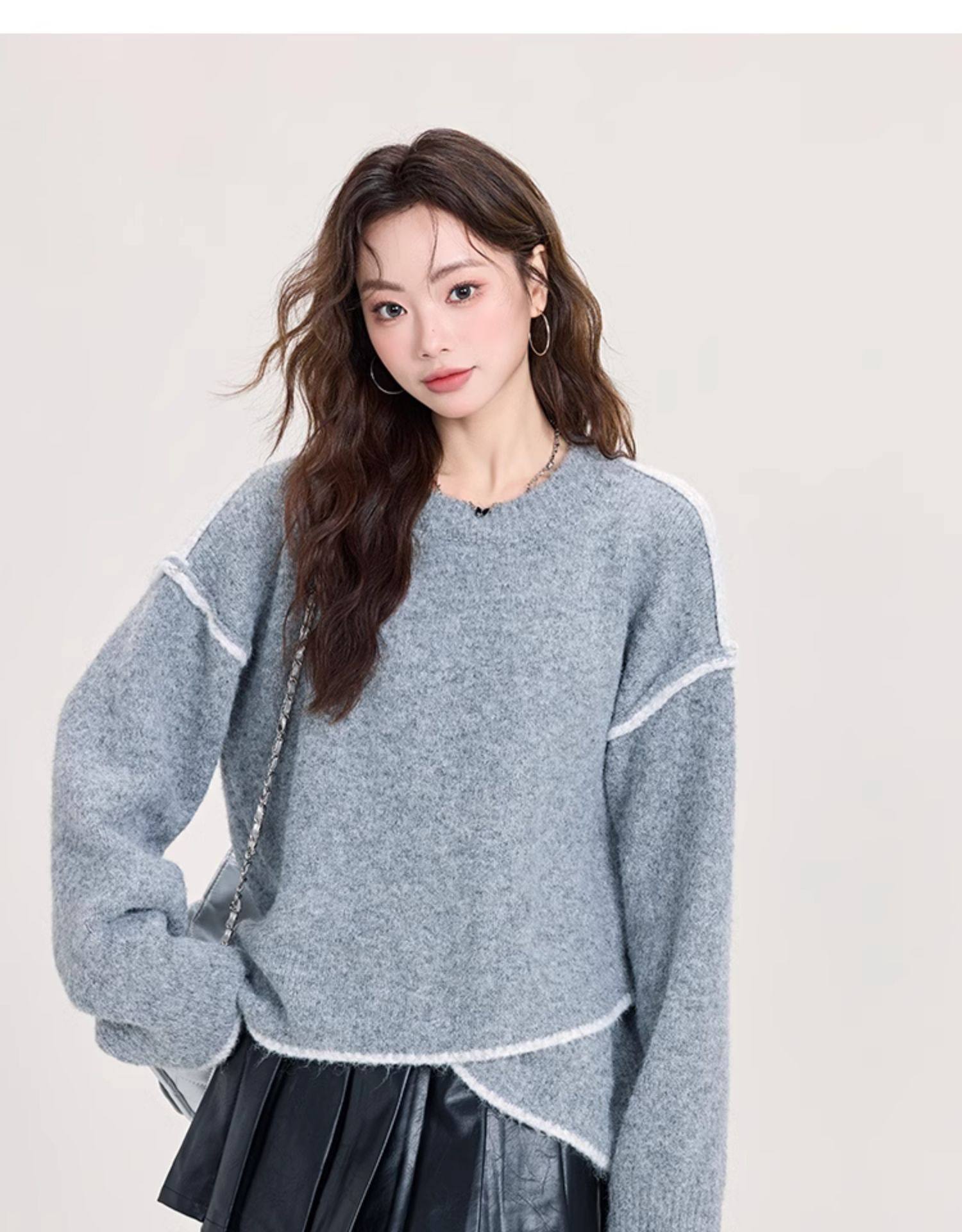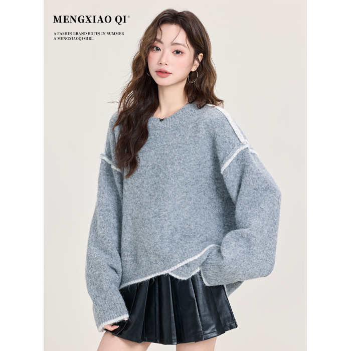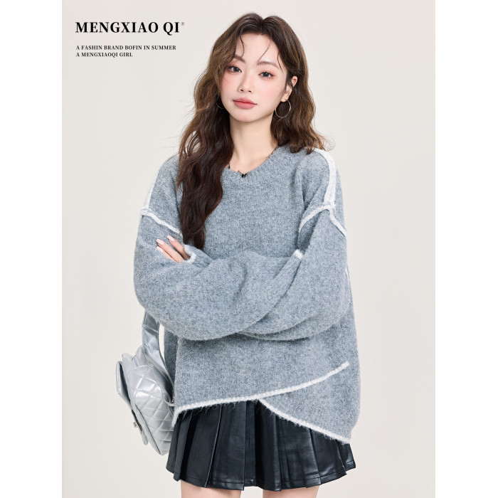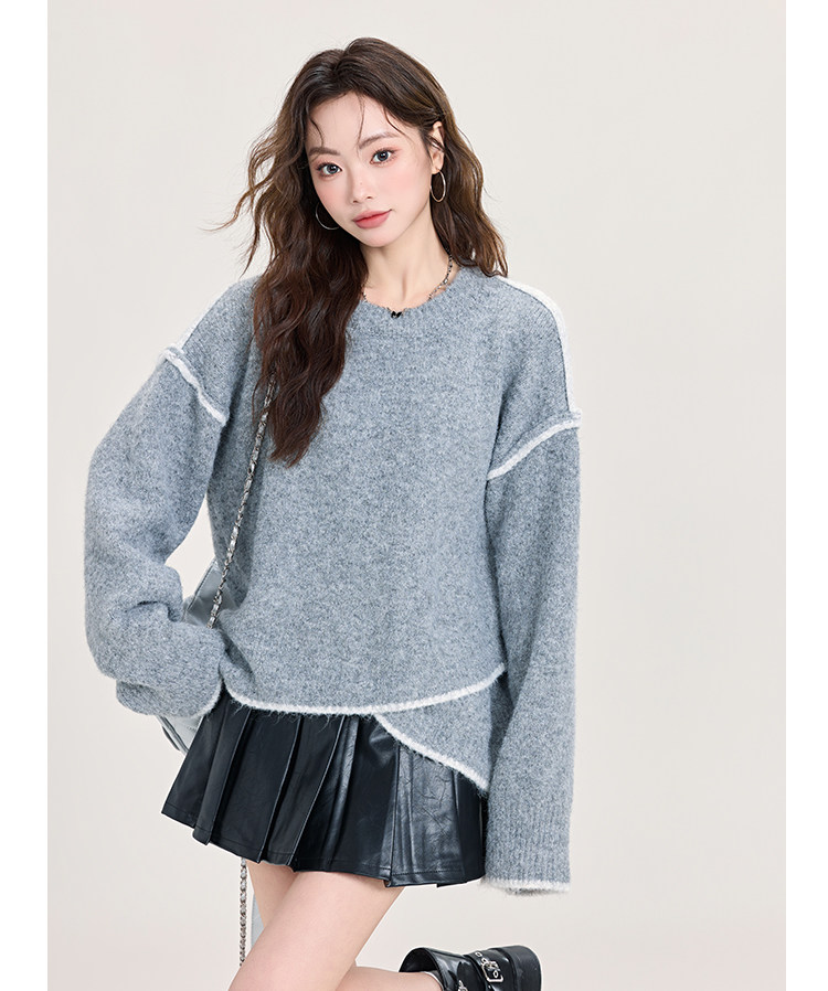 矇小柒慵懶風寬松灰色加厚毛衣女2025新款秋冬不規則針織內搭上衣