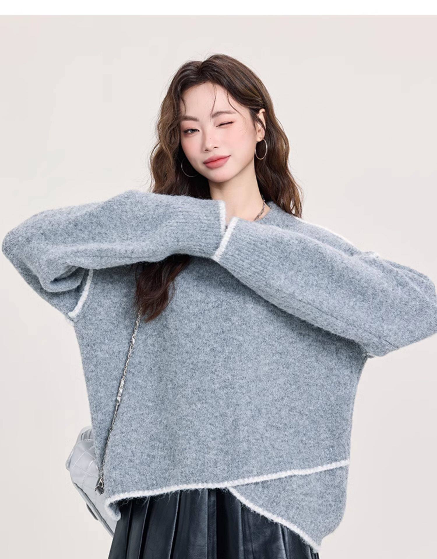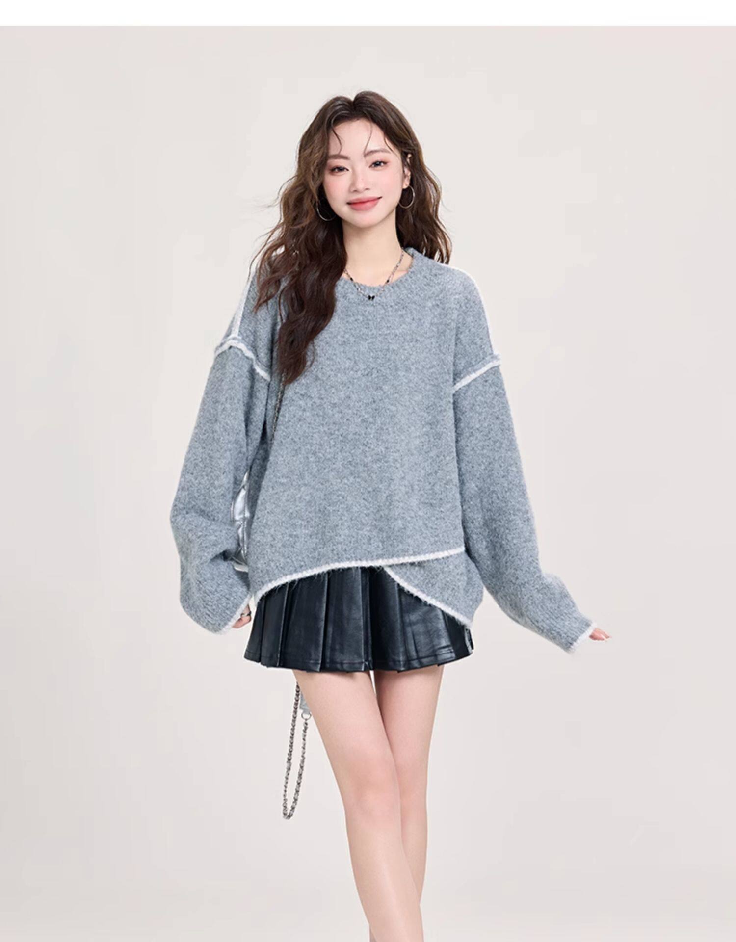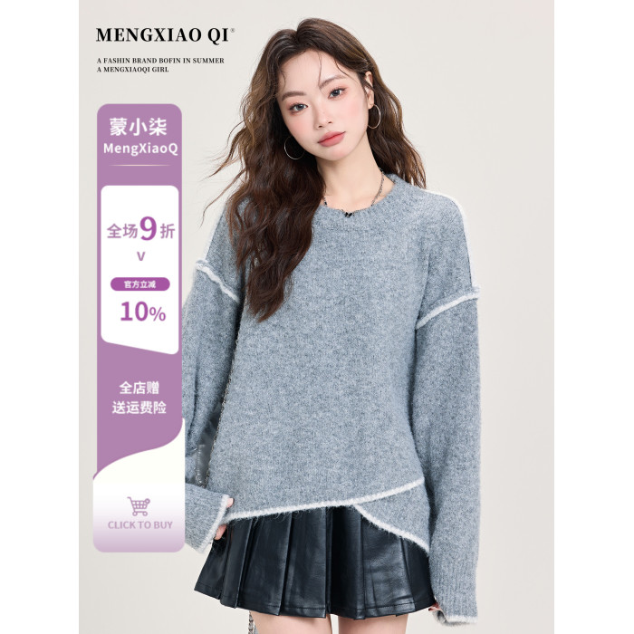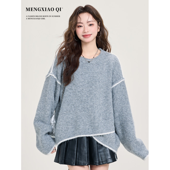 矇小柒慵懶風寬松灰色加厚毛衣女2025新款秋冬不規則針織內搭上衣
