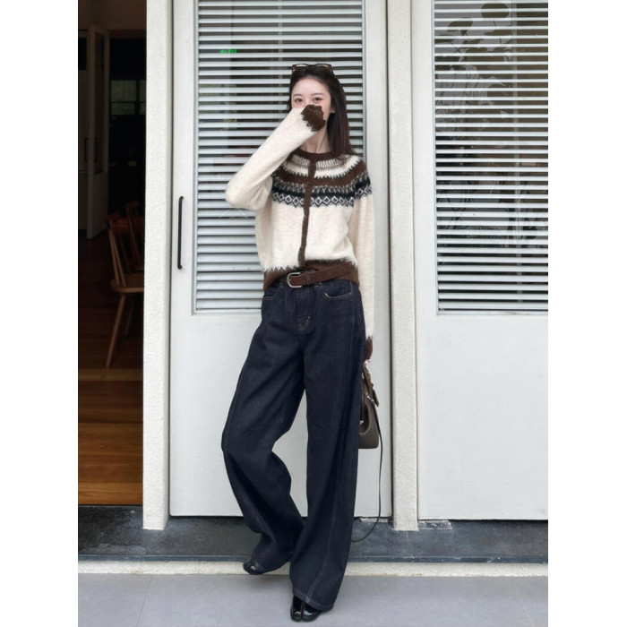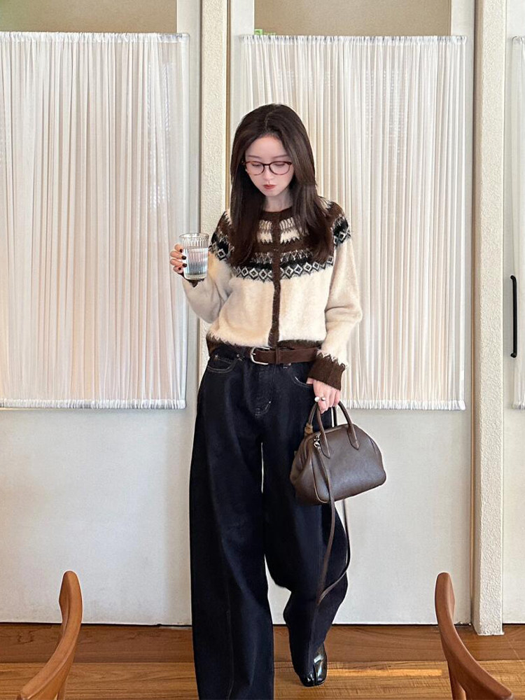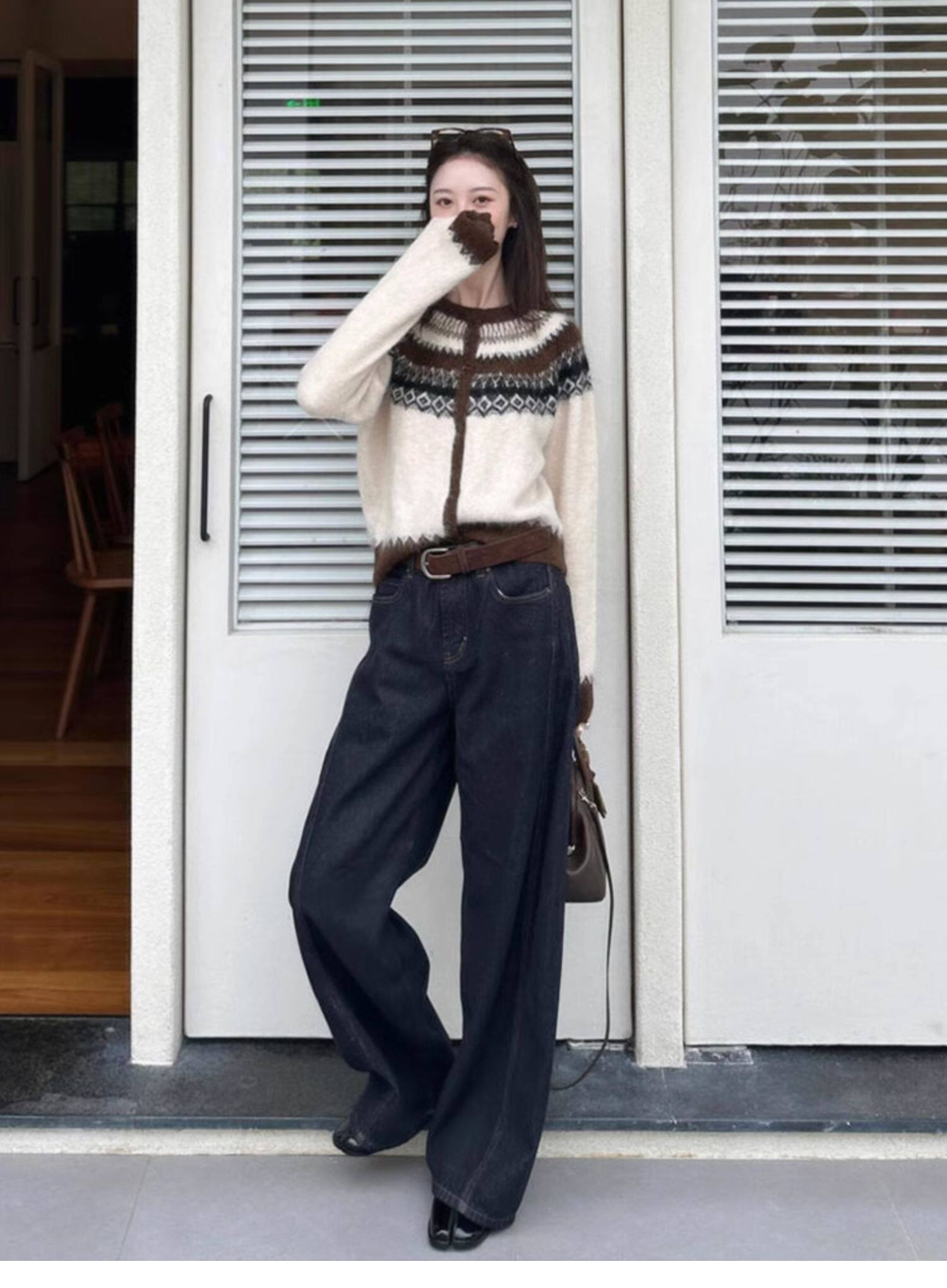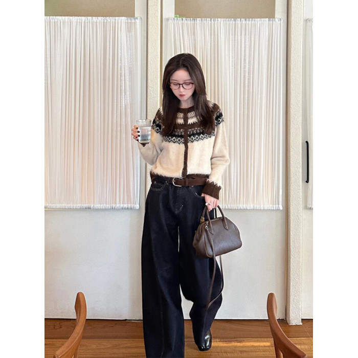 費爾島復古白色提花開衫毛衣外套女秋冬慵懶高級感外穿針織衫上衣