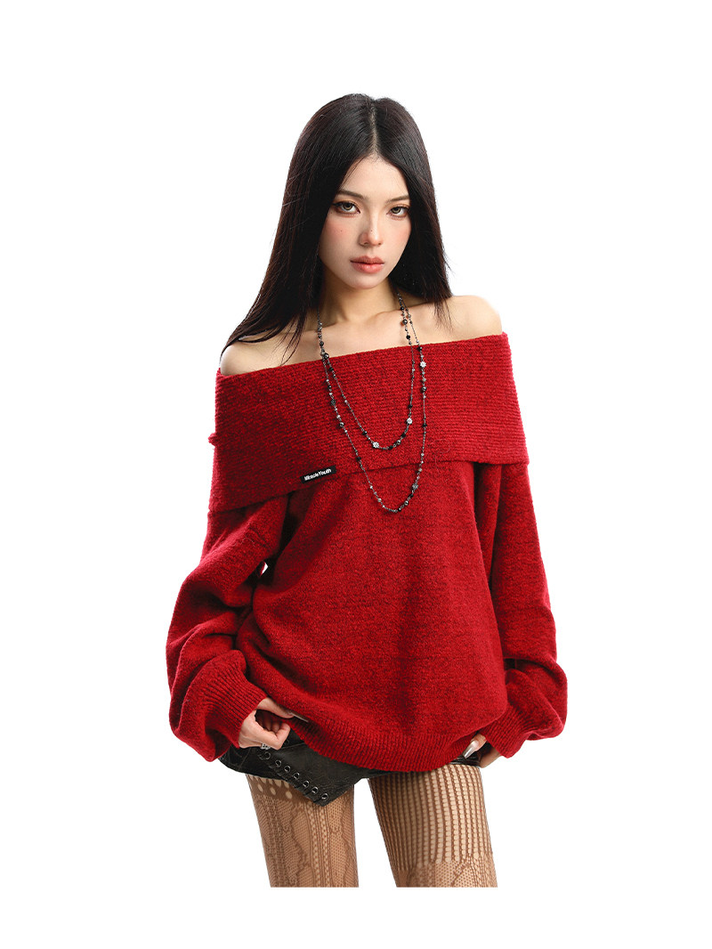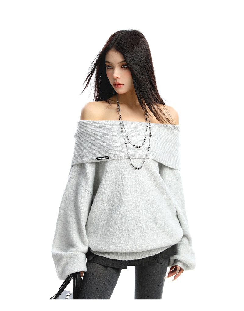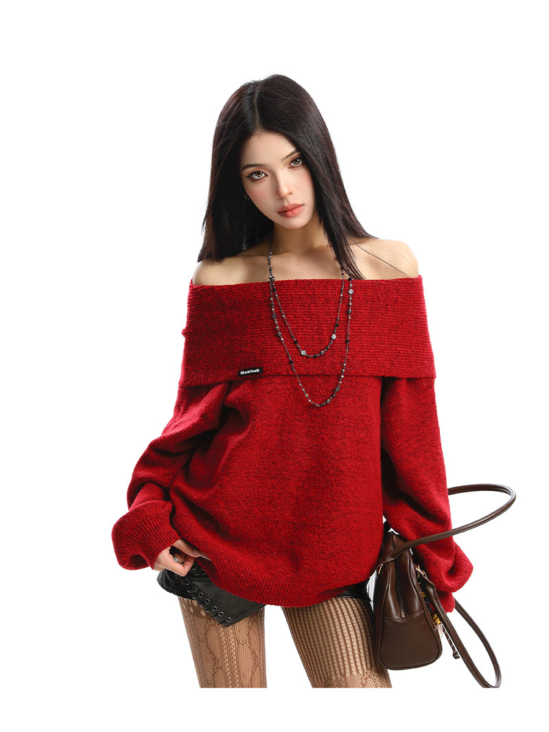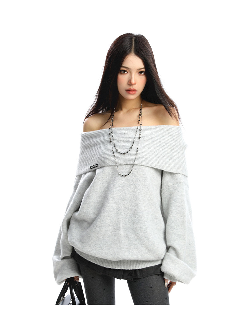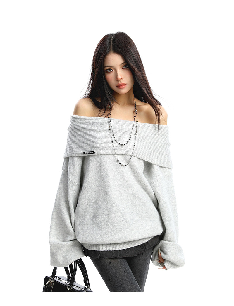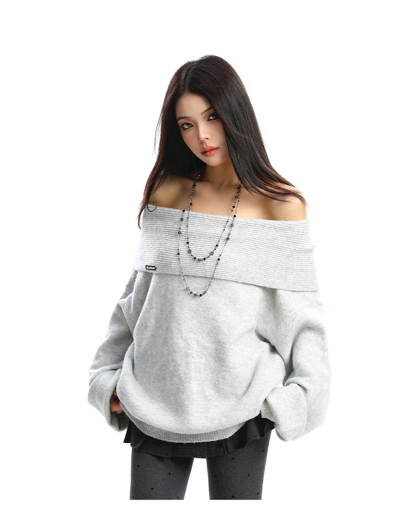 BIGGOLD韓系氛圍感一字肩毛衣女秋冬氣質加厚保暖寬松針織衫上衣