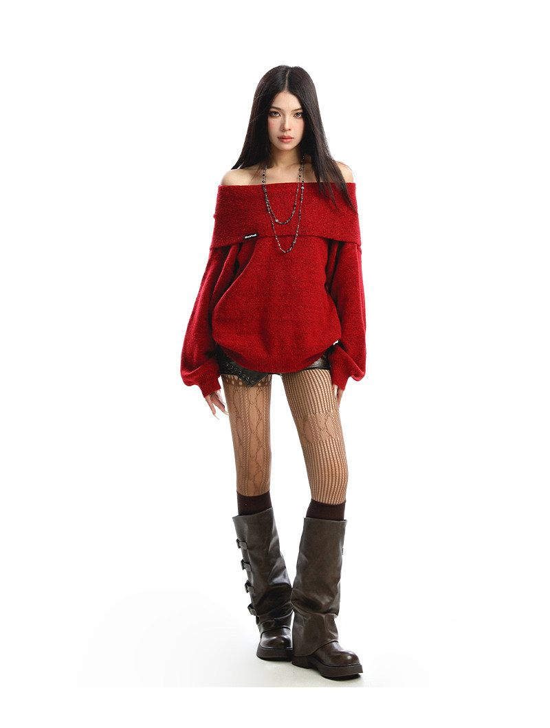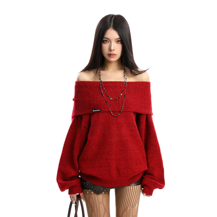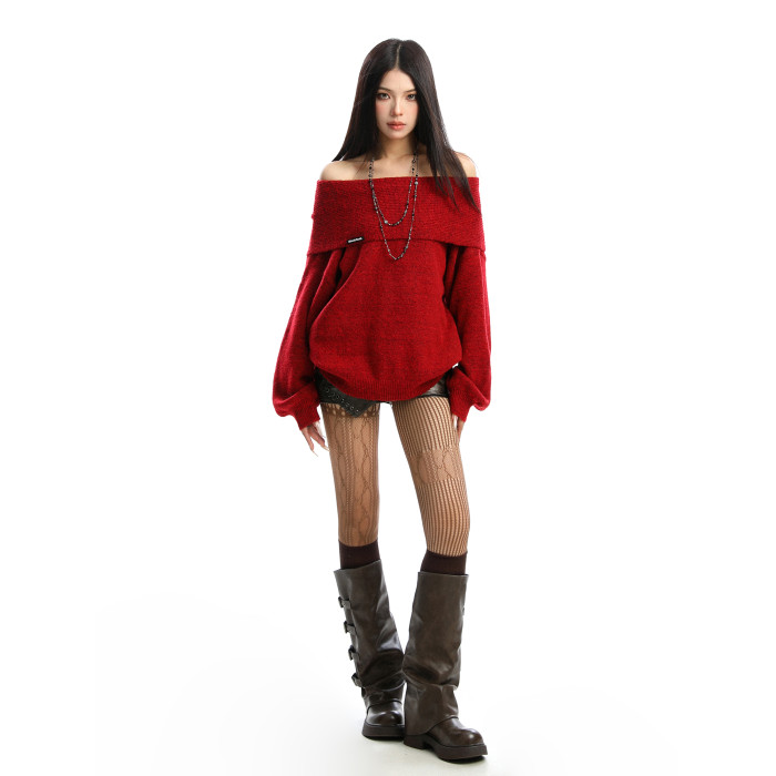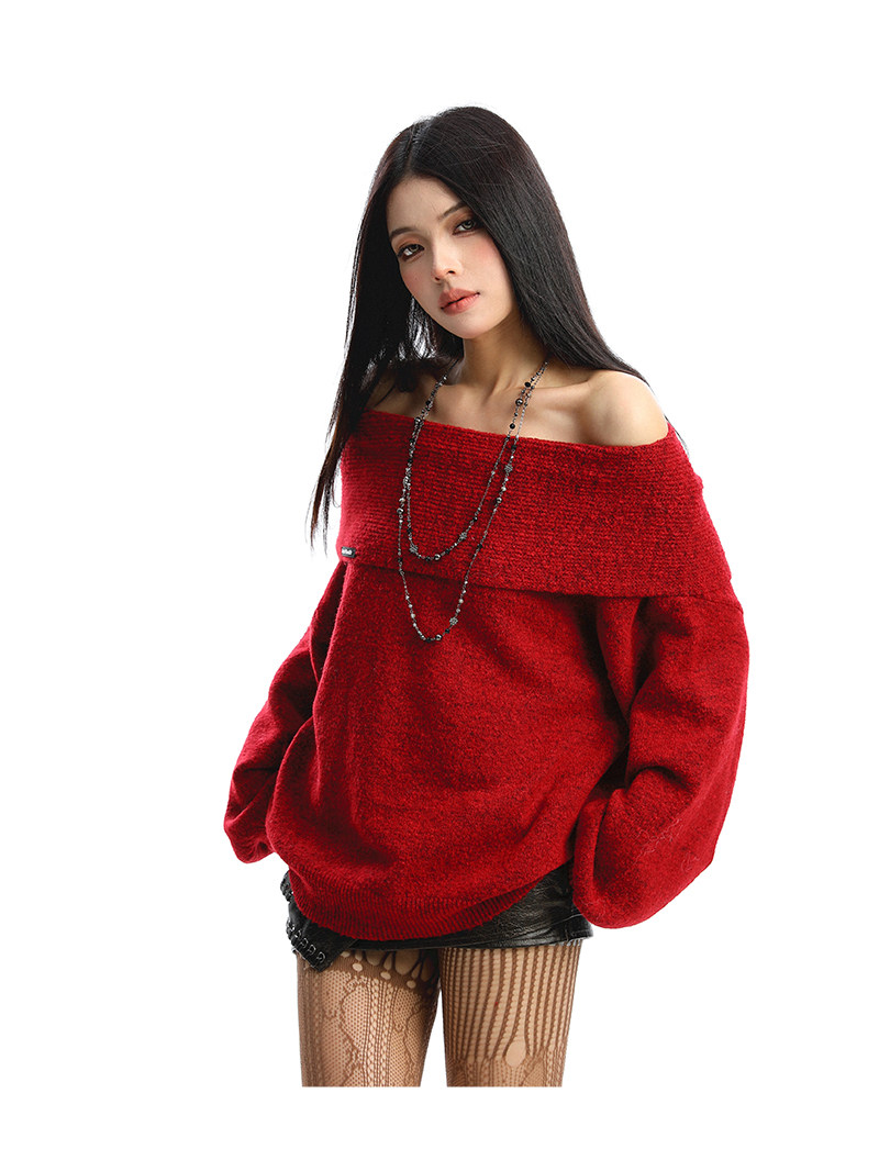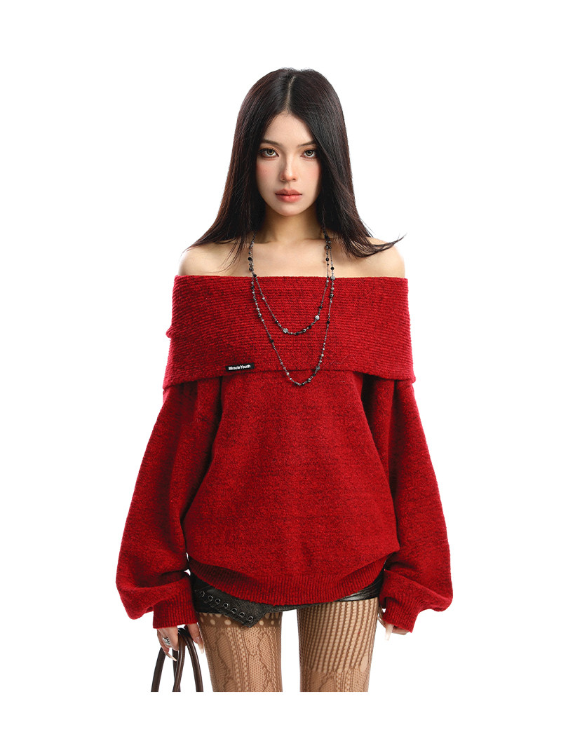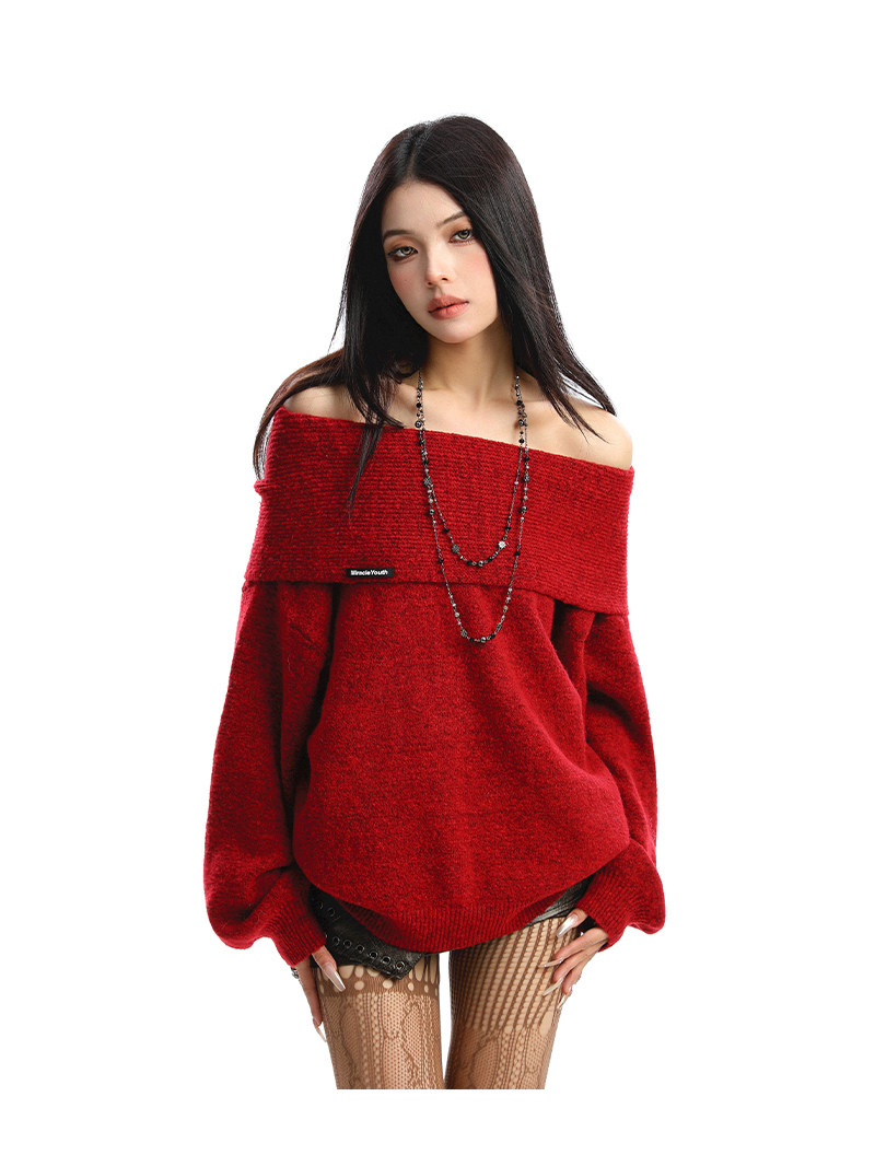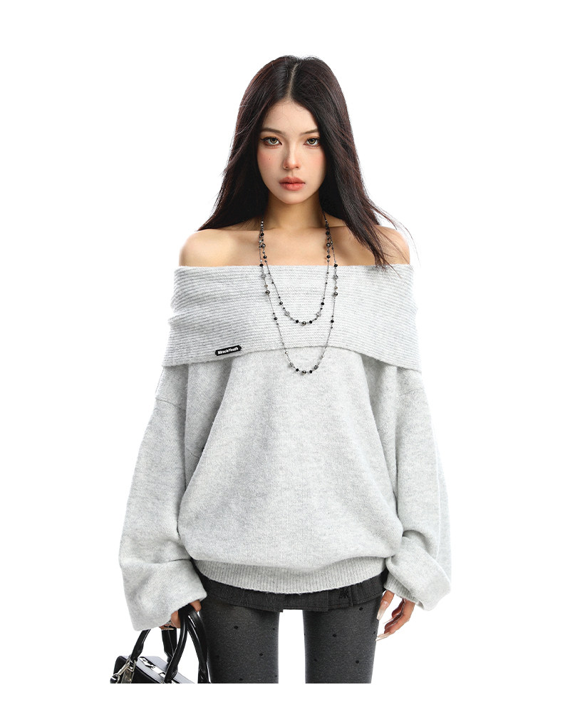 BIGGOLD韓系氛圍感一字肩毛衣女秋冬氣質加厚保暖寬松針織衫上衣