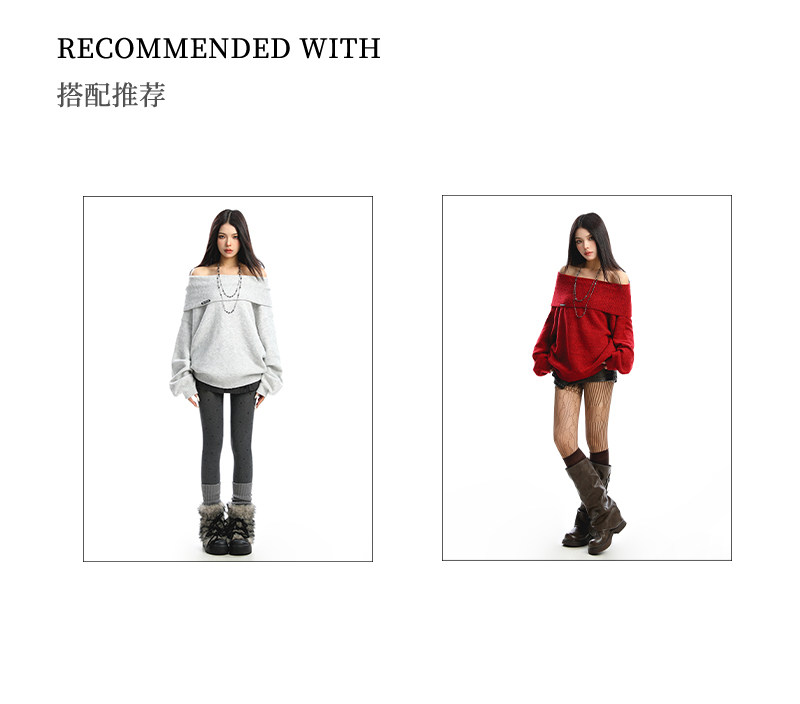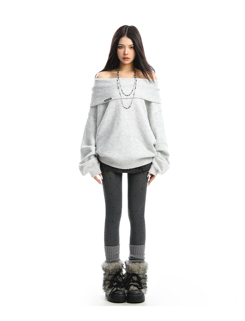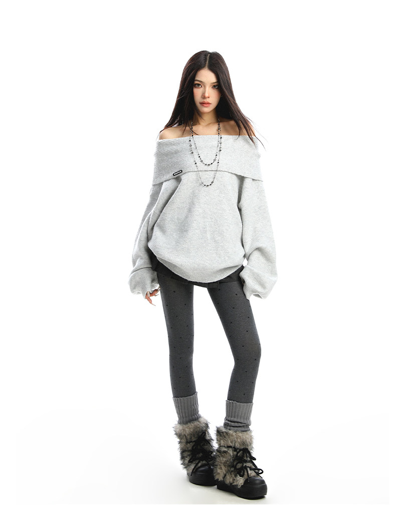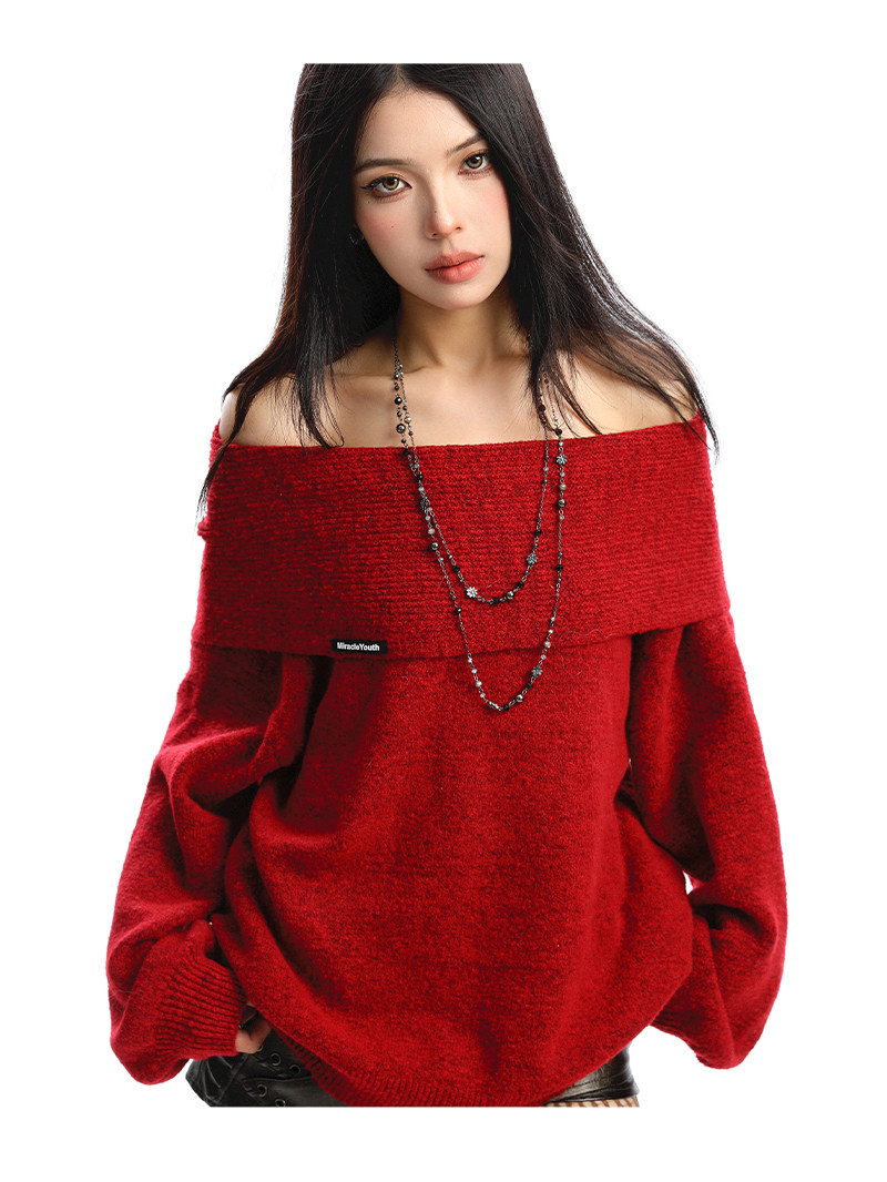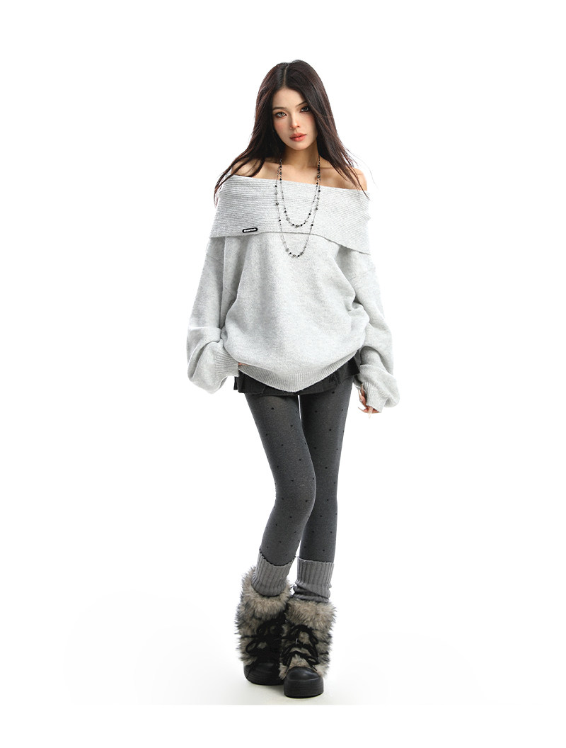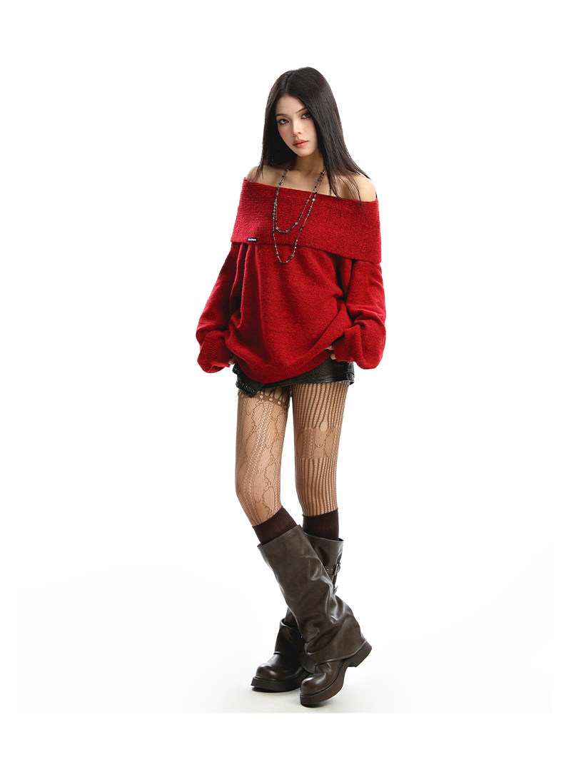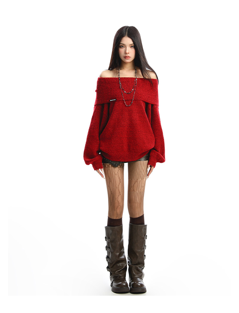 BIGGOLD韓系氛圍感一字肩毛衣女秋冬氣質加厚保暖寬松針織衫上衣