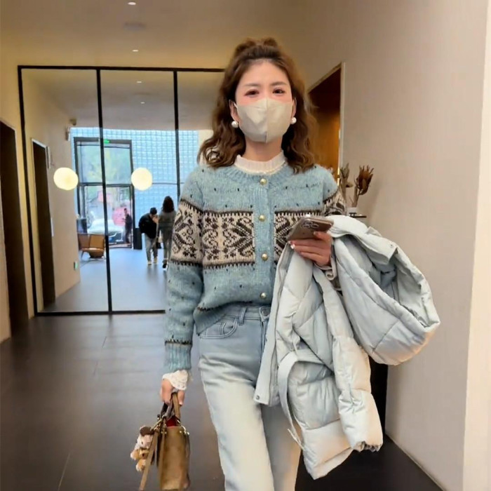 今年流行提花費爾島毛衣外套女秋冬超好看韓系寬松針織短開衫上衣