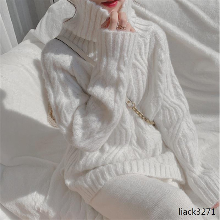 哈爾濱東北雪鄕高領打底毛衣女秋冬季加厚外穿寬松慵懶上衣針織衫