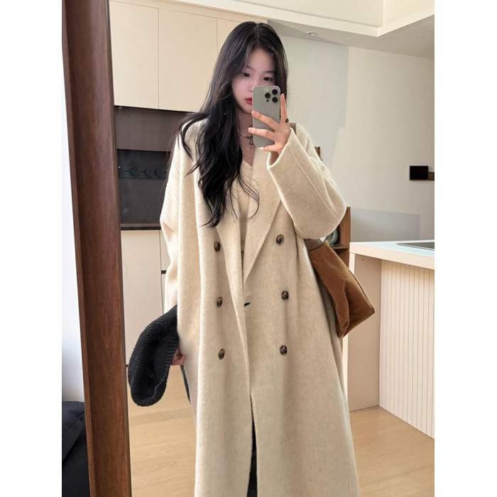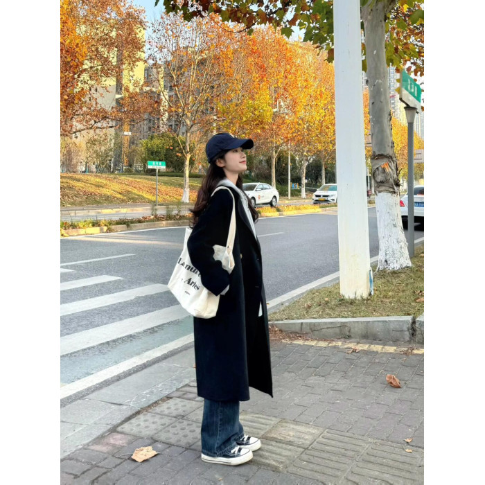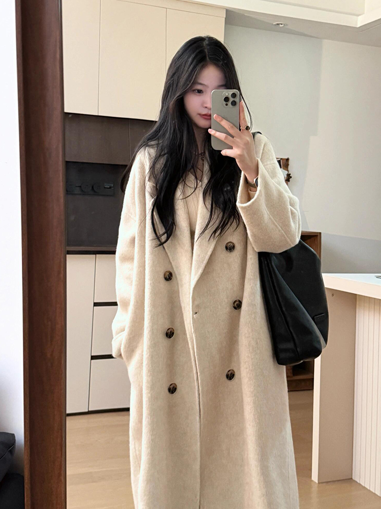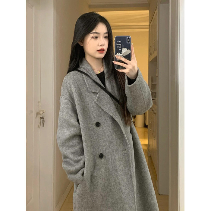 毛呢外套女小個子2024新款冬季韓系加厚高級感氣質中長款呢子大衣