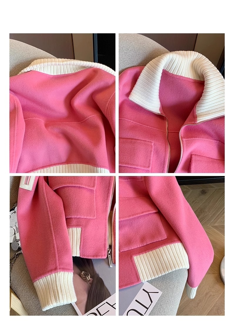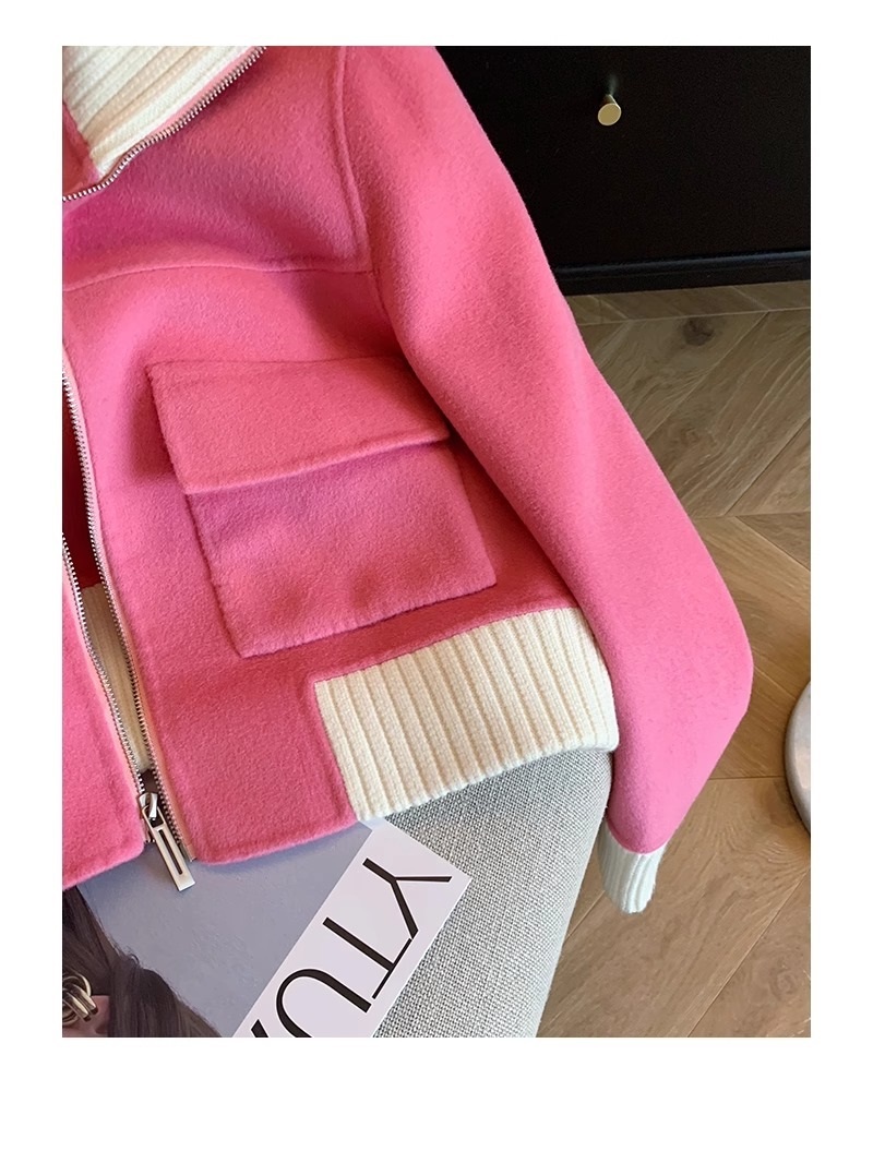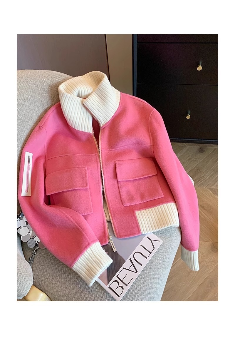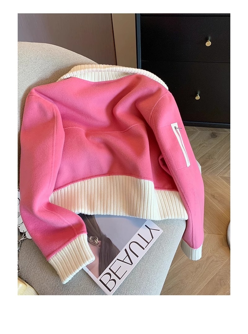 拼接撞色設計感小衆短款翻領夾克外套女秋季甜美別致休閒開衫上衣