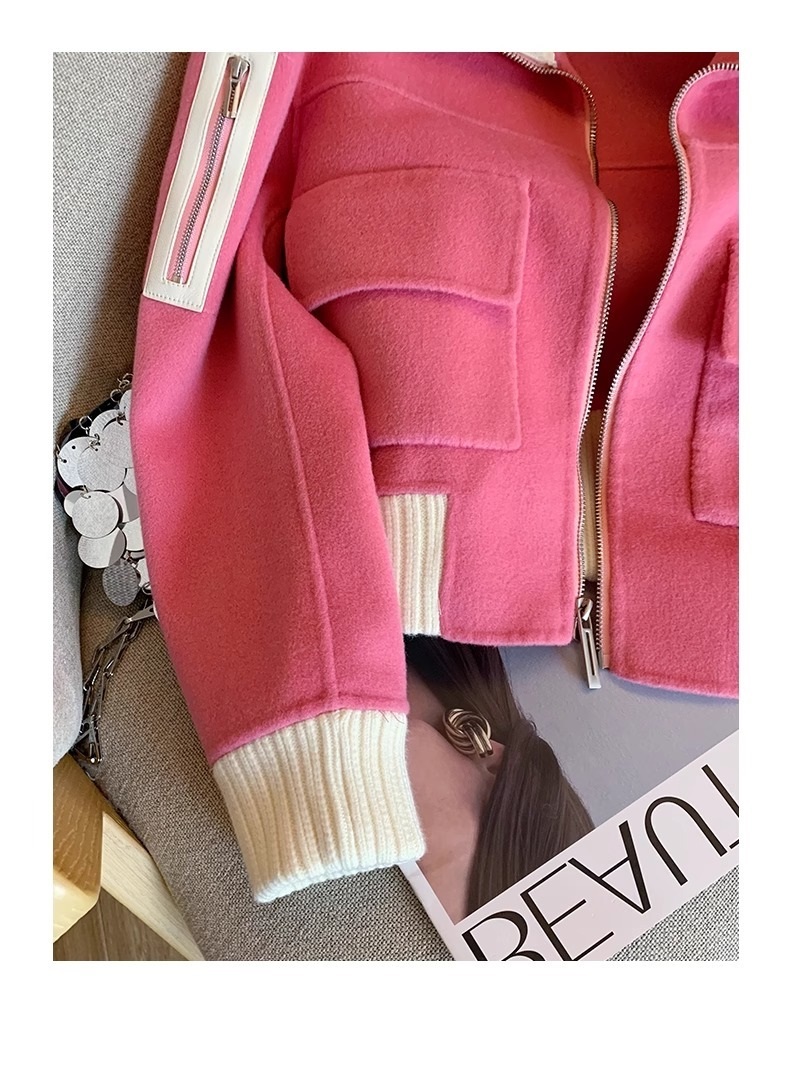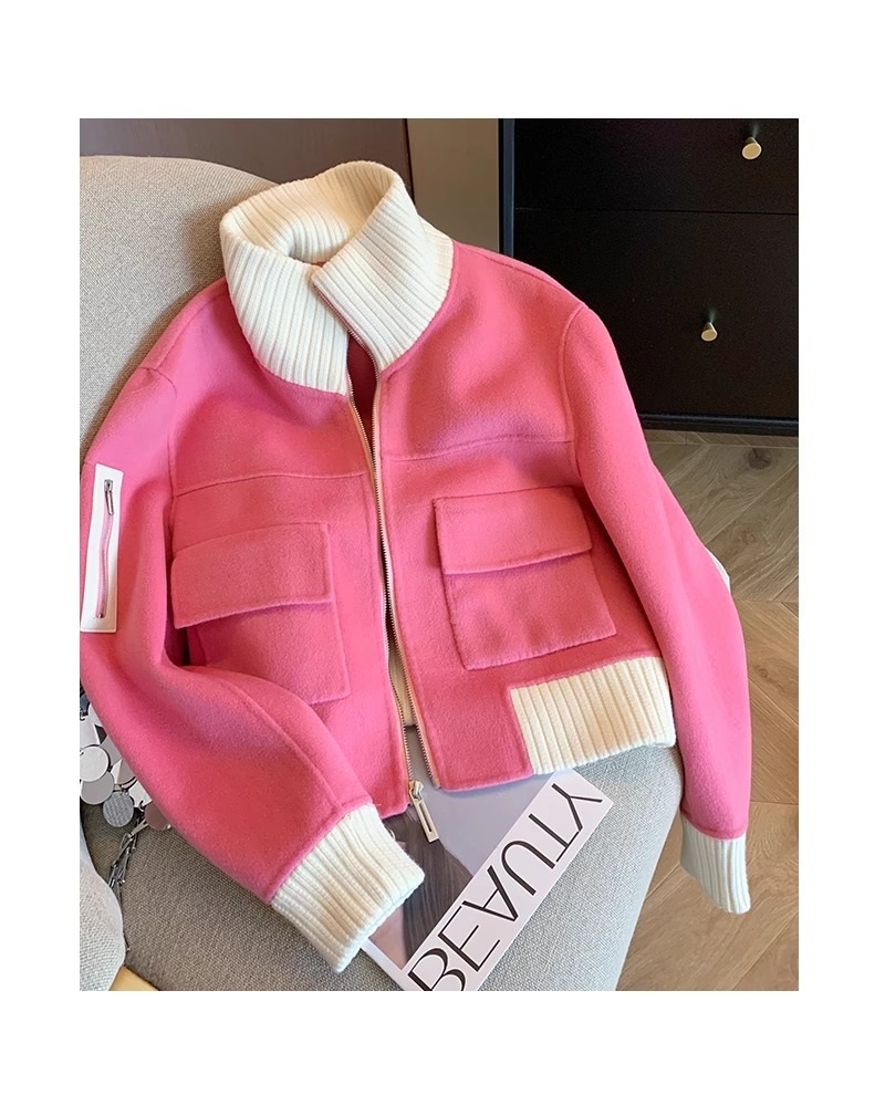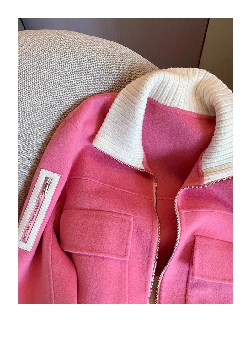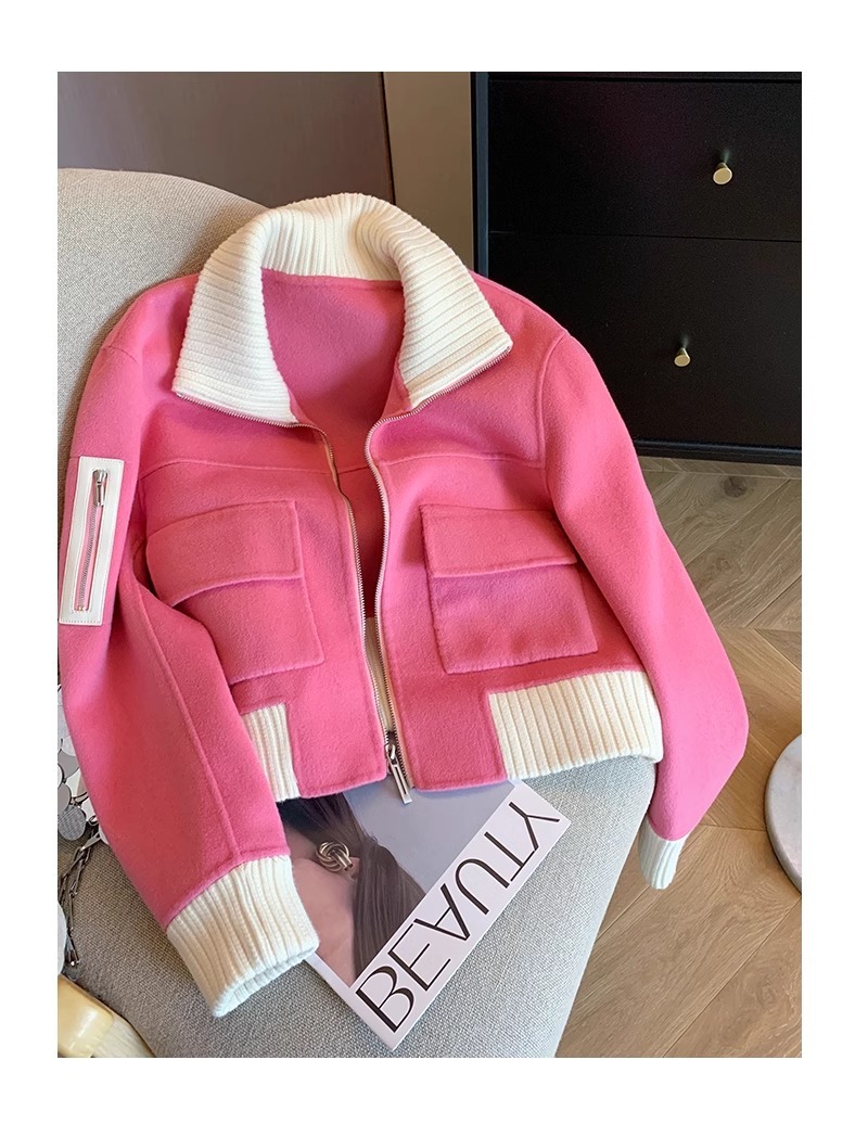 拼接撞色設計感小衆短款翻領夾克外套女秋季甜美別致休閒開衫上衣