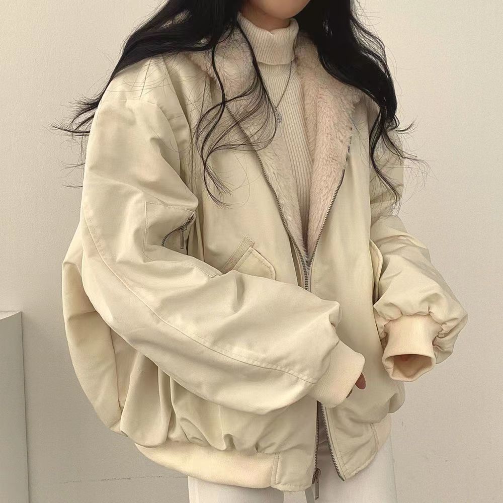 加絨加厚兩面穿仿棉服女裝外套冬季新款寬松連帽棉衣上衣潮設計感