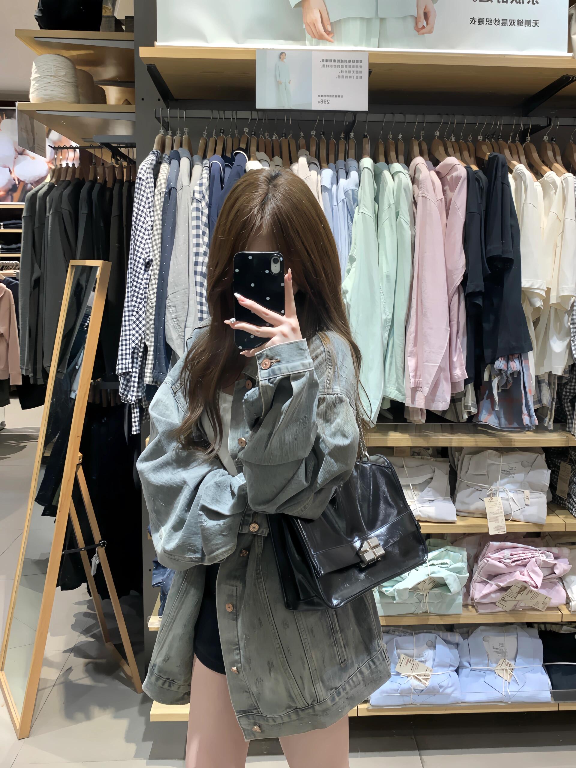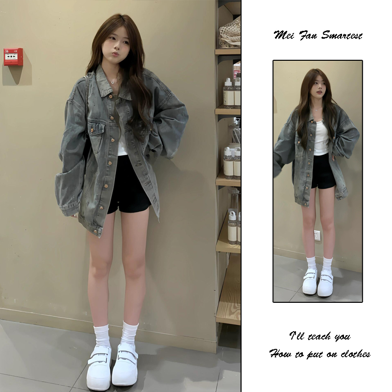 美式復古磨破水洗做舊牛仔外套女2025新款秋冬寬松藍色夾克上衣潮