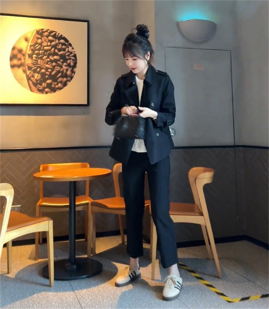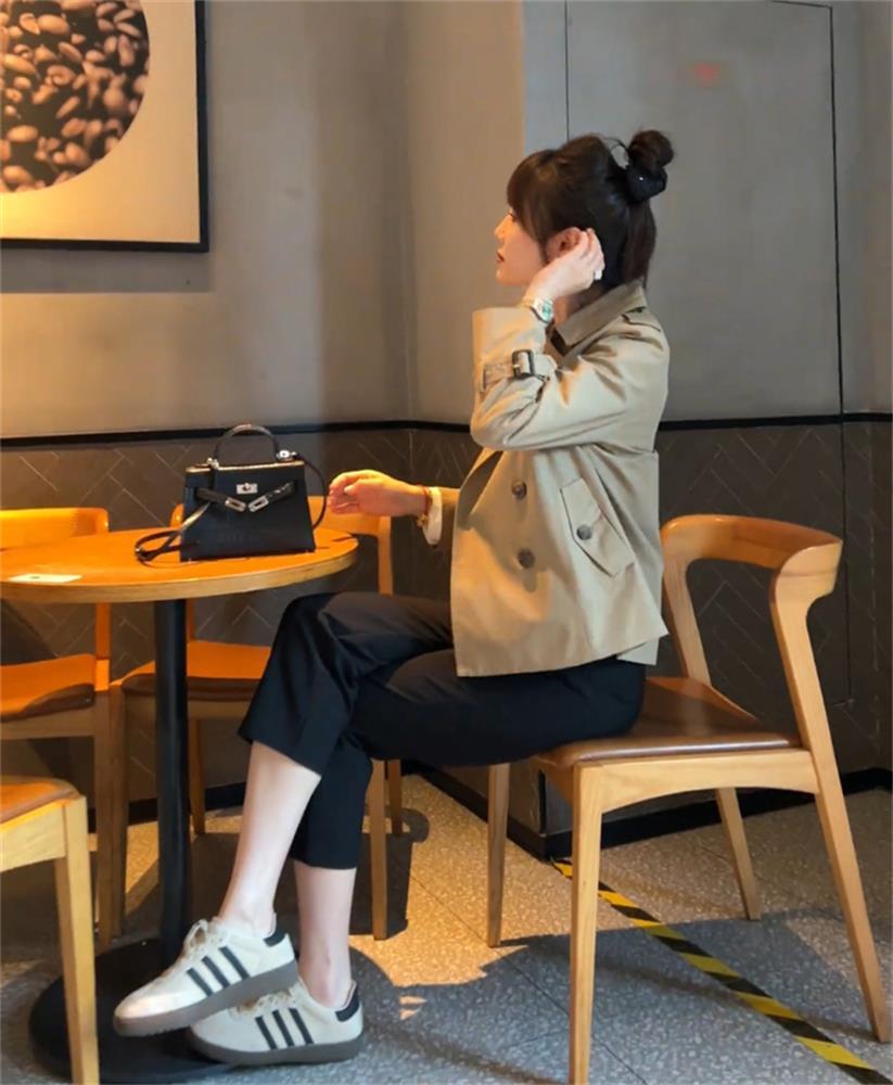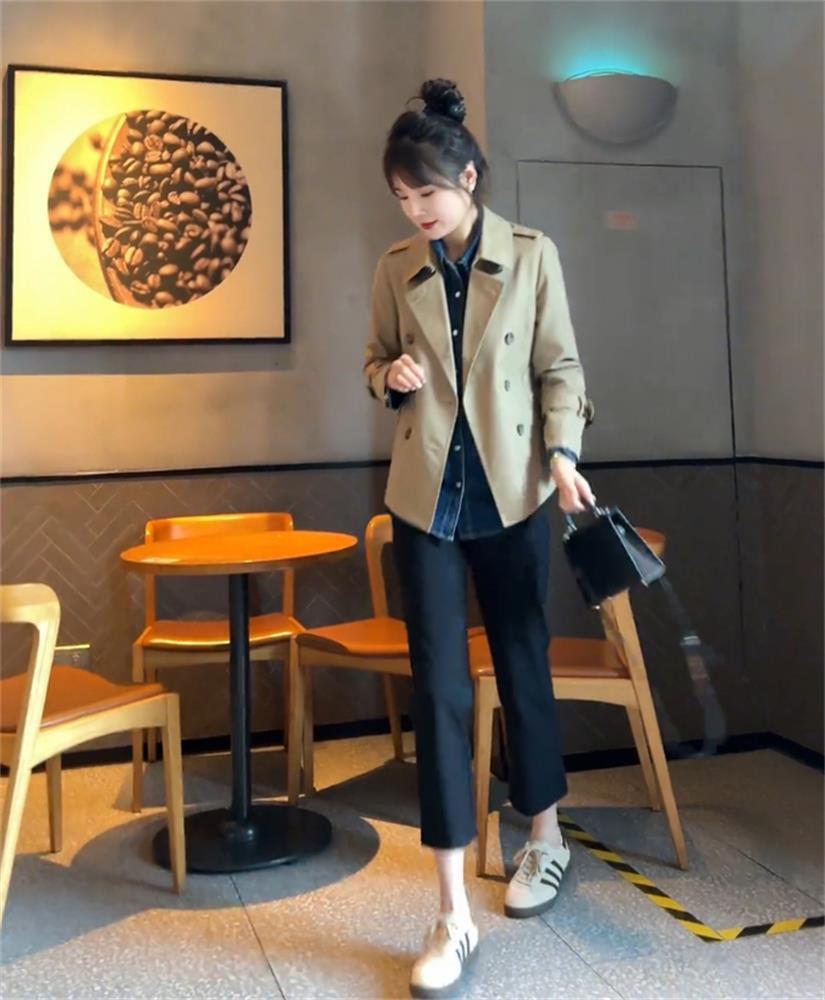 高級感氣質小個子風衣外套女2025春秋新款寬松休閒卡其色短款大衣
