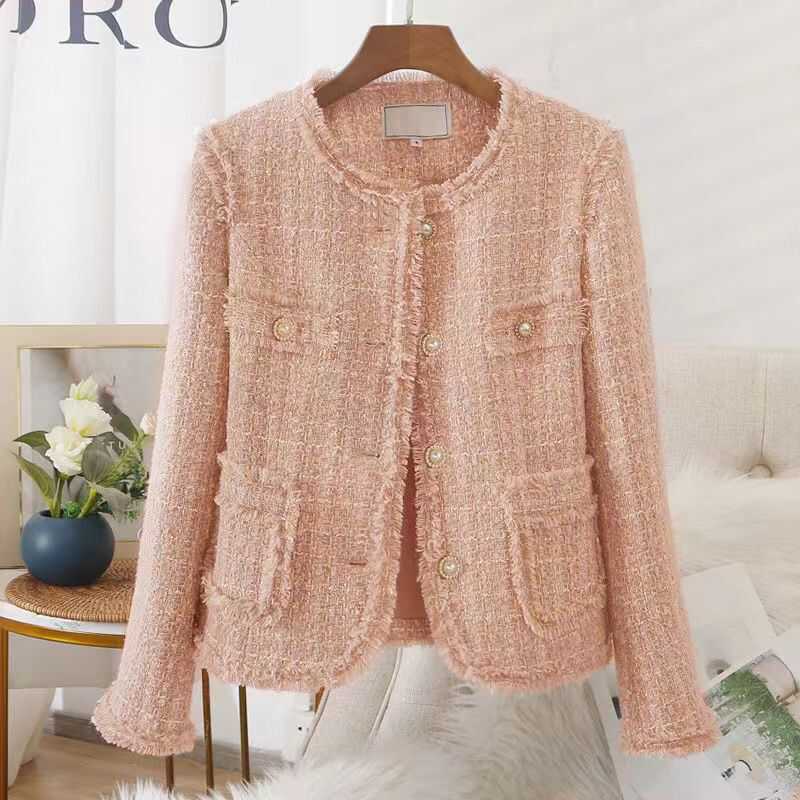 法式小香風名媛毛呢外套女2024春季新款短款粗花呢韓版上衣潮