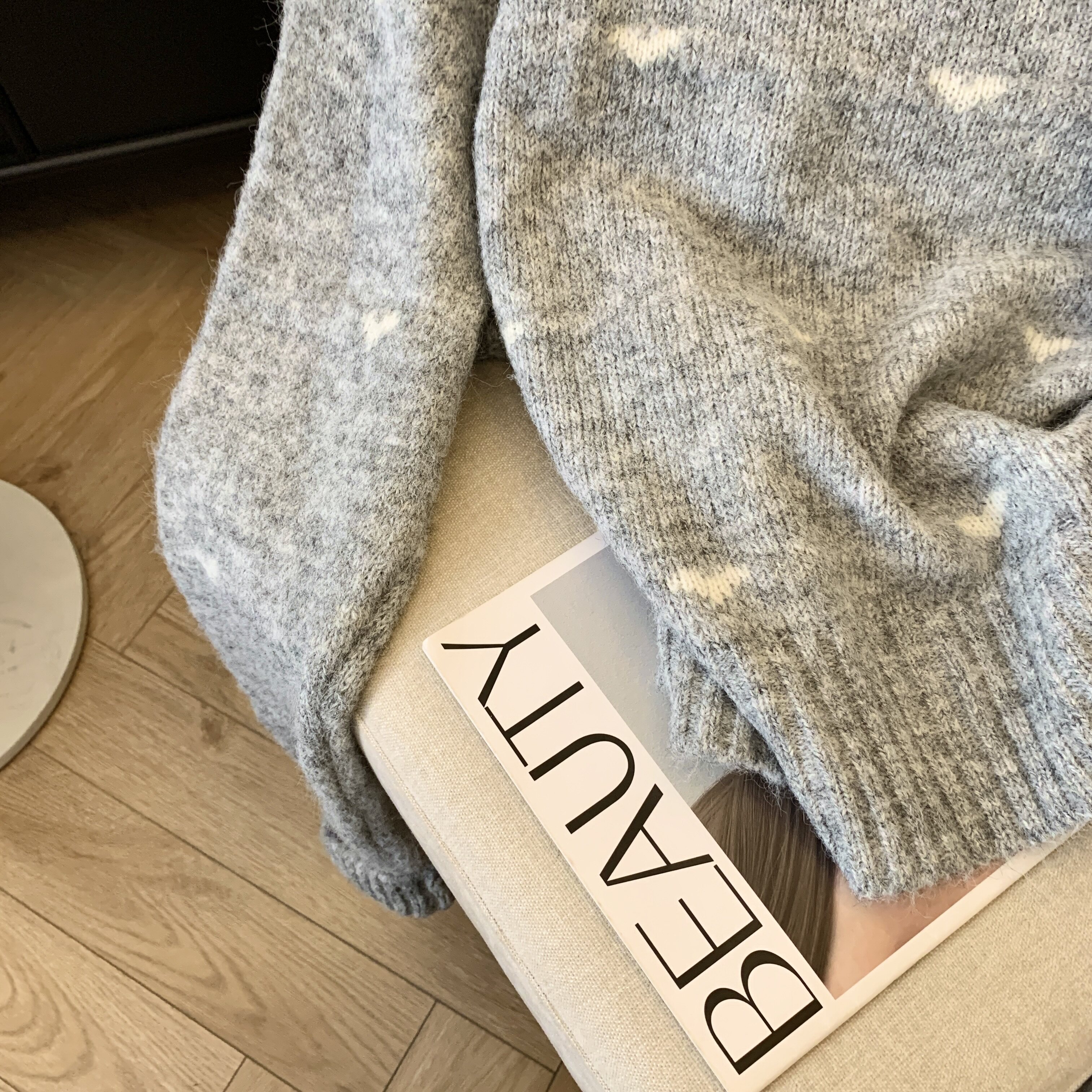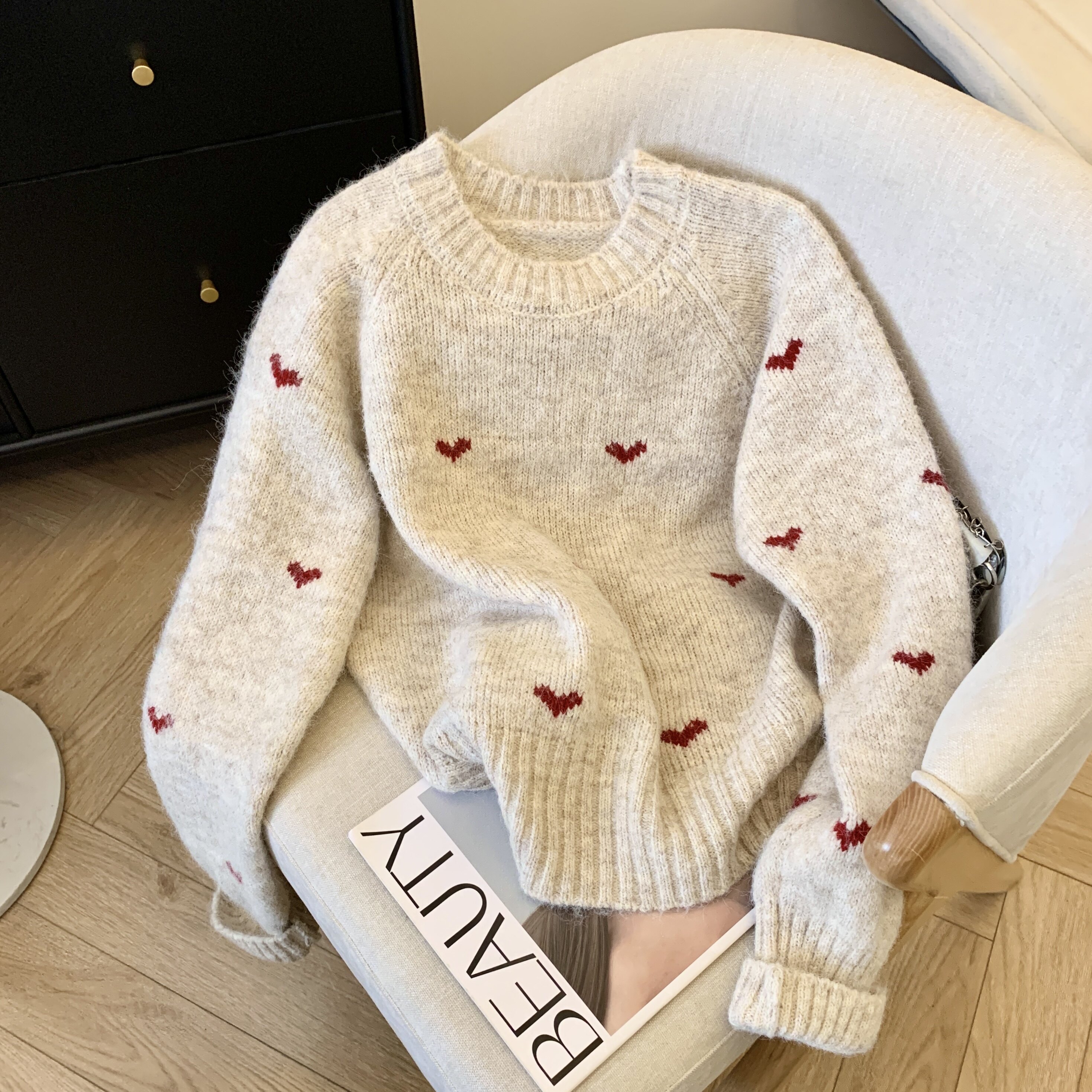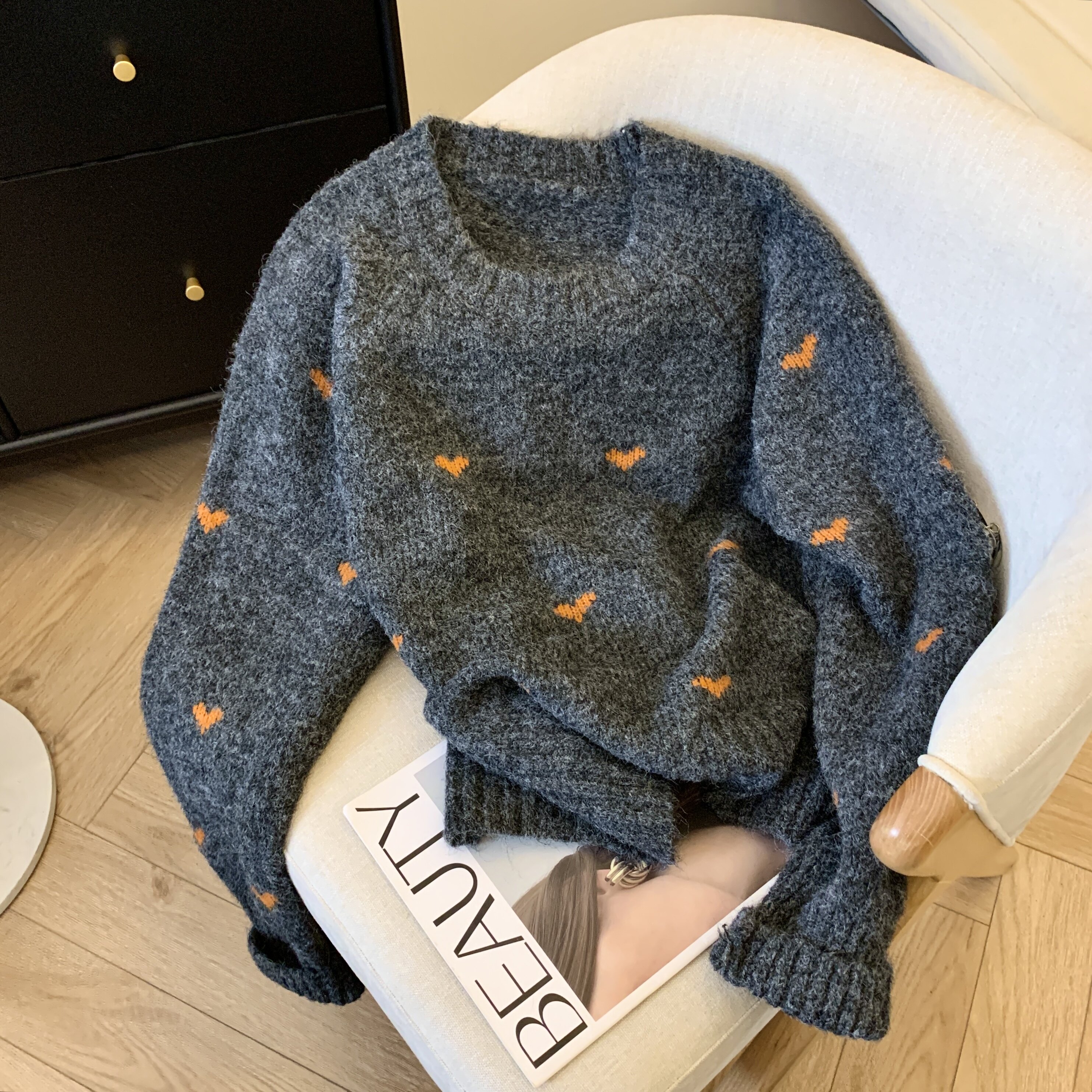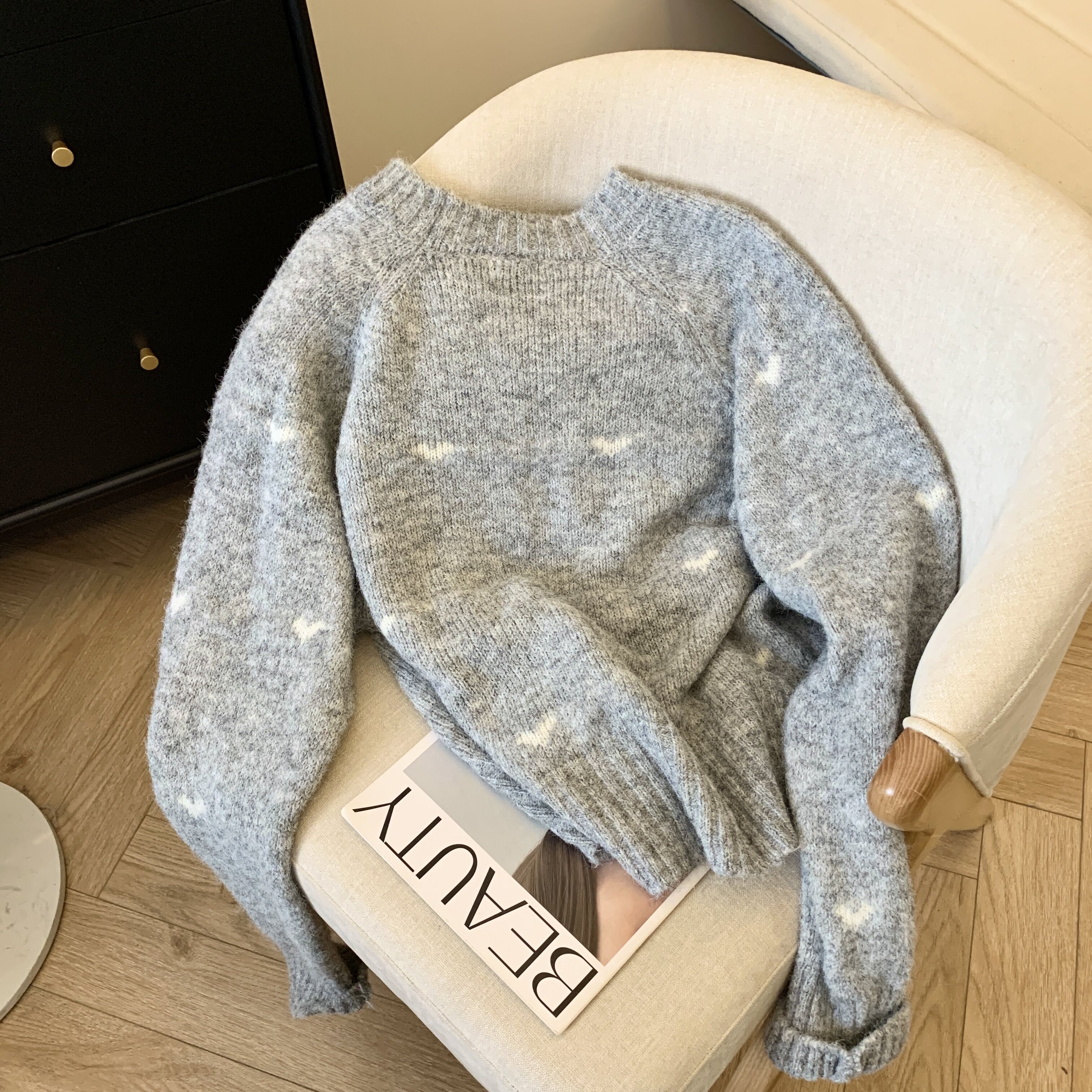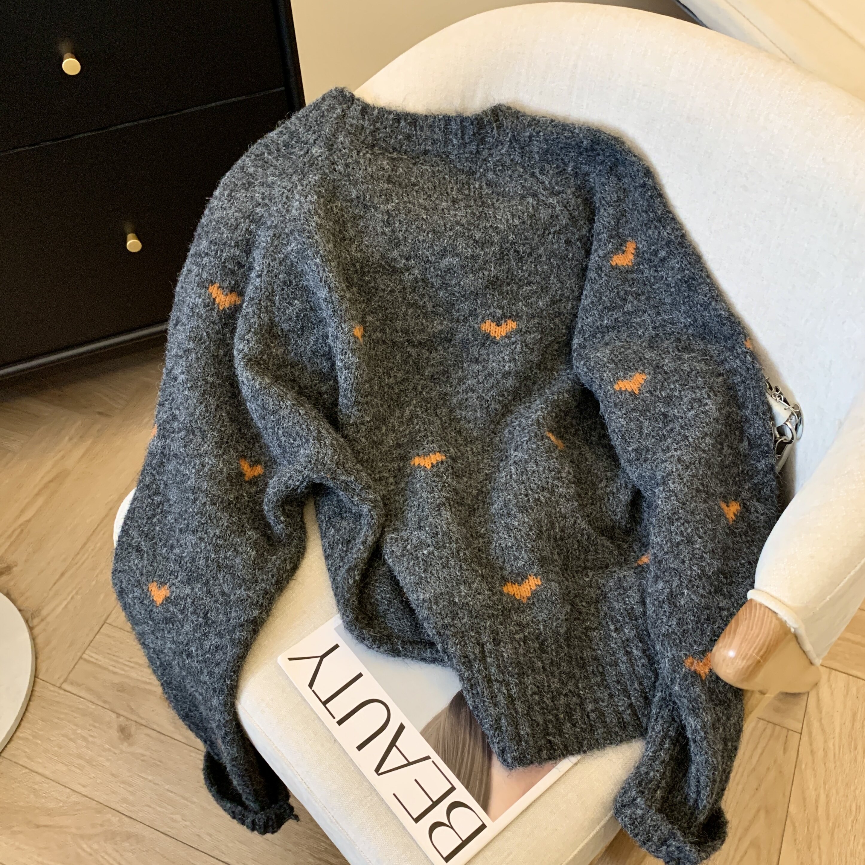 愛心提花毛衣女秋冬寬松軟糯慵懶高級感復古甜美小個子短款針織衫