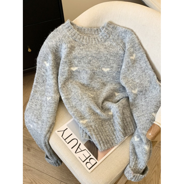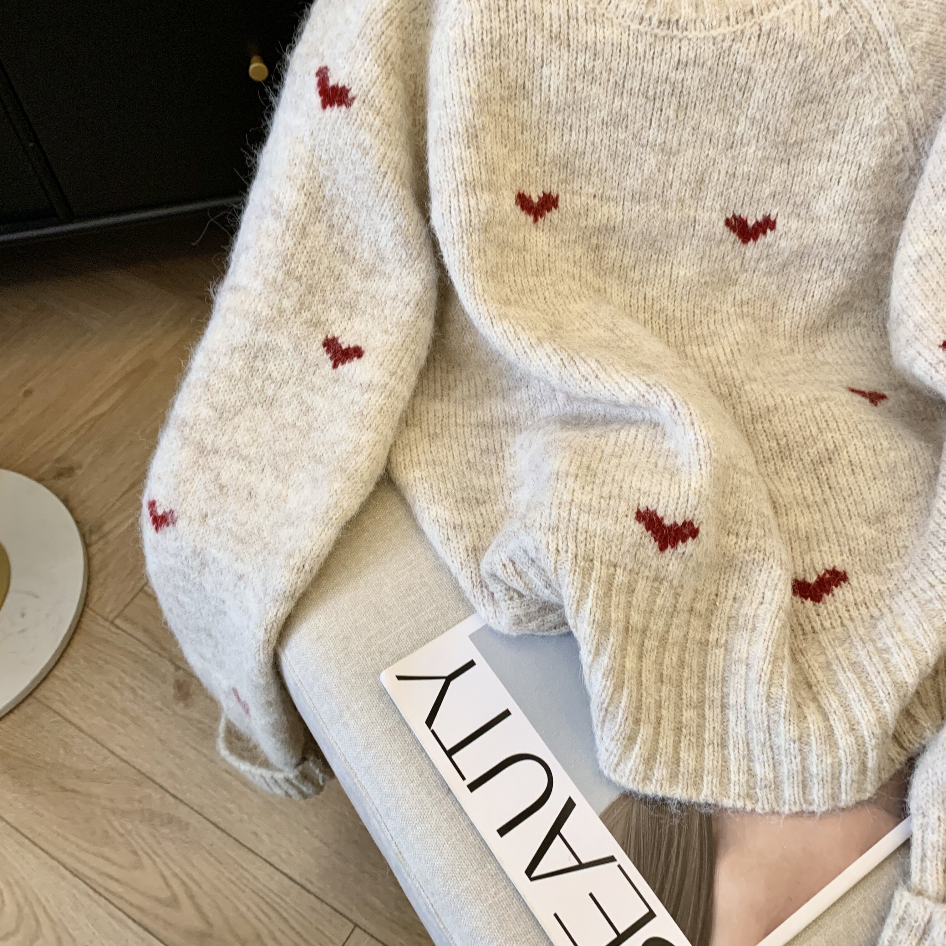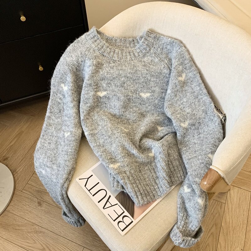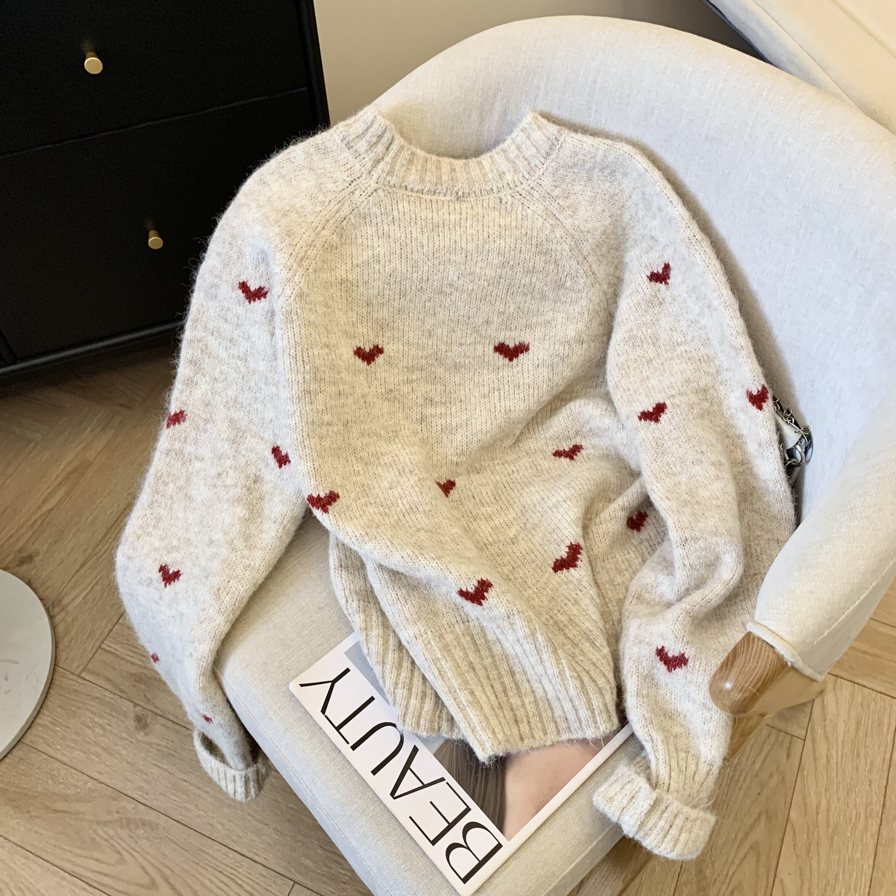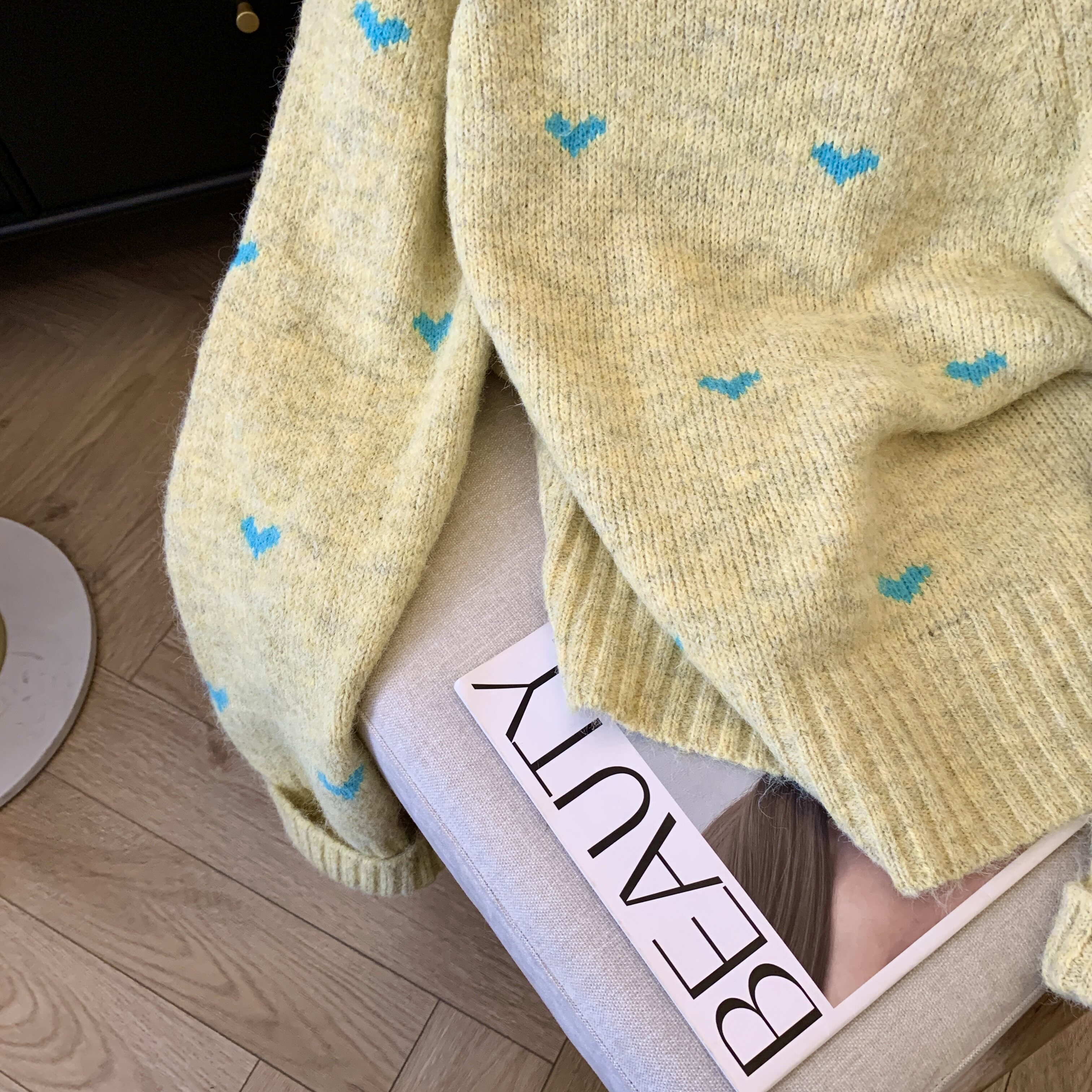 愛心提花毛衣女秋冬寬松軟糯慵懶高級感復古甜美小個子短款針織衫