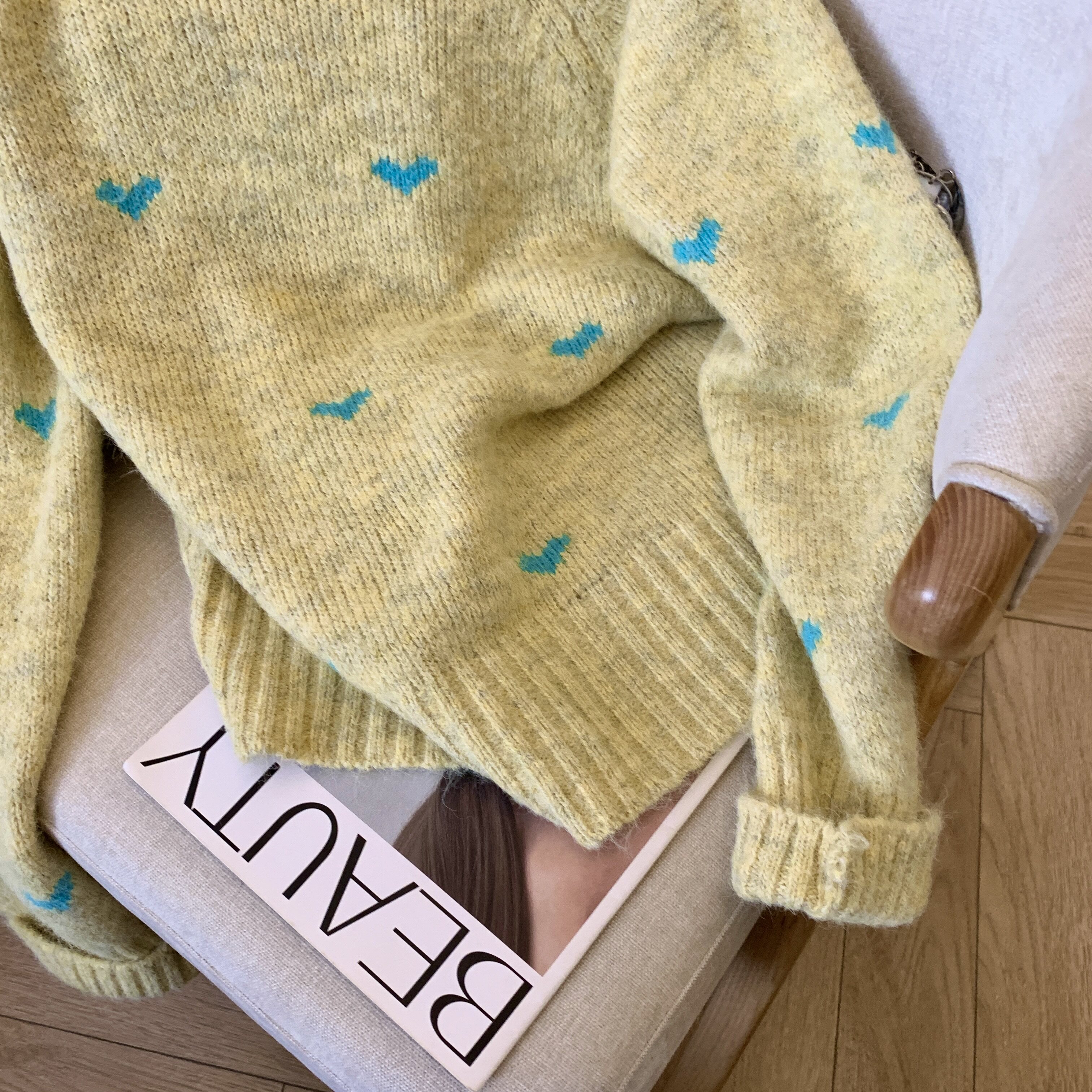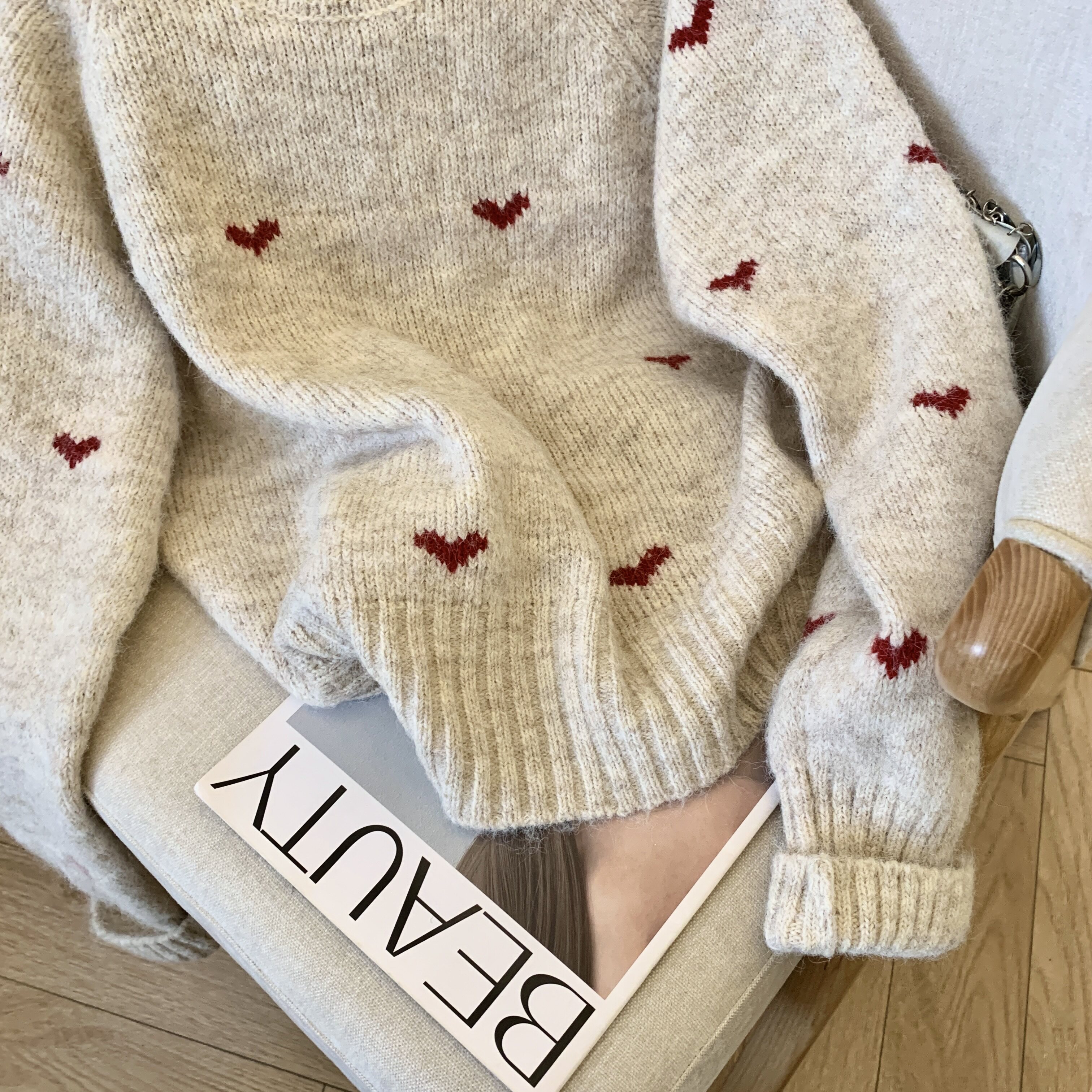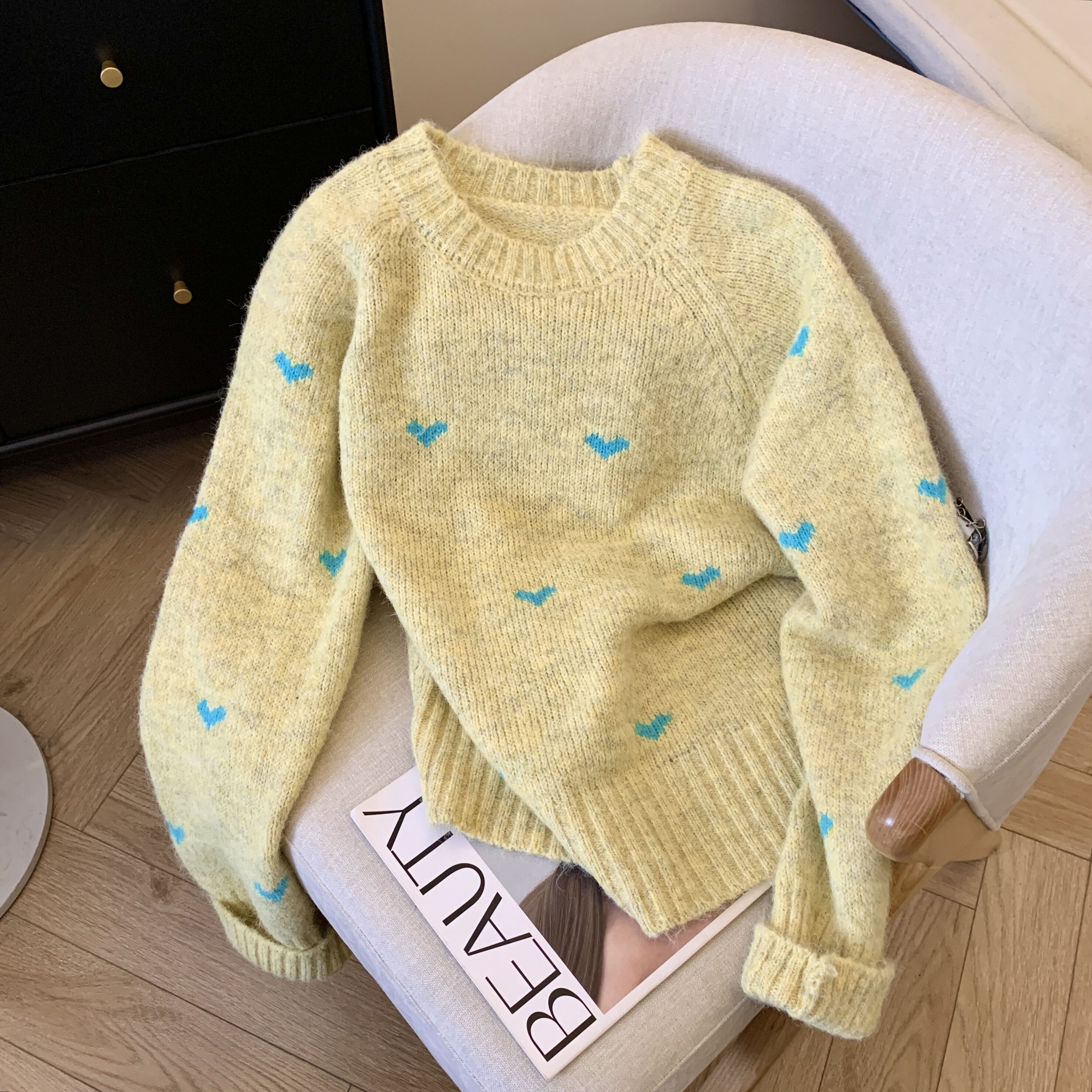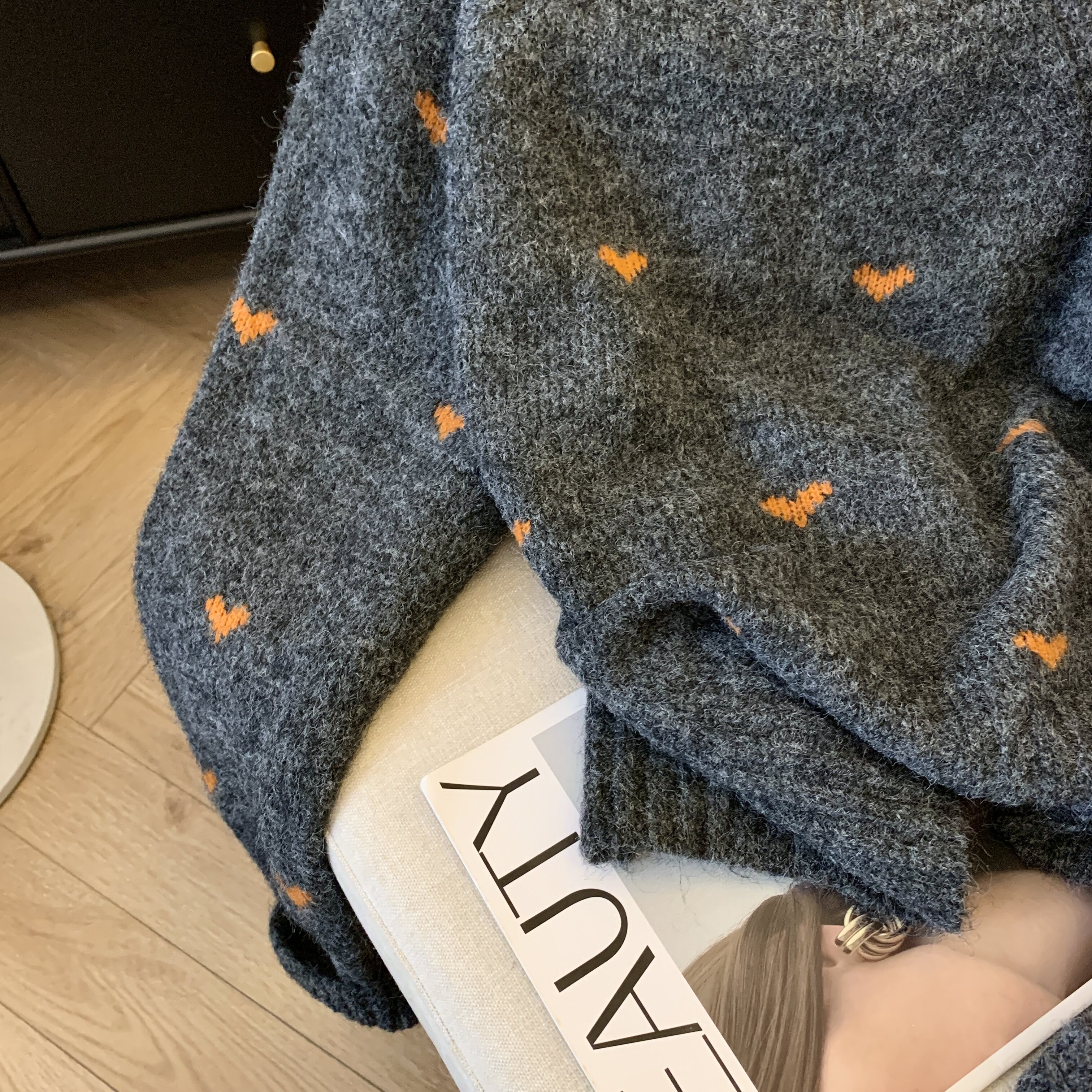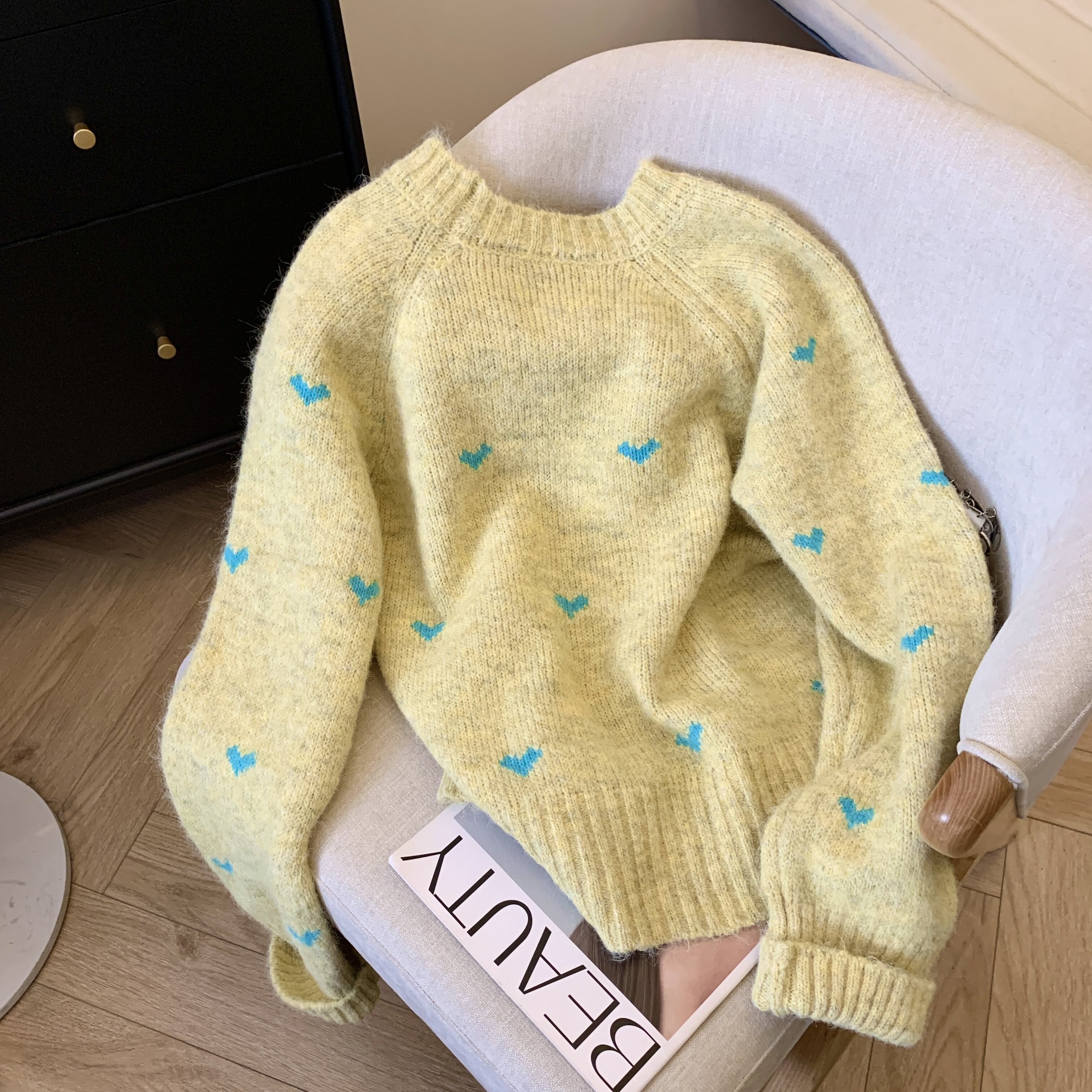 愛心提花毛衣女秋冬寬松軟糯慵懶高級感復古甜美小個子短款針織衫